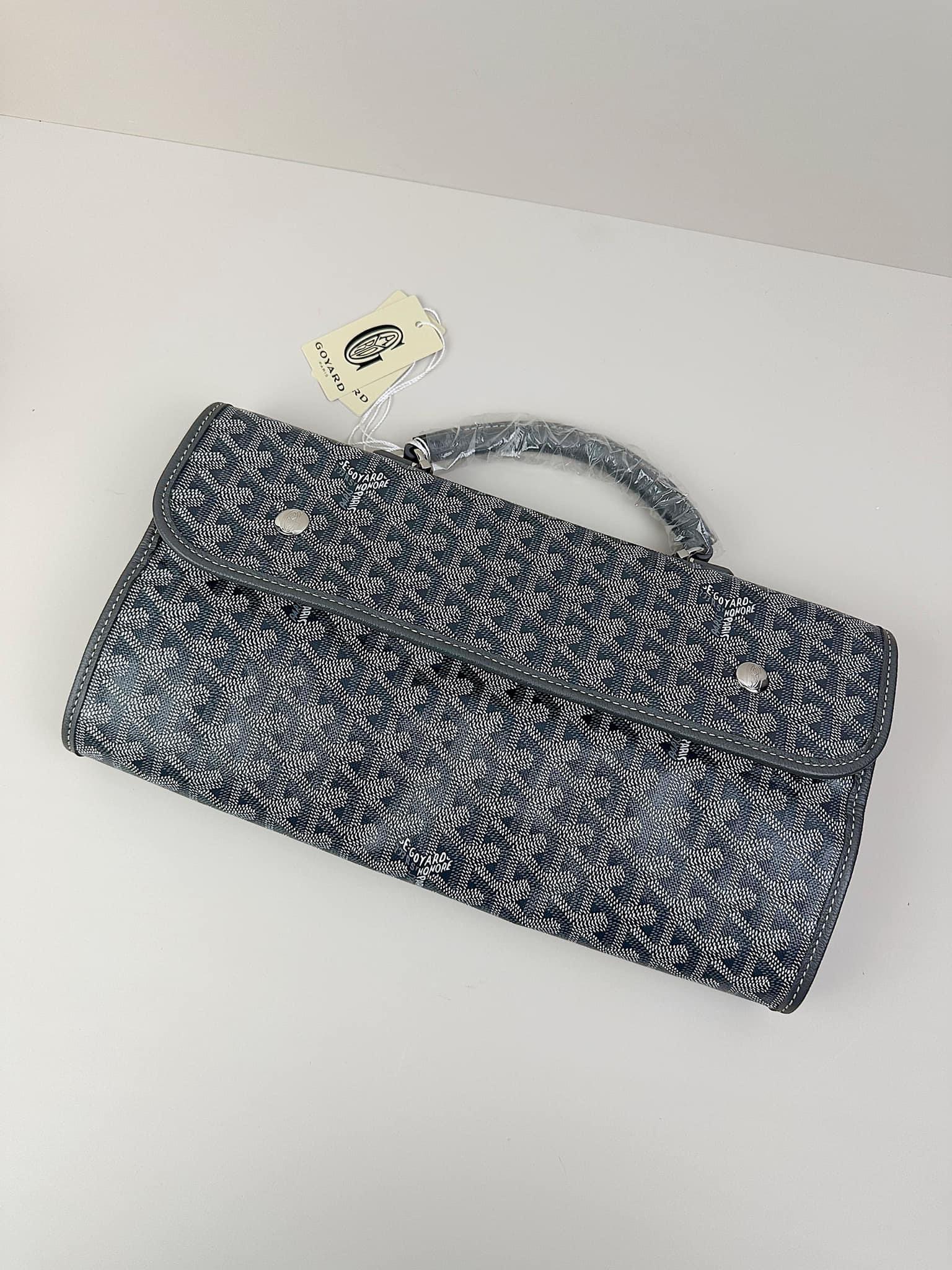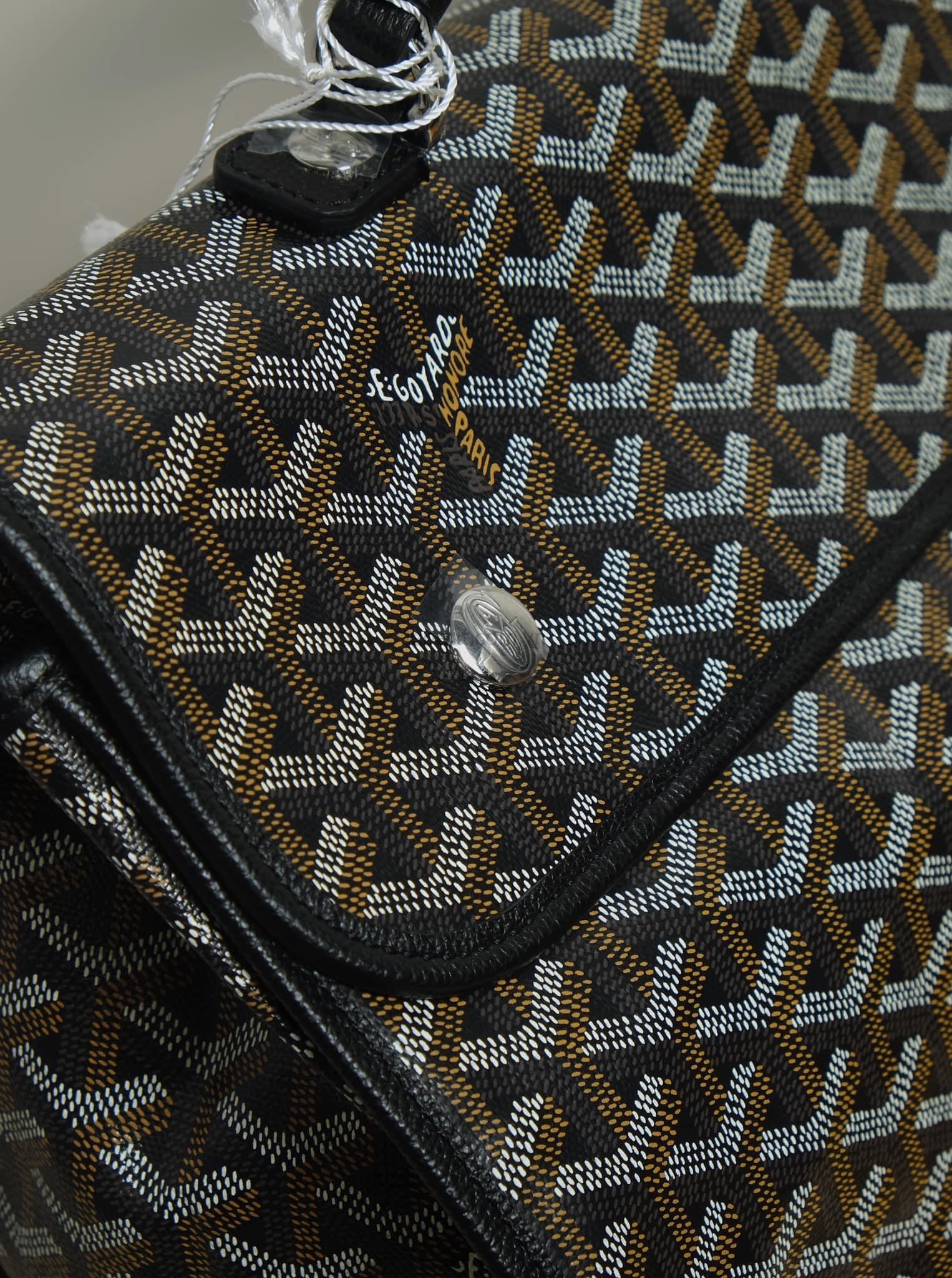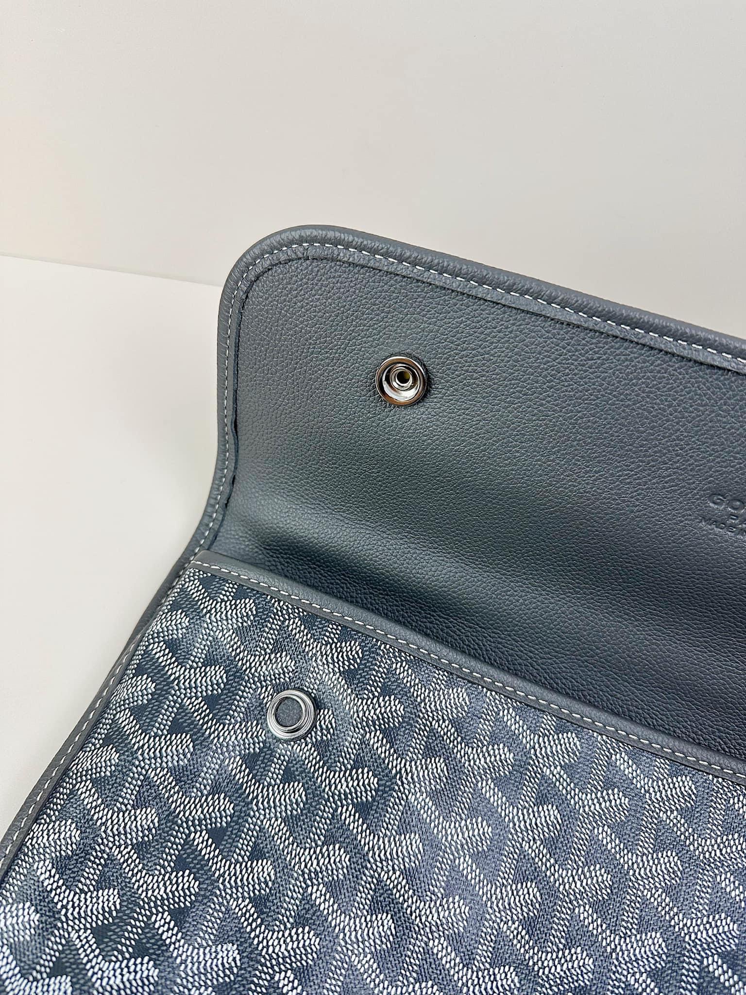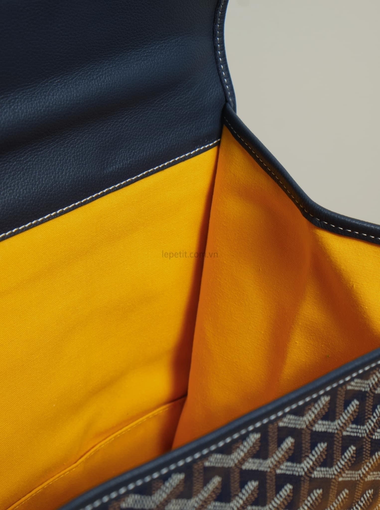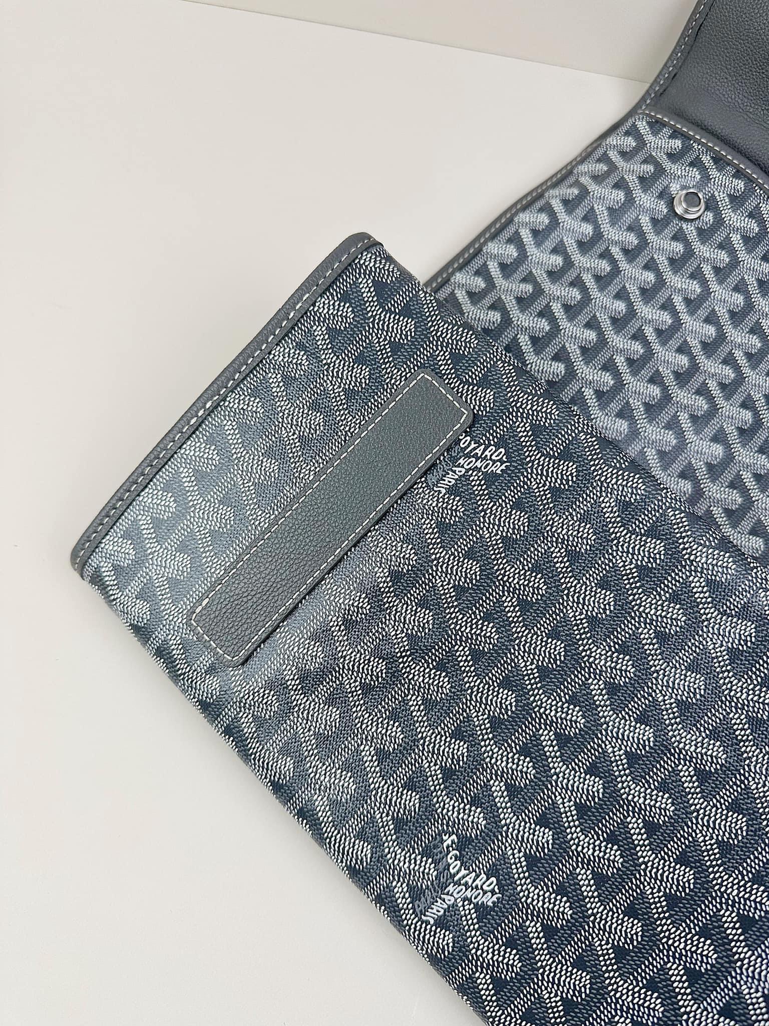 - Chất liệu: Goyardine canvas, da bê, lót vải cotton