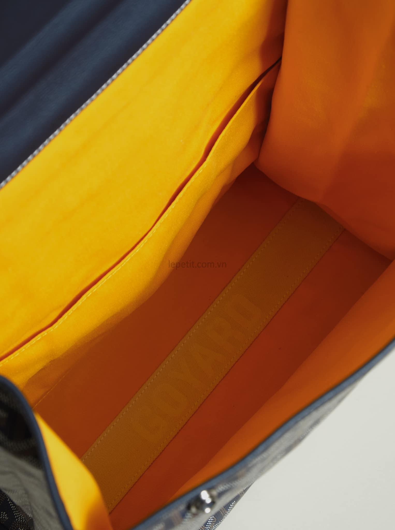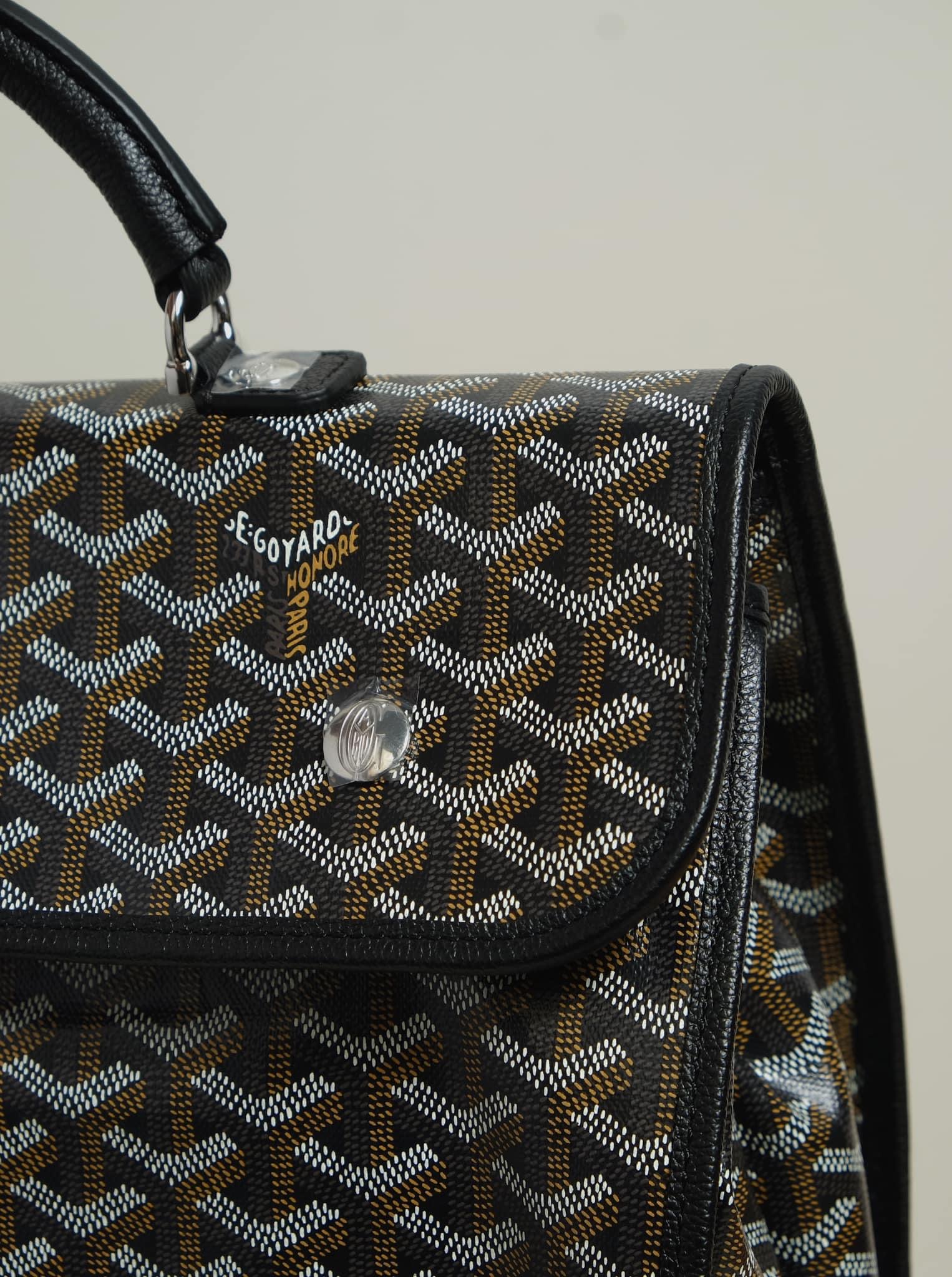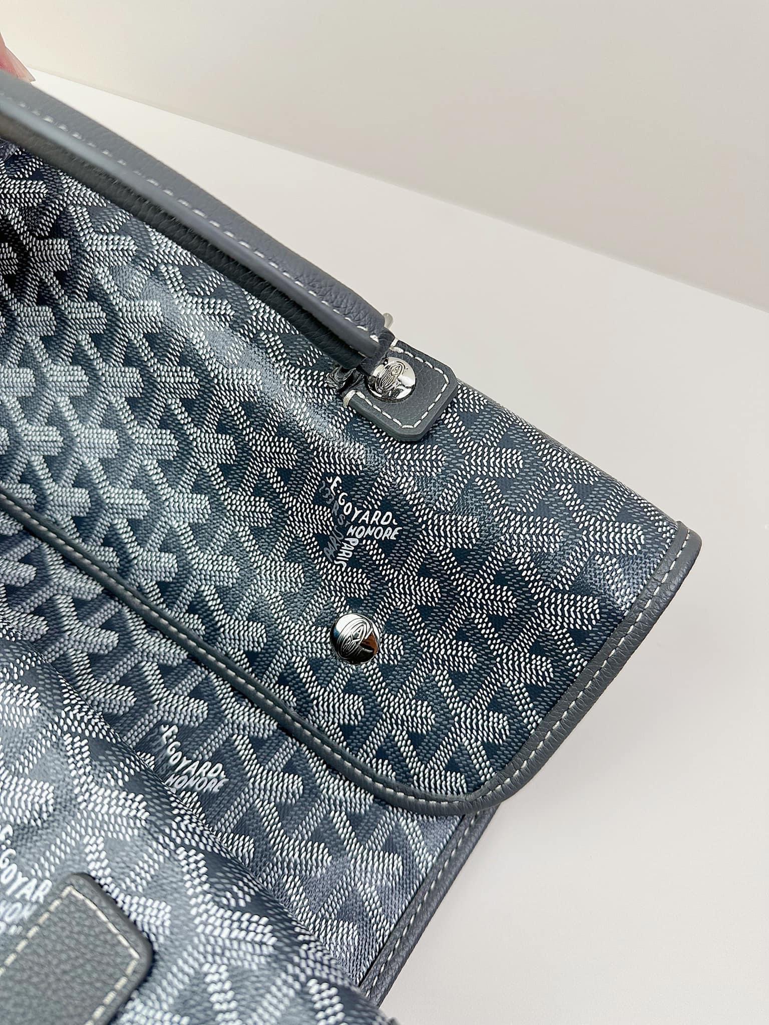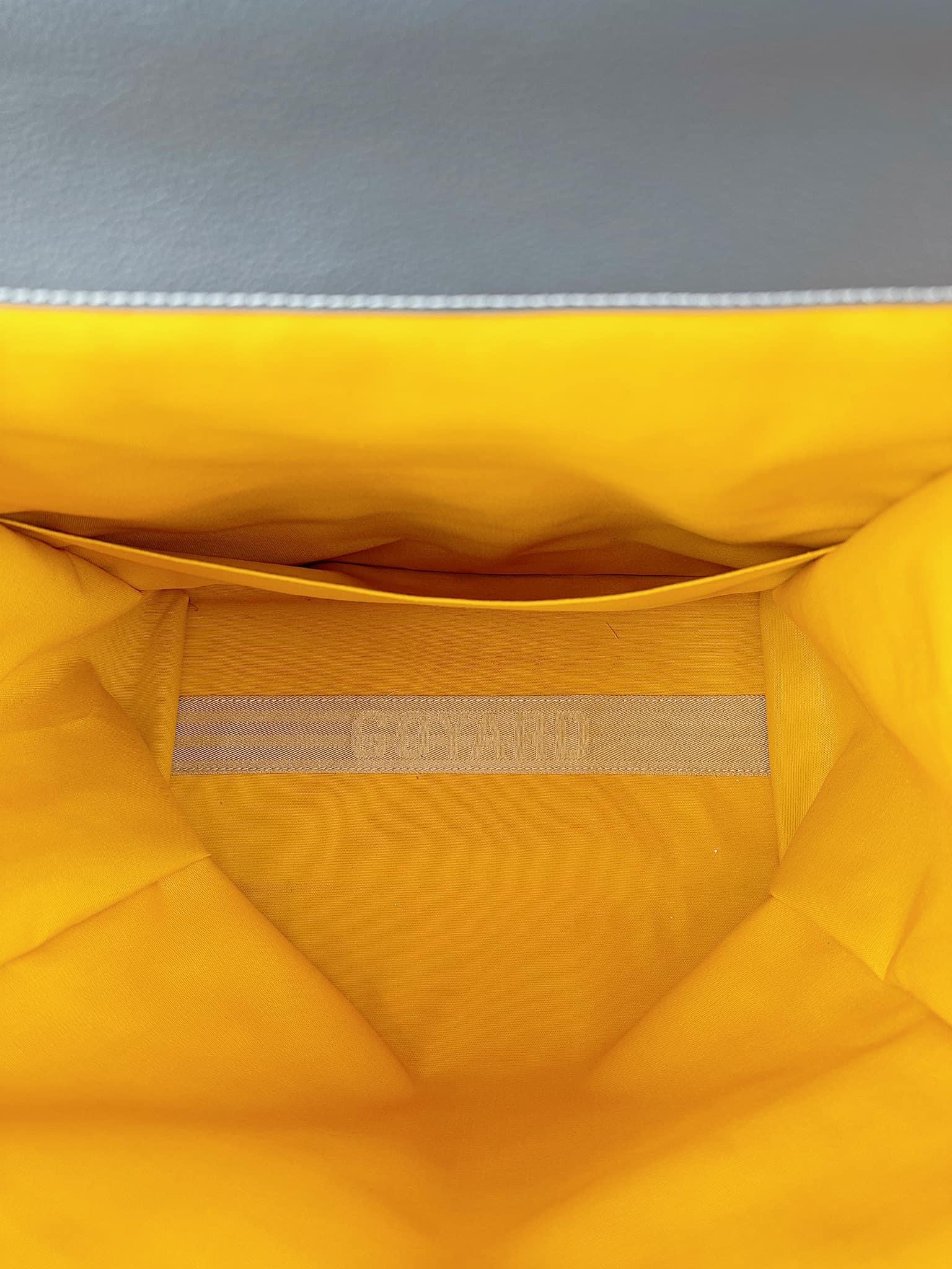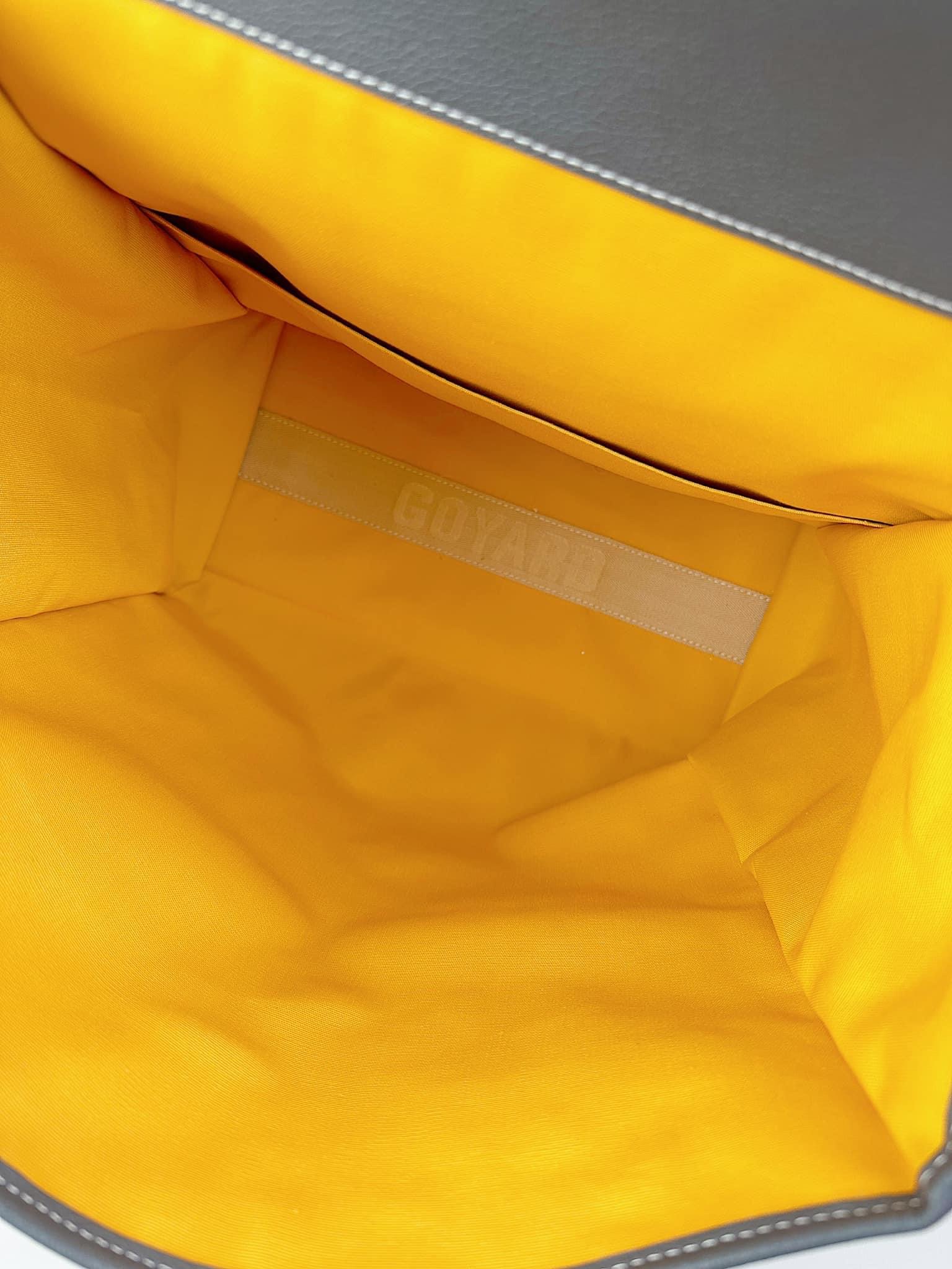 - Chất liệu: Goyardine canvas, da bê, lót vải cotton