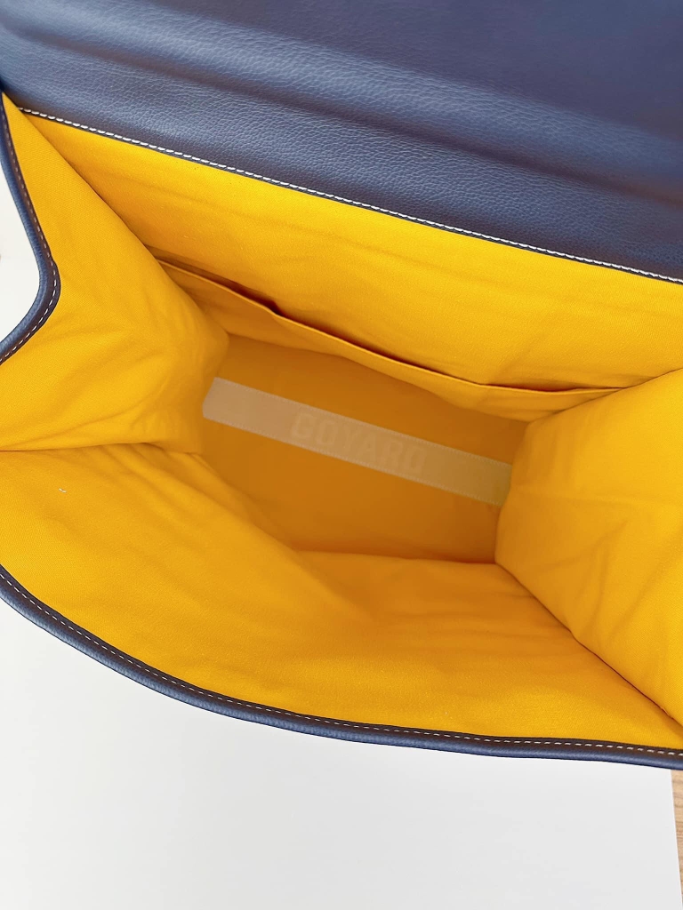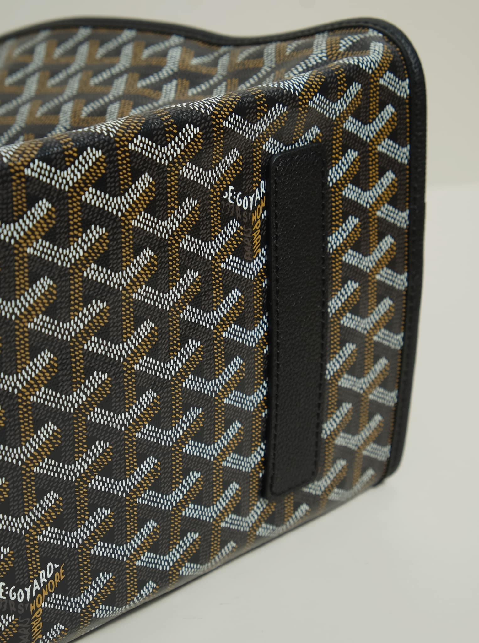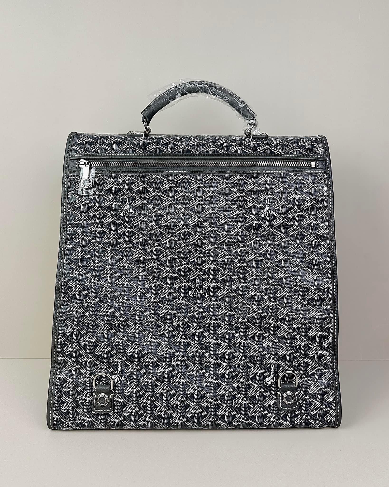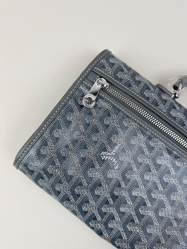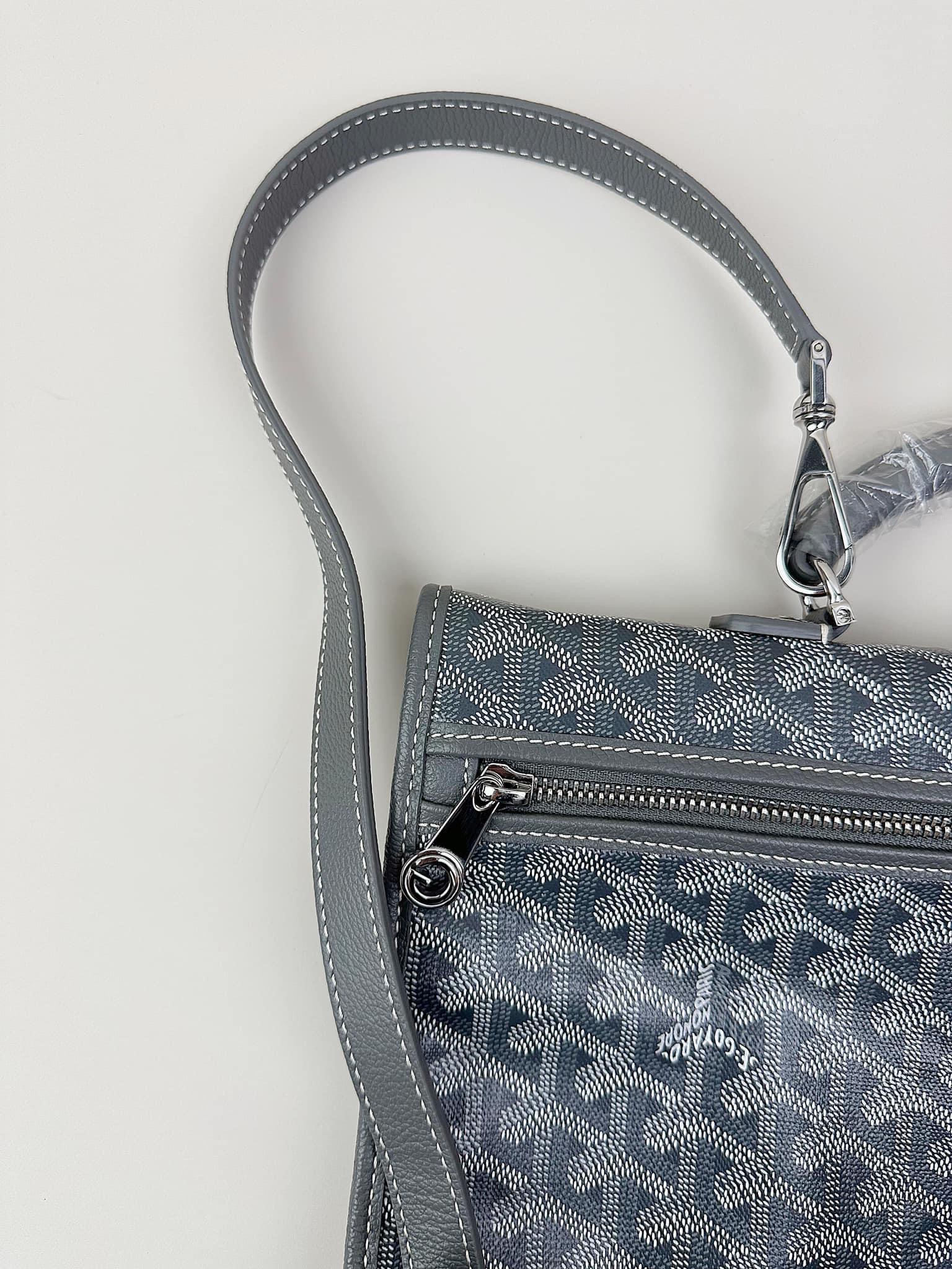 - Chất liệu: Goyardine canvas, da bê, lót vải cotton