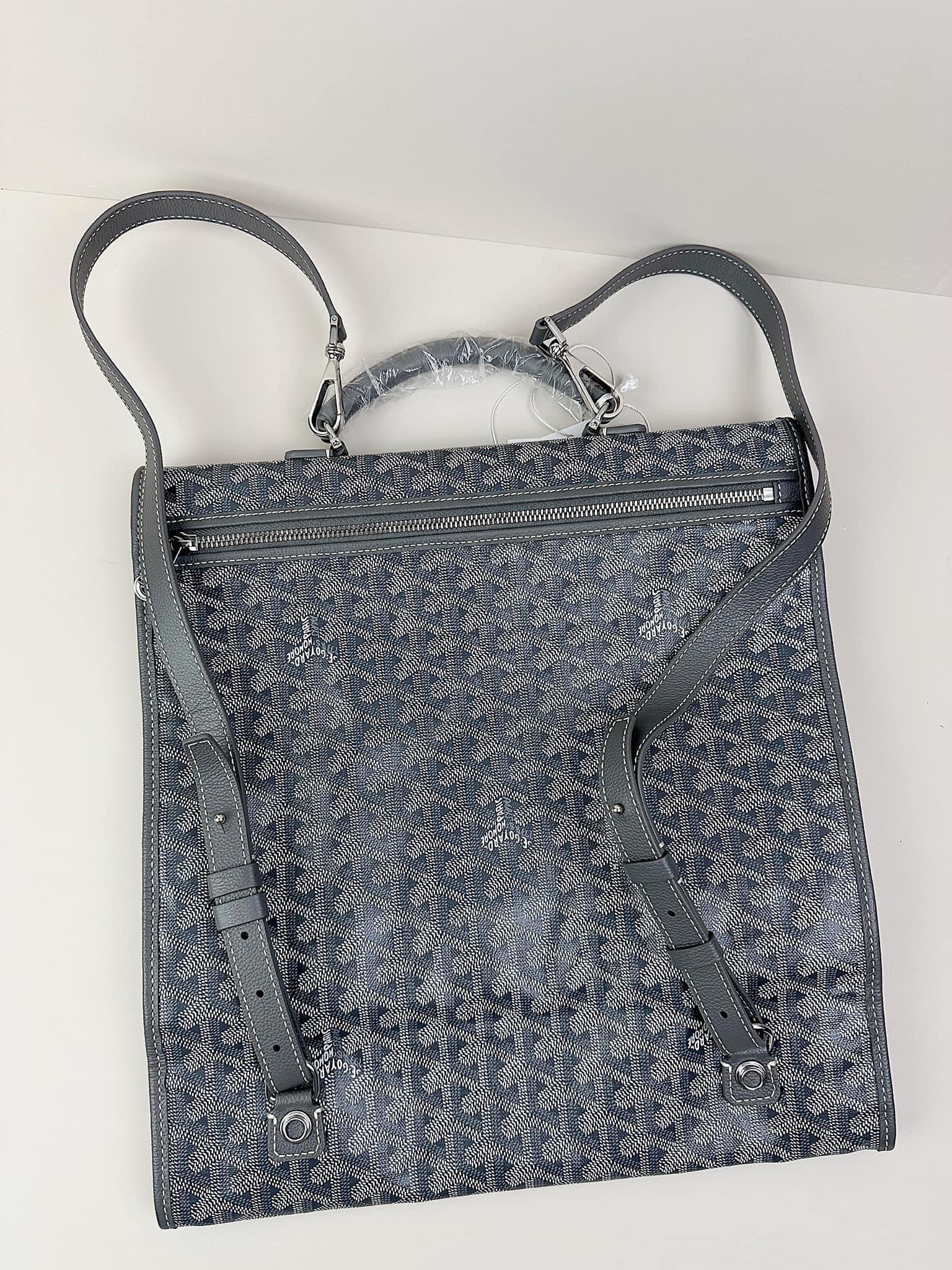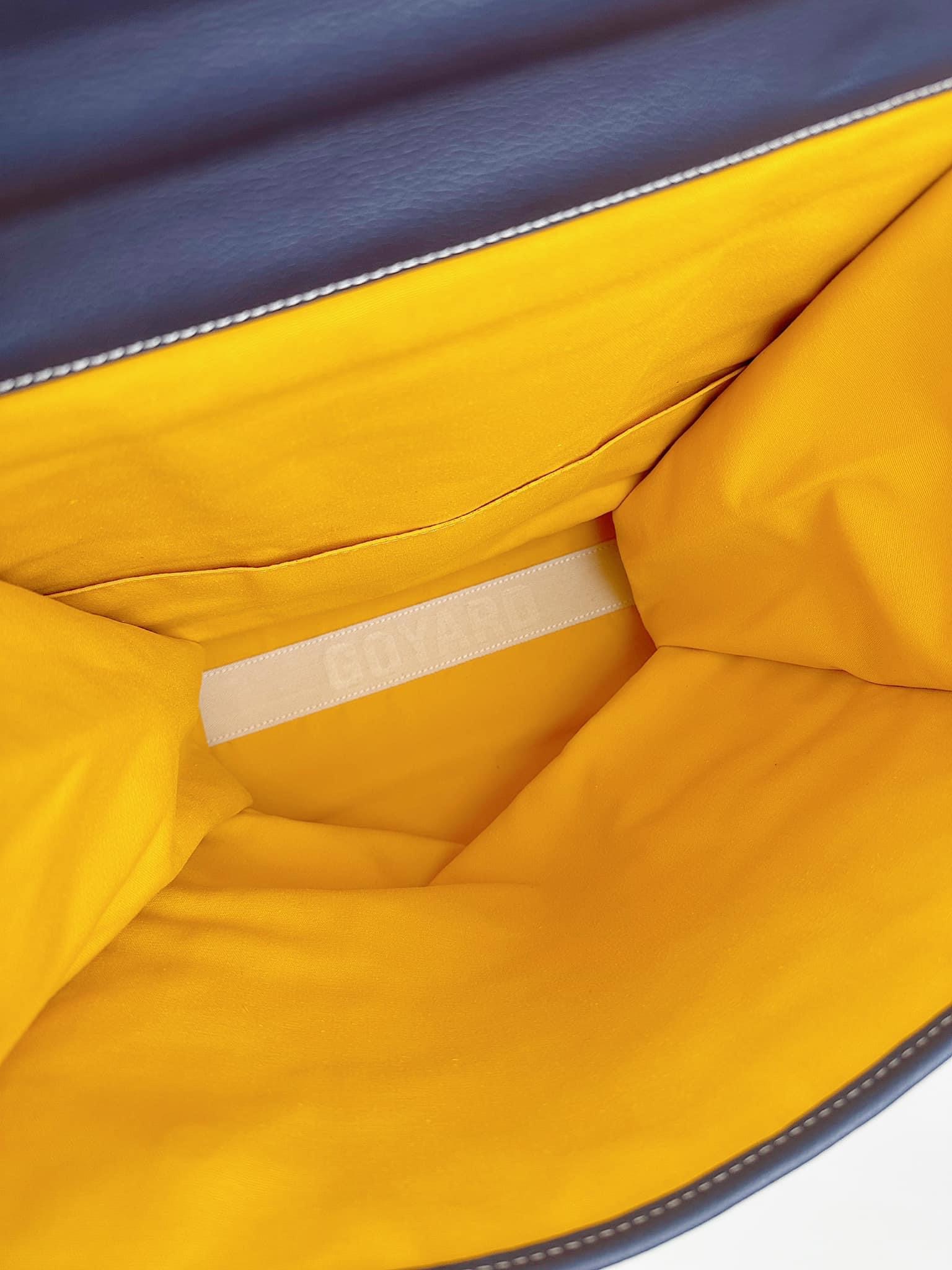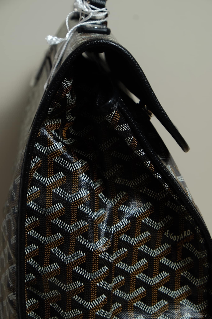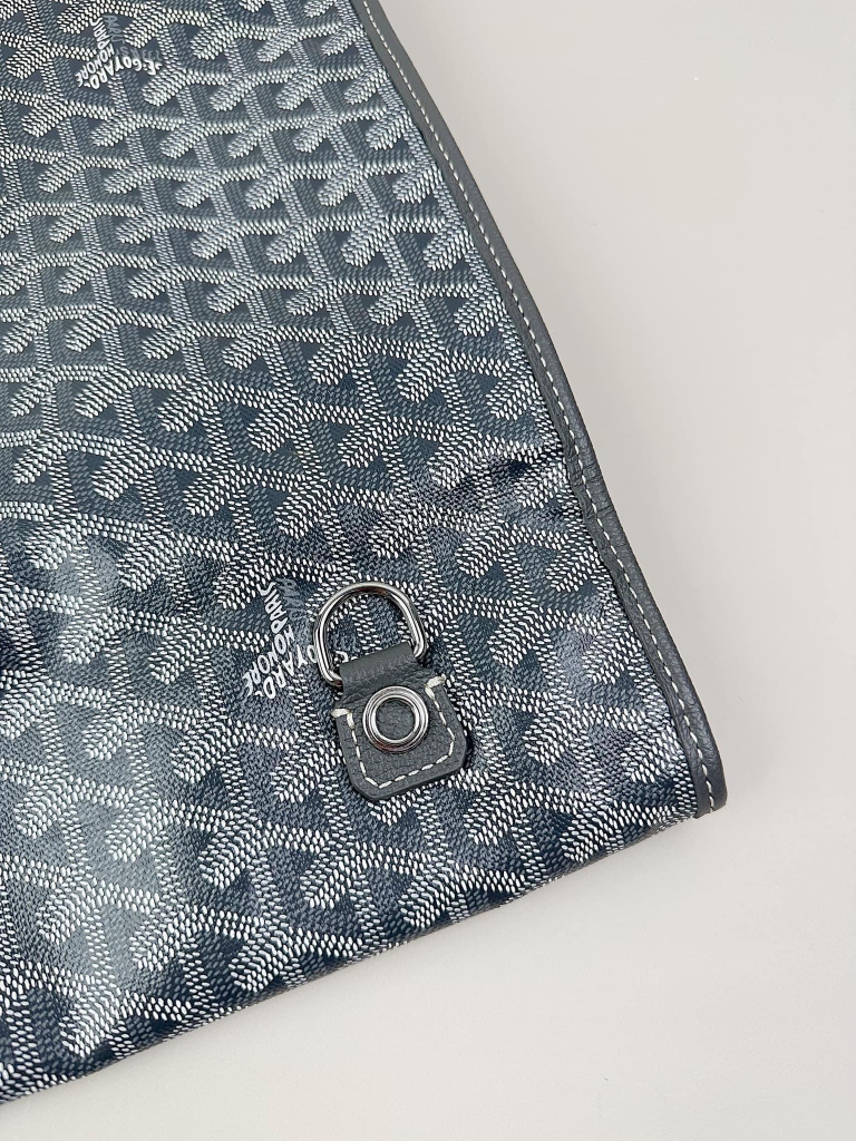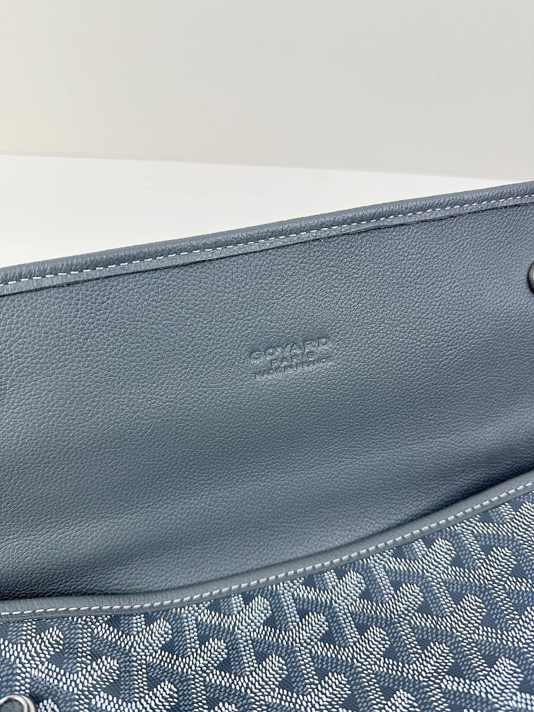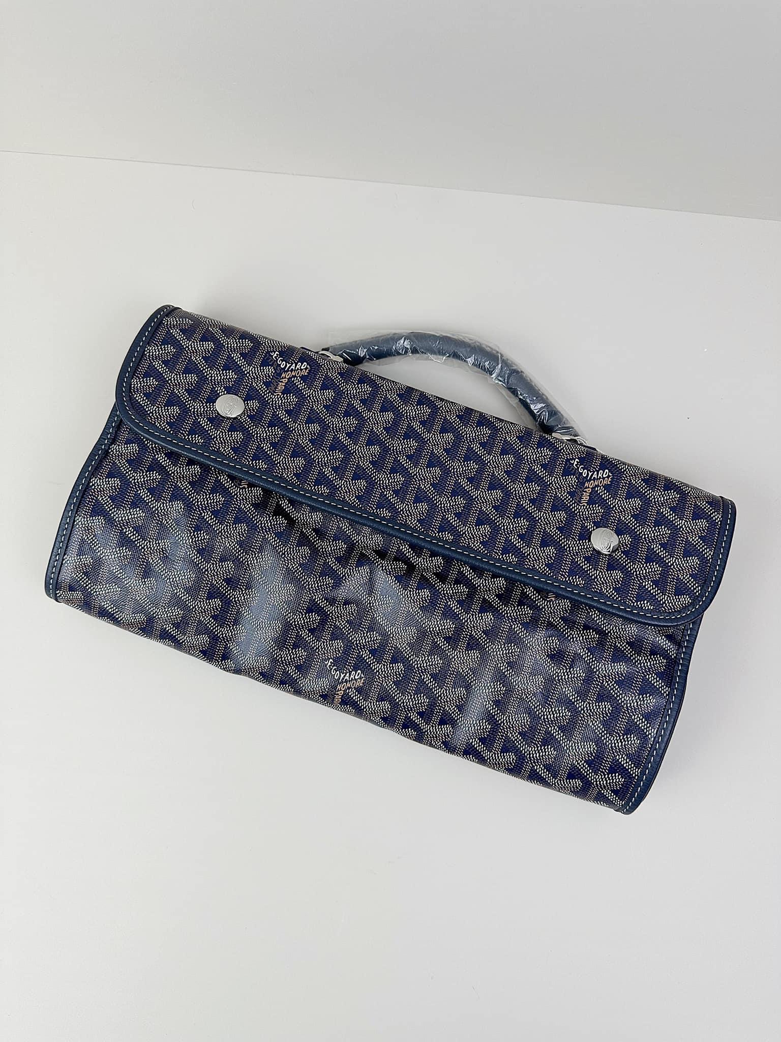 - Chất liệu: Goyardine canvas, da bê, lót vải cotton