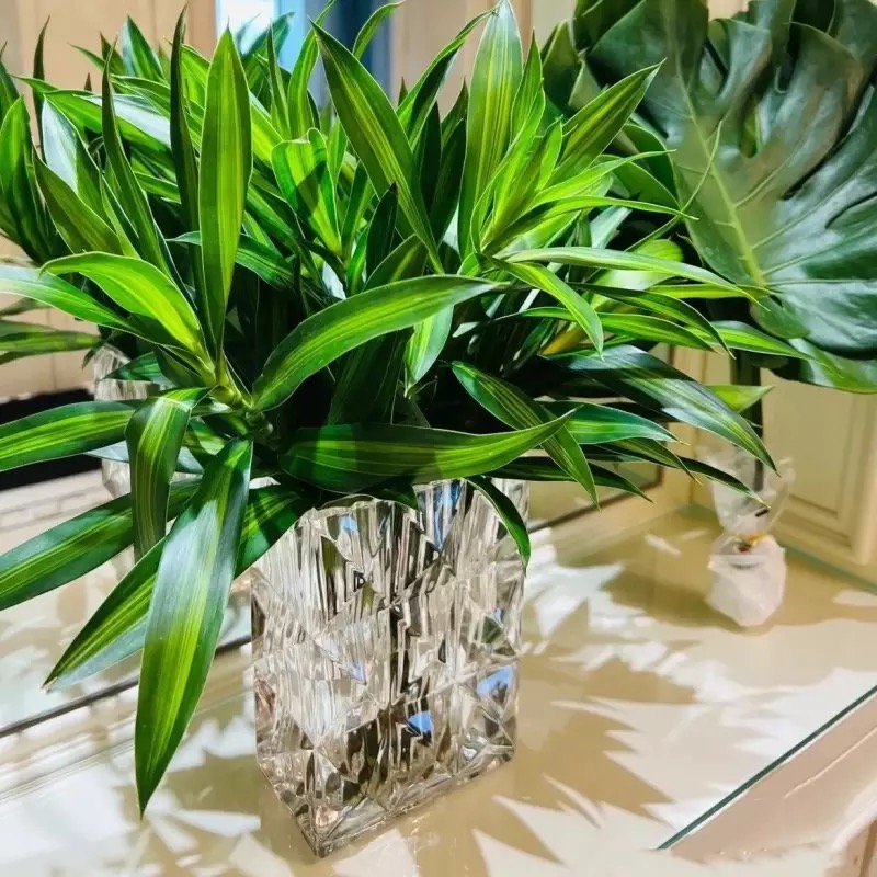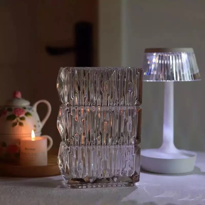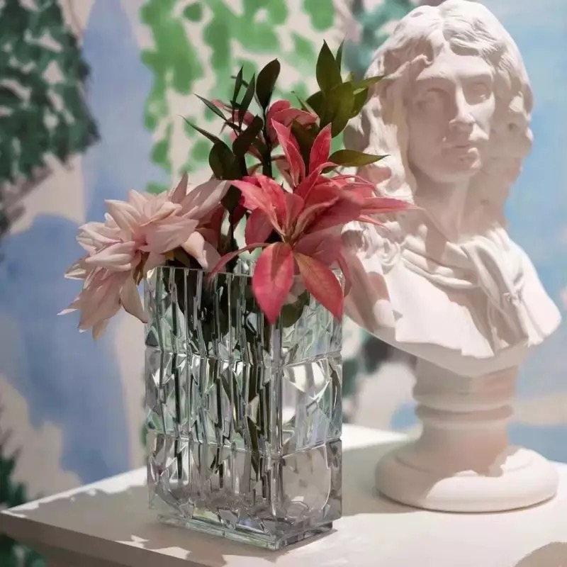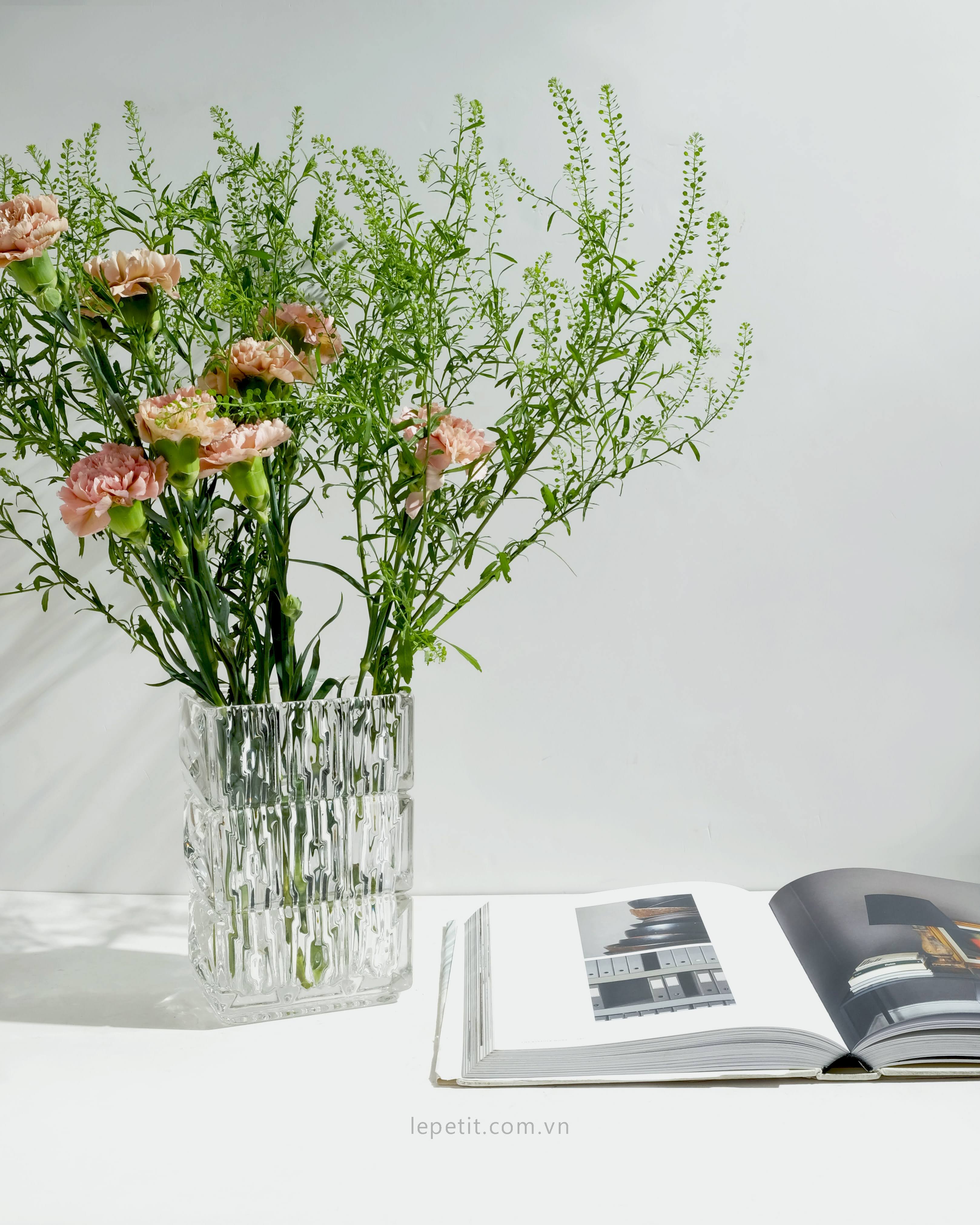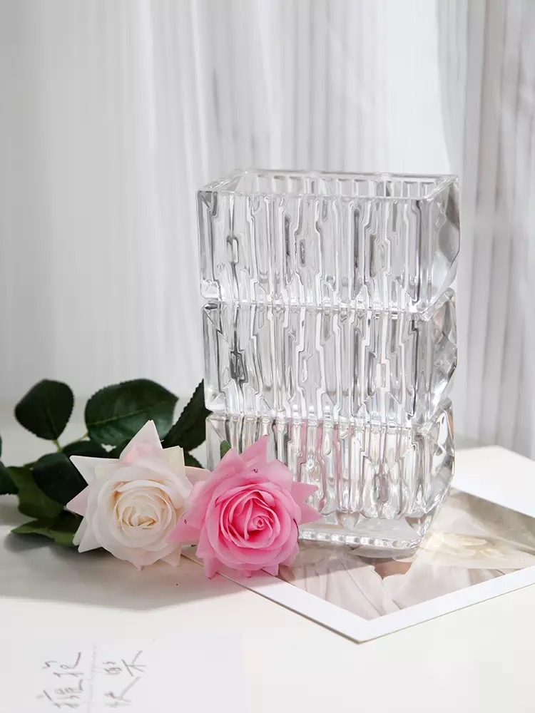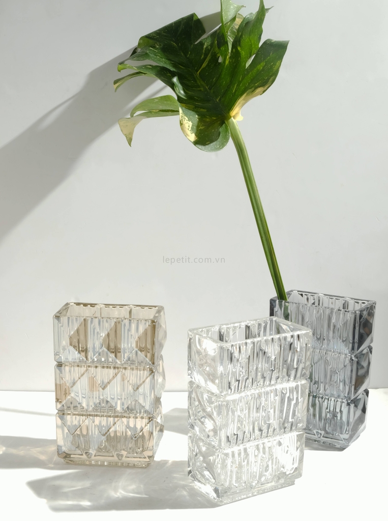 Bình hoa thuỷ tinh dáng chữ nhật vân cắt đa giác