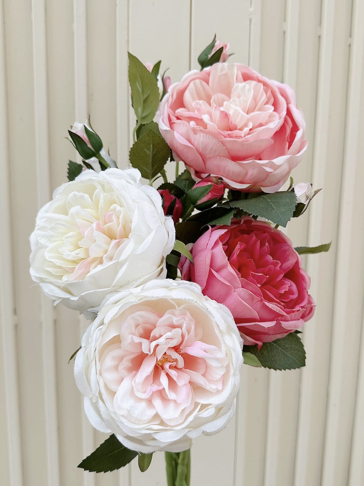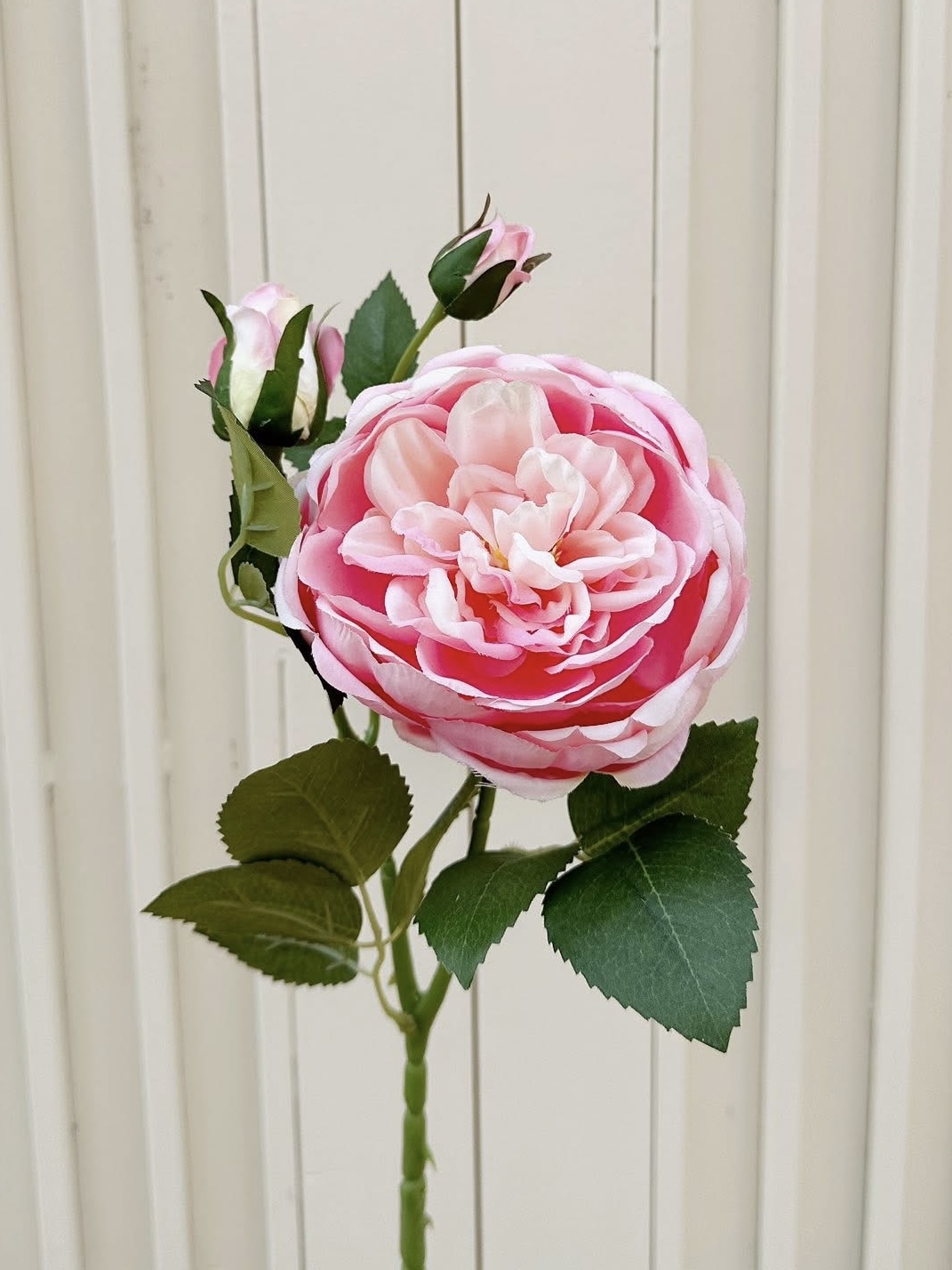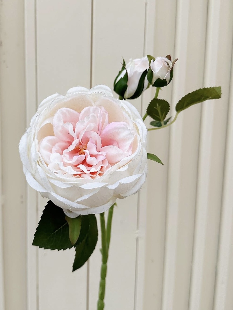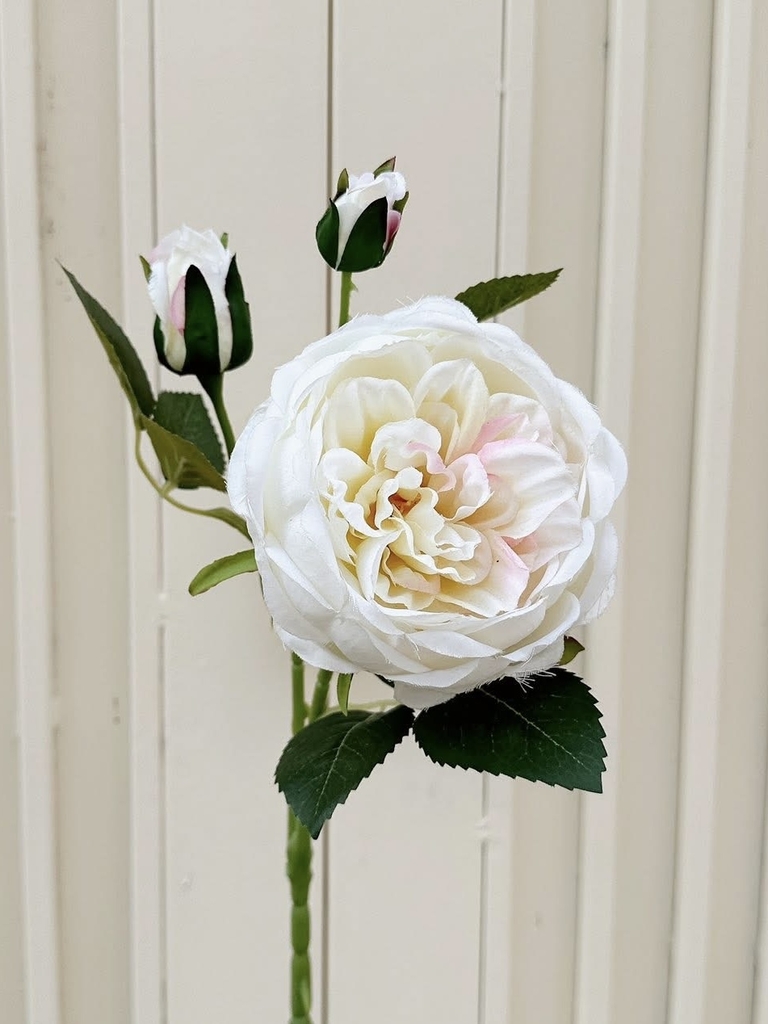 Cành hoa hồng cao 50 cm. Mỗi cành gồm 1 hoa đường kính 12 cm và 2 nụ.