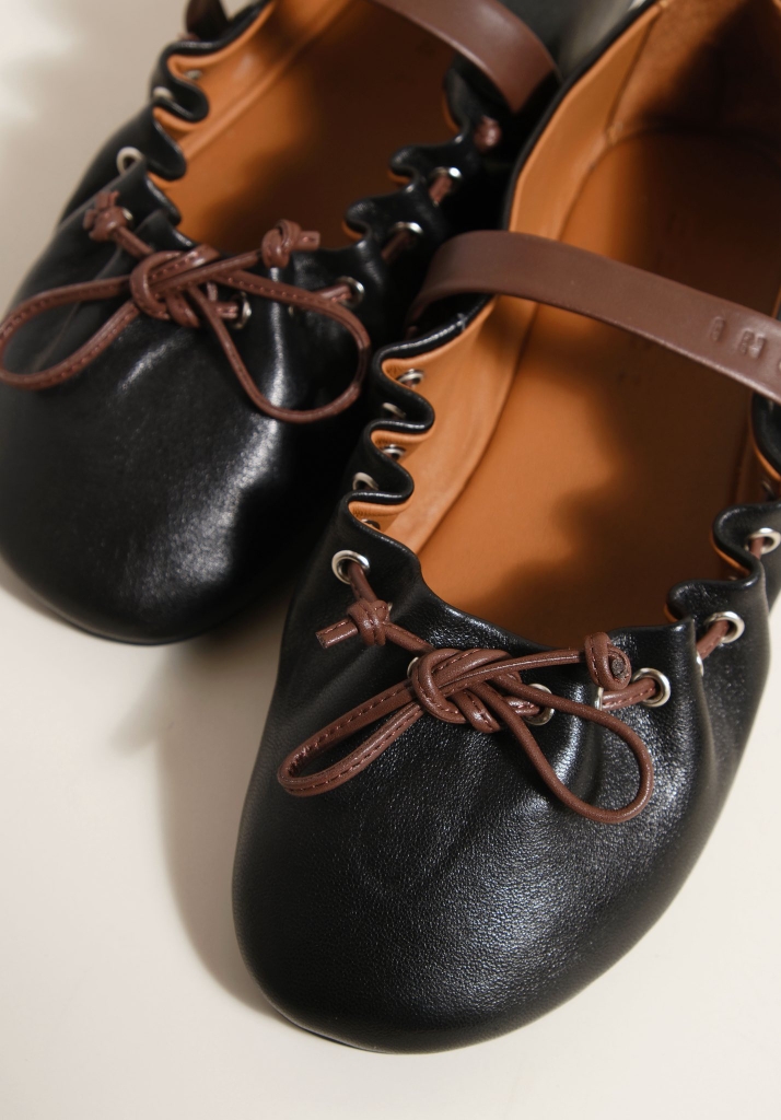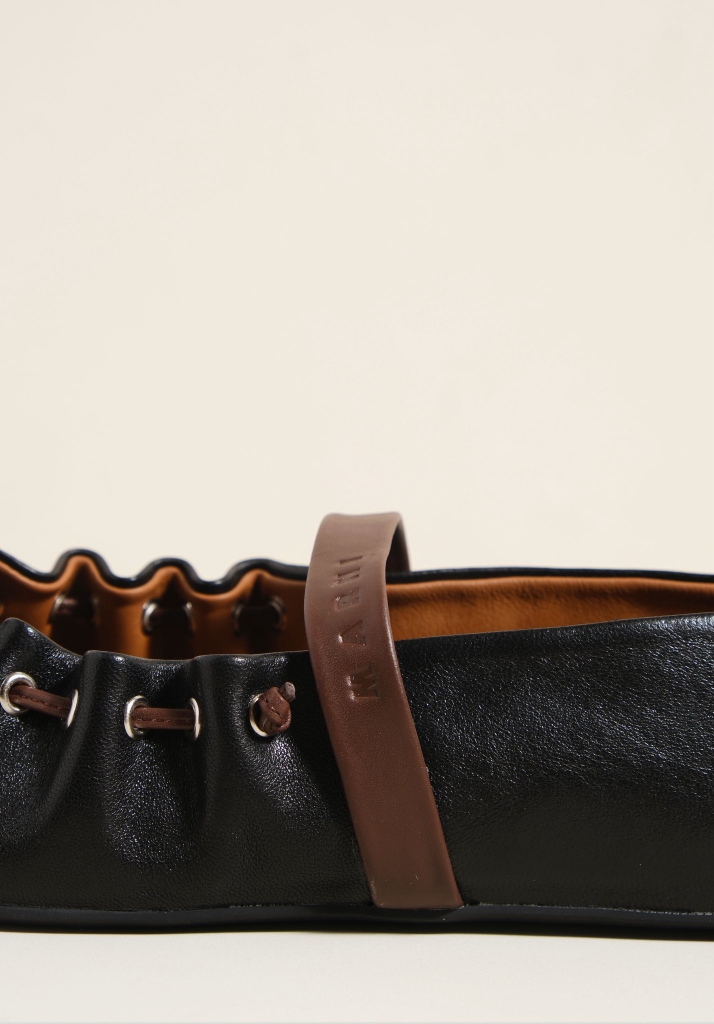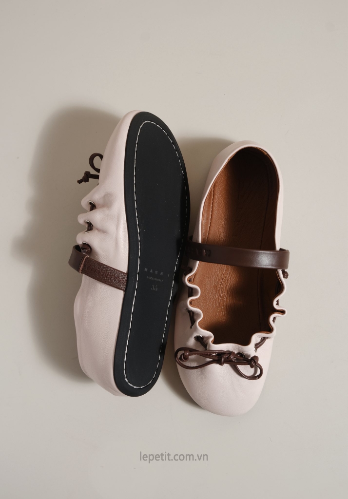 Một mẫu ballerina của M/ar/ni siêu yêu với thiết kế dây rút phá cách, tự nhiên bao bọc bàn chân như một chiếc túi. Chất liệu da cừu siêu mềm mại và êm nhẹ, thoải mái mang hằng ngày.