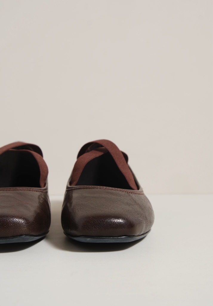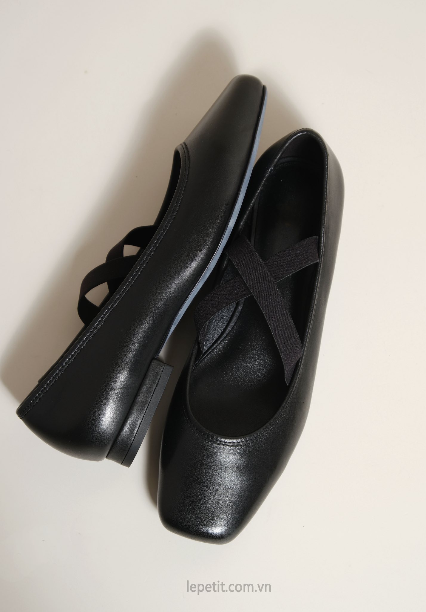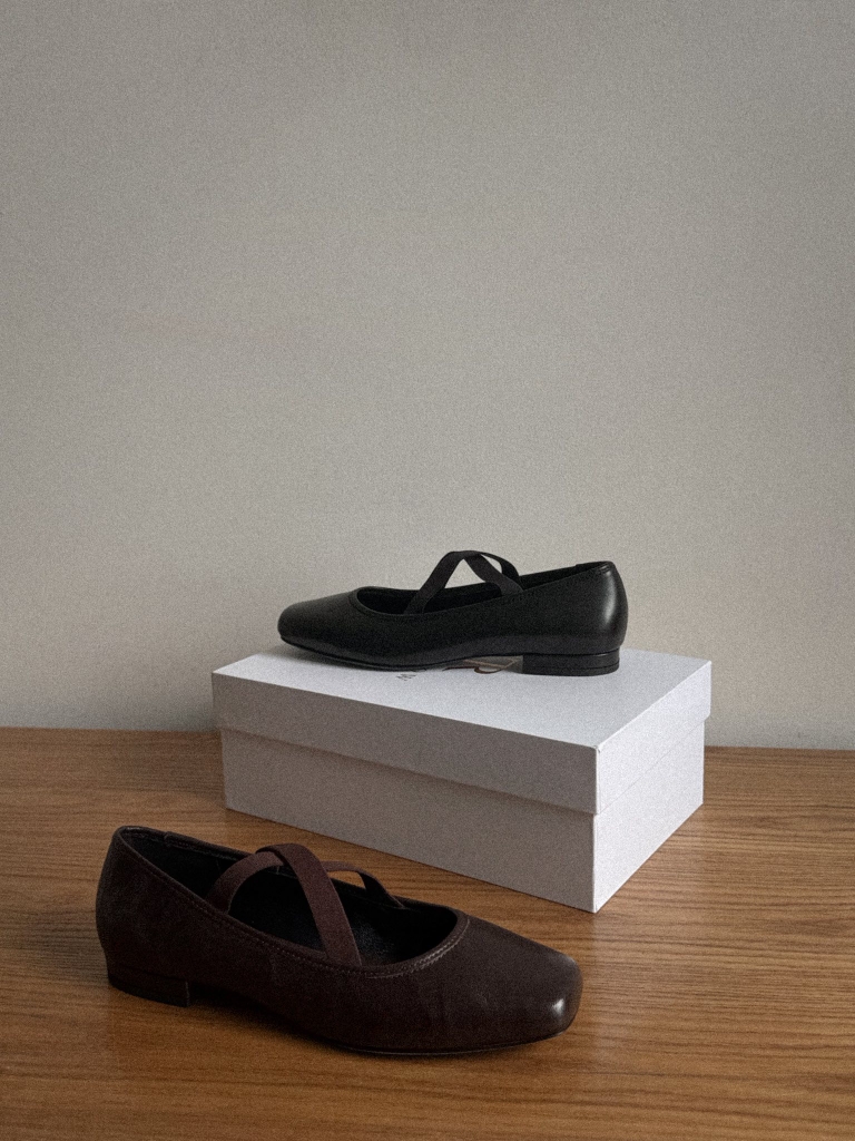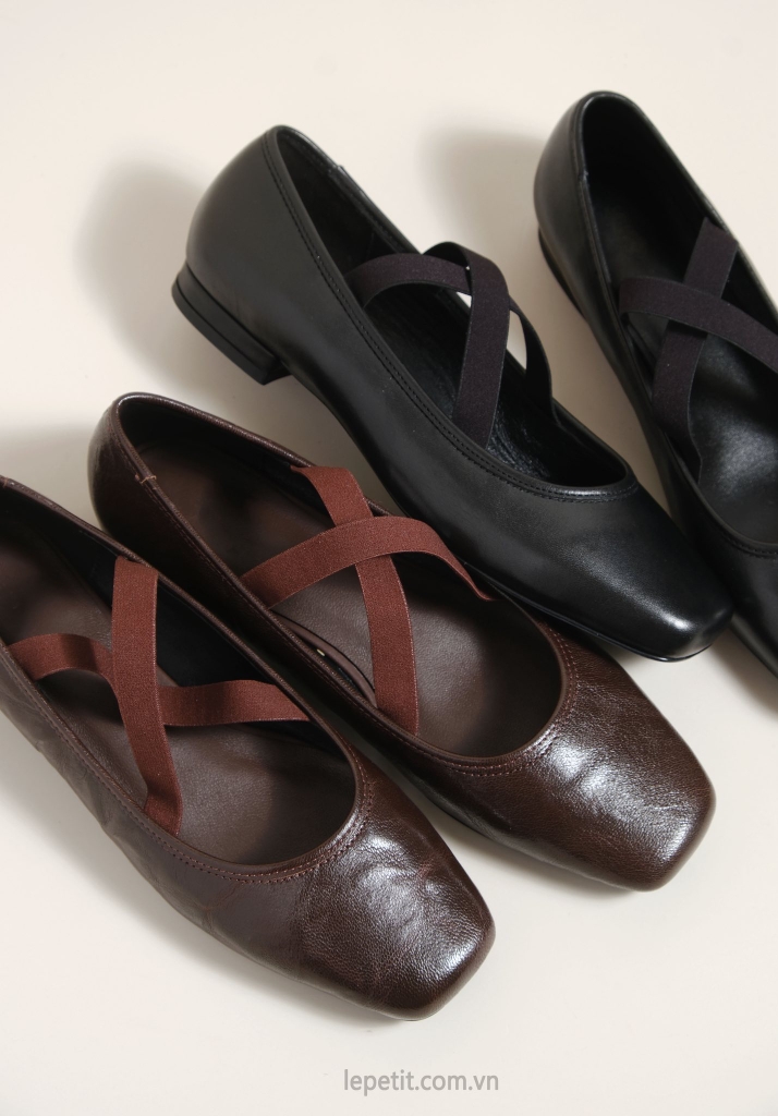 Giày búp bê bệt mũi vuông, quai thun chữ X.