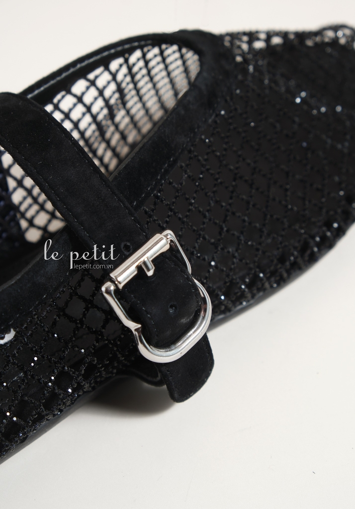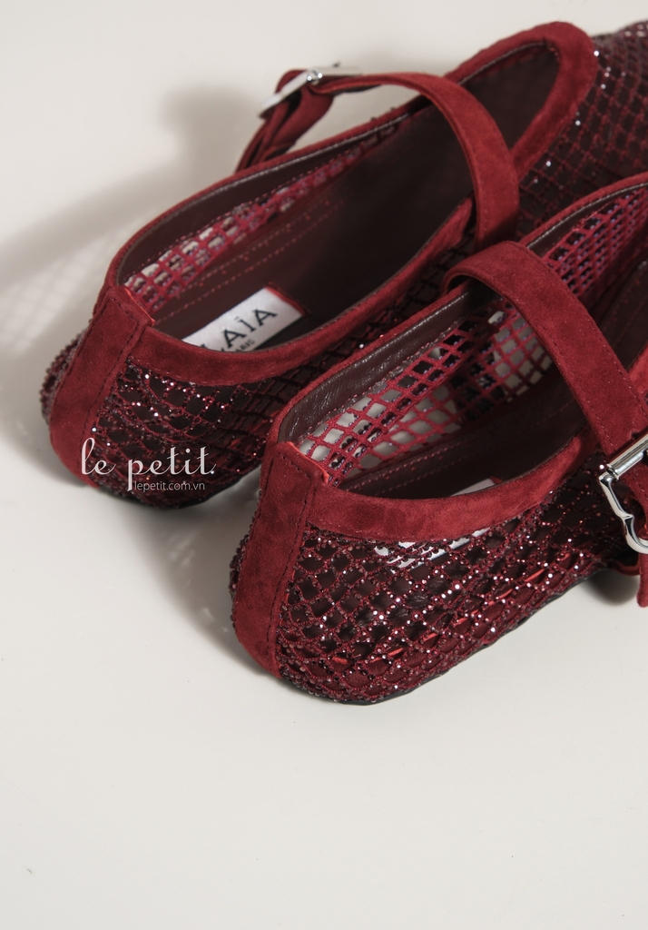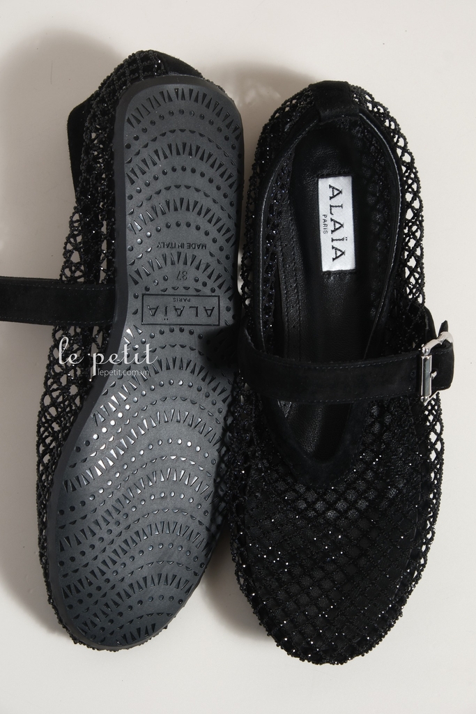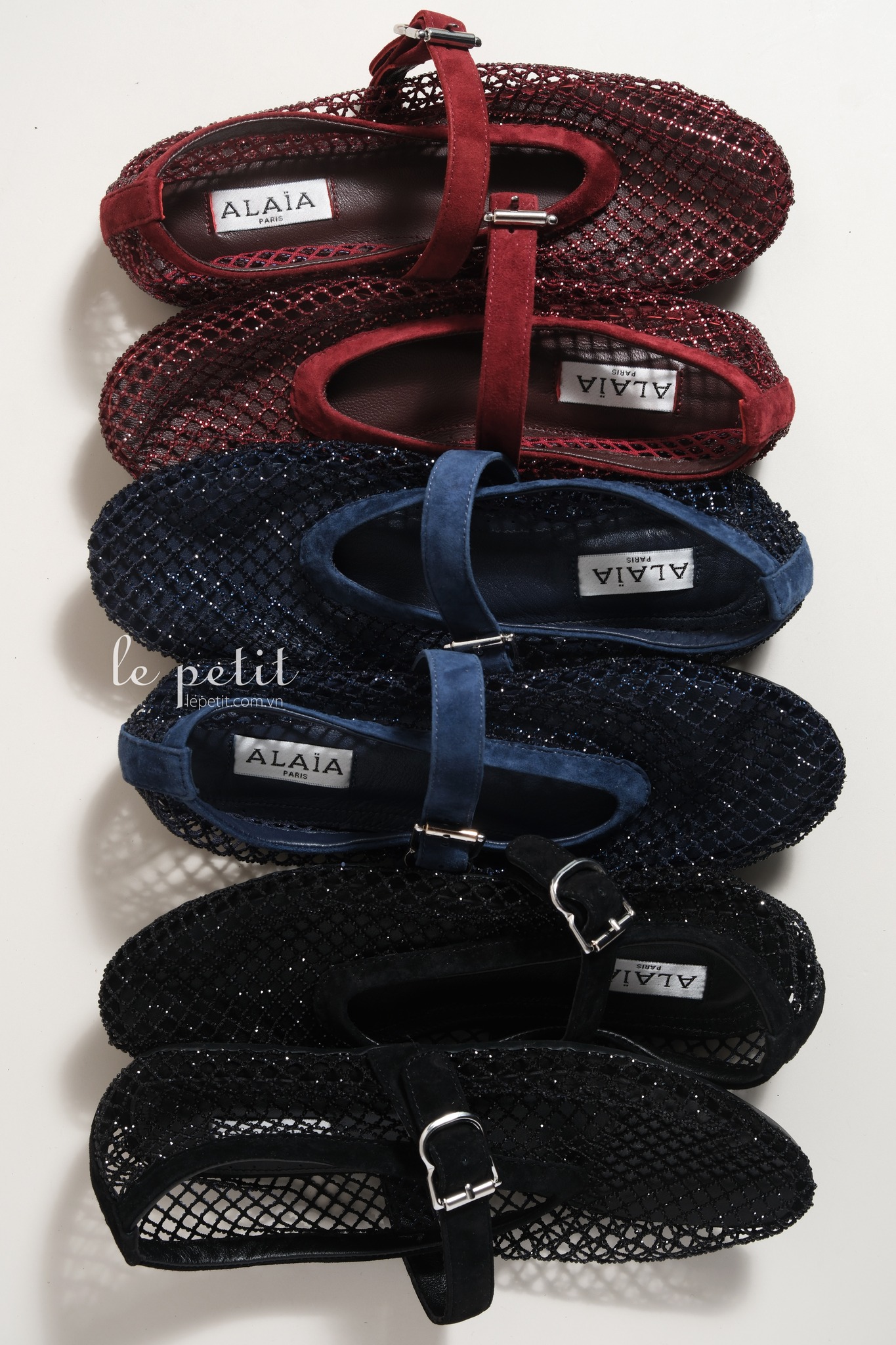Trong mùa xuân hè 2026, A/lai/a mang đến phiên bản mới đầy cuốn hút: vẫn là form ballet lưới quen thuộc, kết hợp cùng chất liệu da lộn và hạt pha lê li ti tạo hiệu ứng lấp lánh nhẹ nhàng dù là diện ban ngày hay buổi tối.