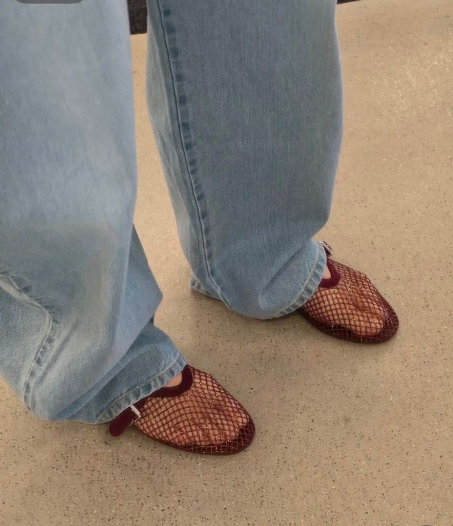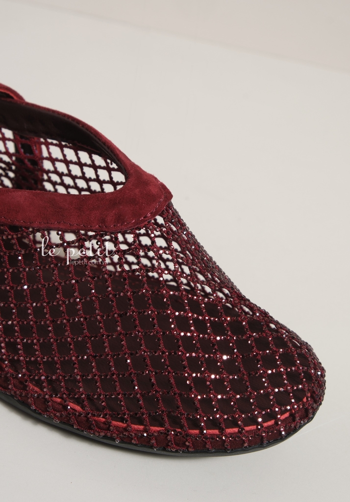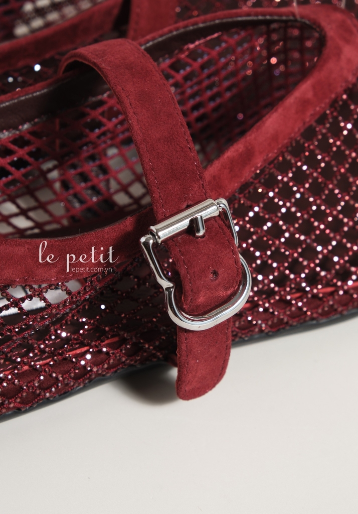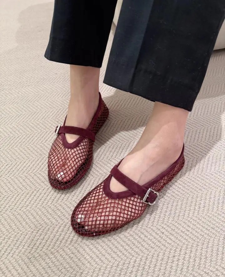 Trong mùa xuân hè 2026, A/lai/a mang đến phiên bản mới đầy cuốn hút: vẫn là form ballet lưới quen thuộc, kết hợp cùng chất liệu da lộn và hạt pha lê li ti tạo hiệu ứng lấp lánh nhẹ nhàng dù là diện ban ngày hay buổi tối.