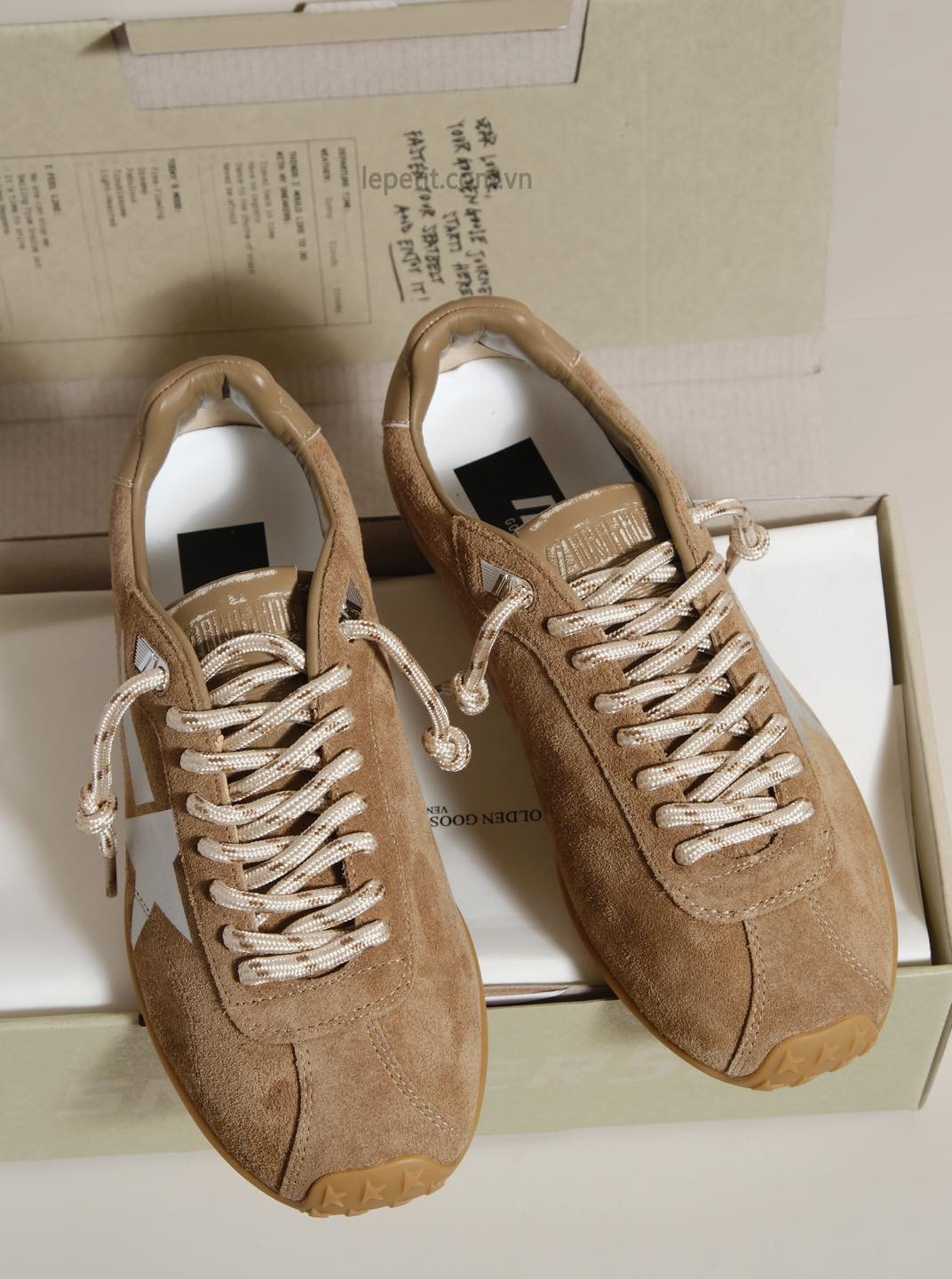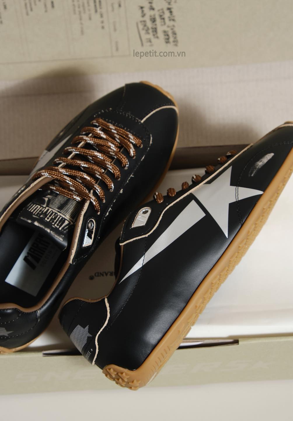 Mỗi đôi giày, món phụ kiện hay trang phục Golden Goose đều được chế tác thủ công tỉ mỉ, với những chi tiết được cố ý xử lý hiệu ứng “vintage” - biểu tượng đặc trưng của thương hiệu. Chính sự pha trộn giữa sang trọng, tự do và cá tính đã giúp Golden Goose trở thành biểu tượng của phong cách sống hiện đại, dành cho những ai dám khác biệt và thể hiện bản thân.