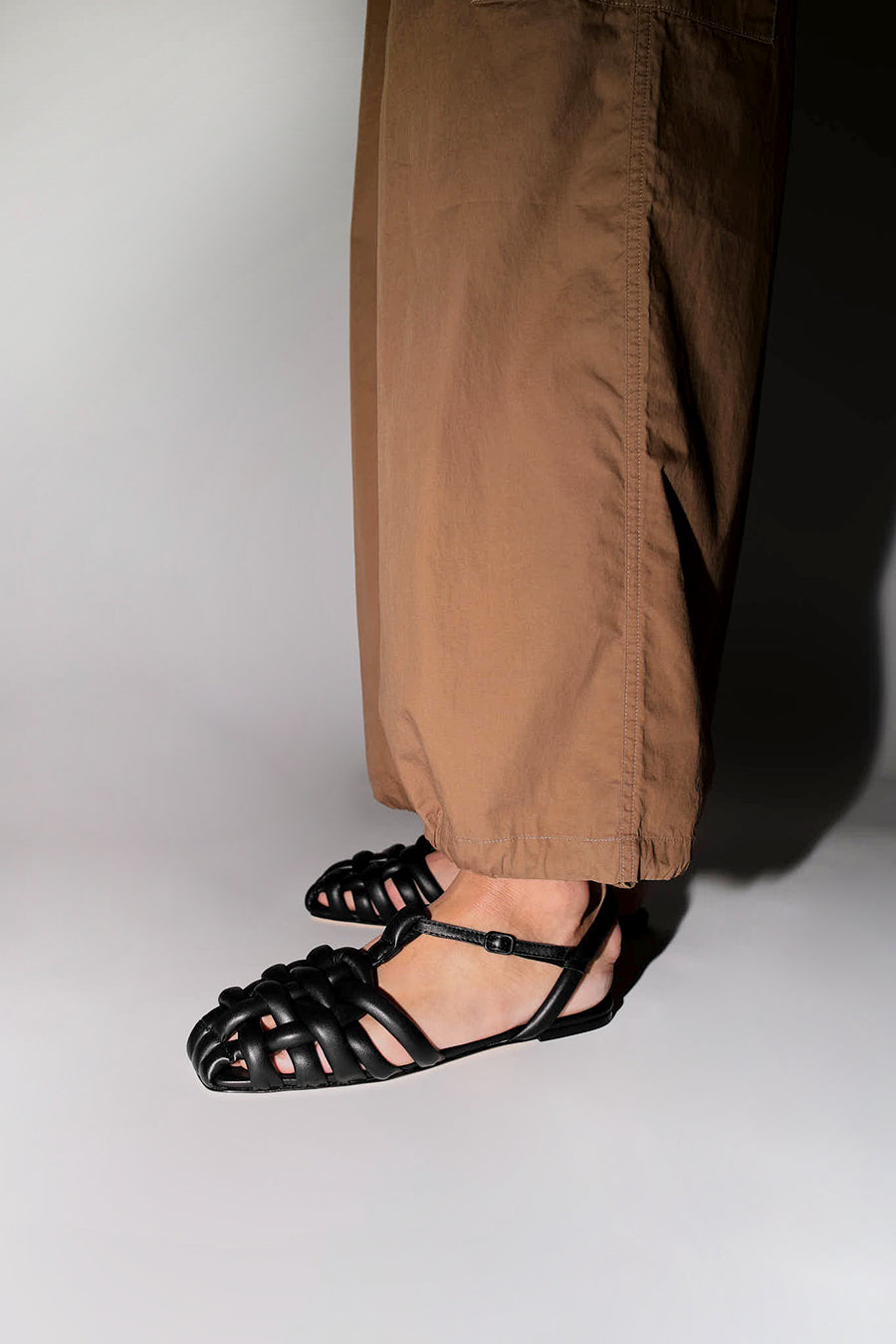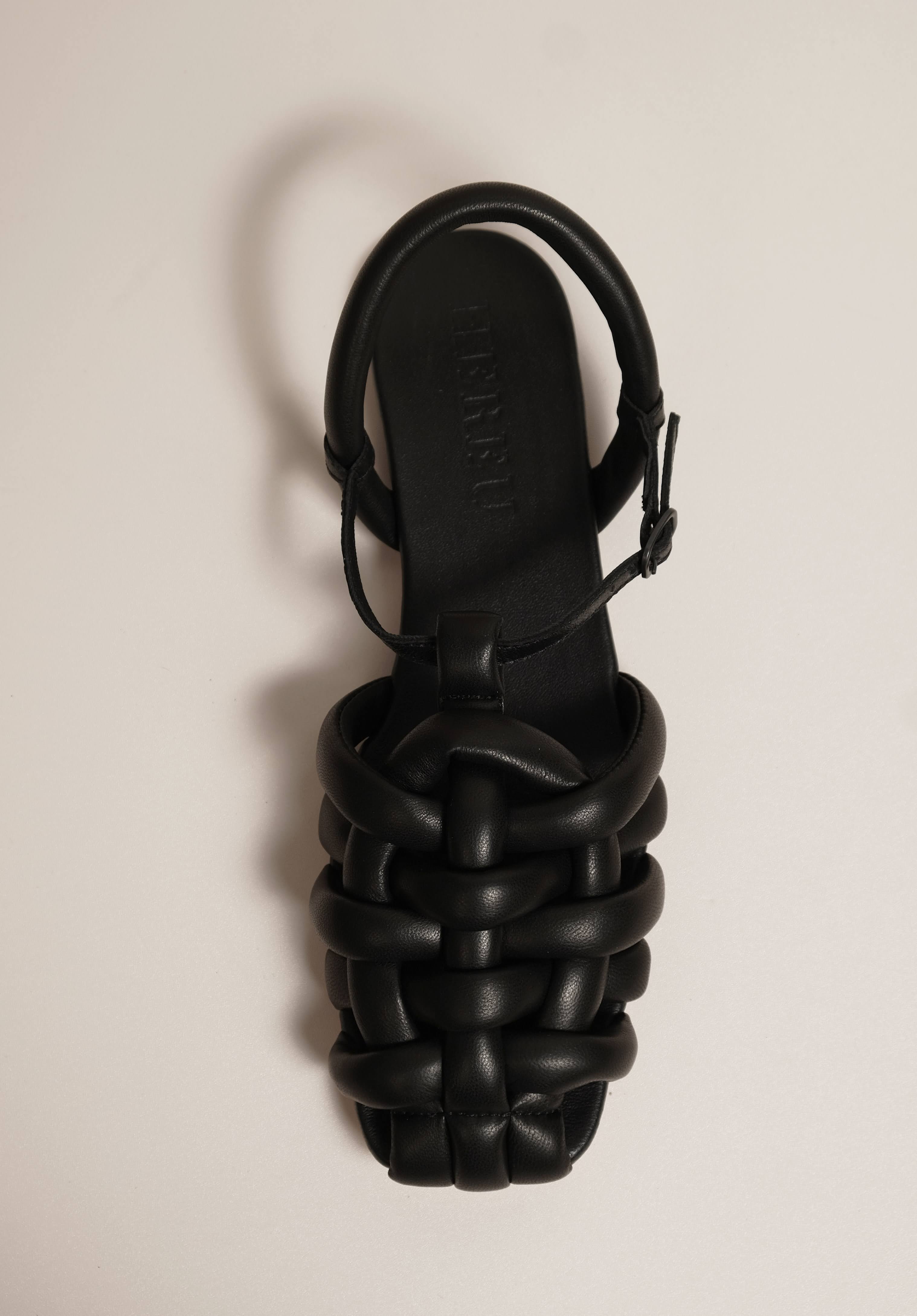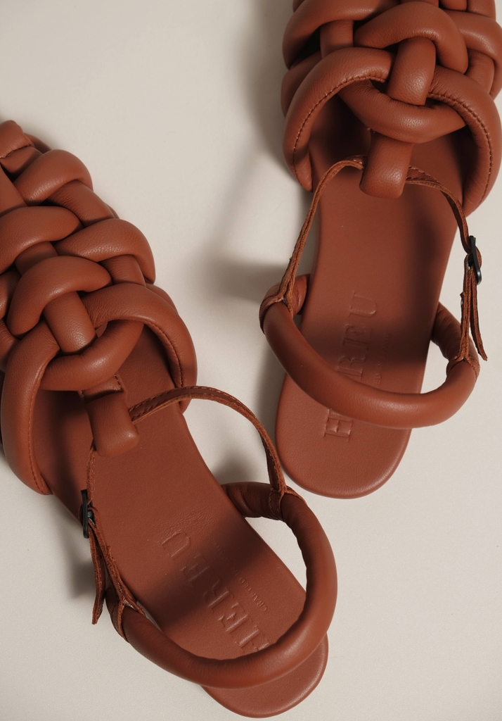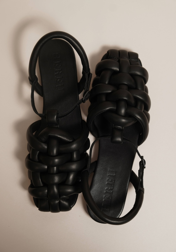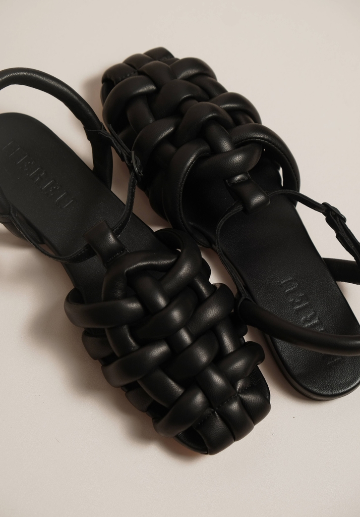 Giày sở hữu đế bằng, mũi vuông, quai đệm tròn đan woven thủ công mang đến sự êm ái và thoải mái cho người mang. Đế giày cũng được làm từ da thật.