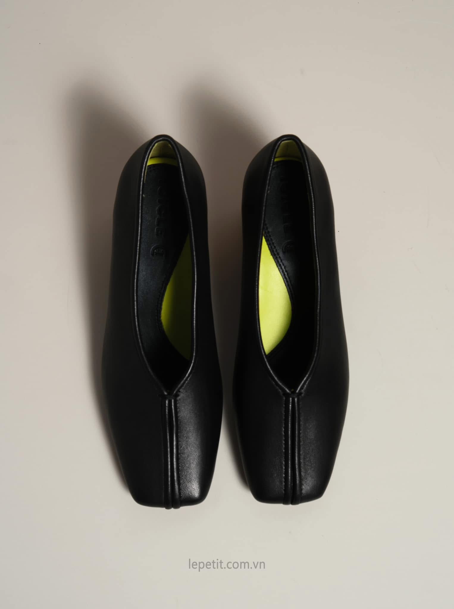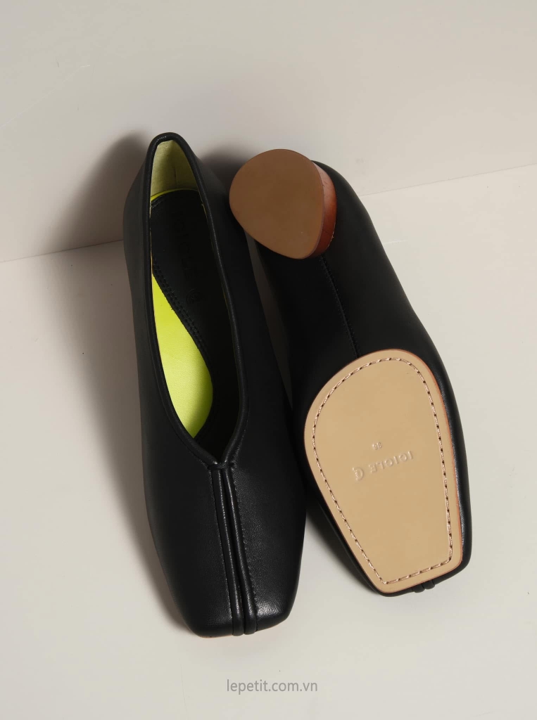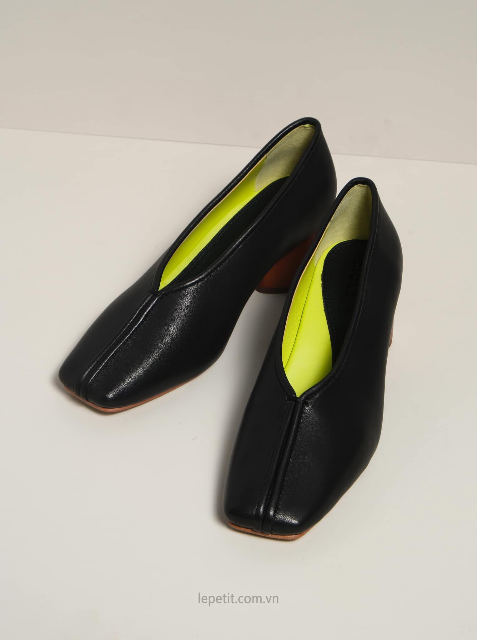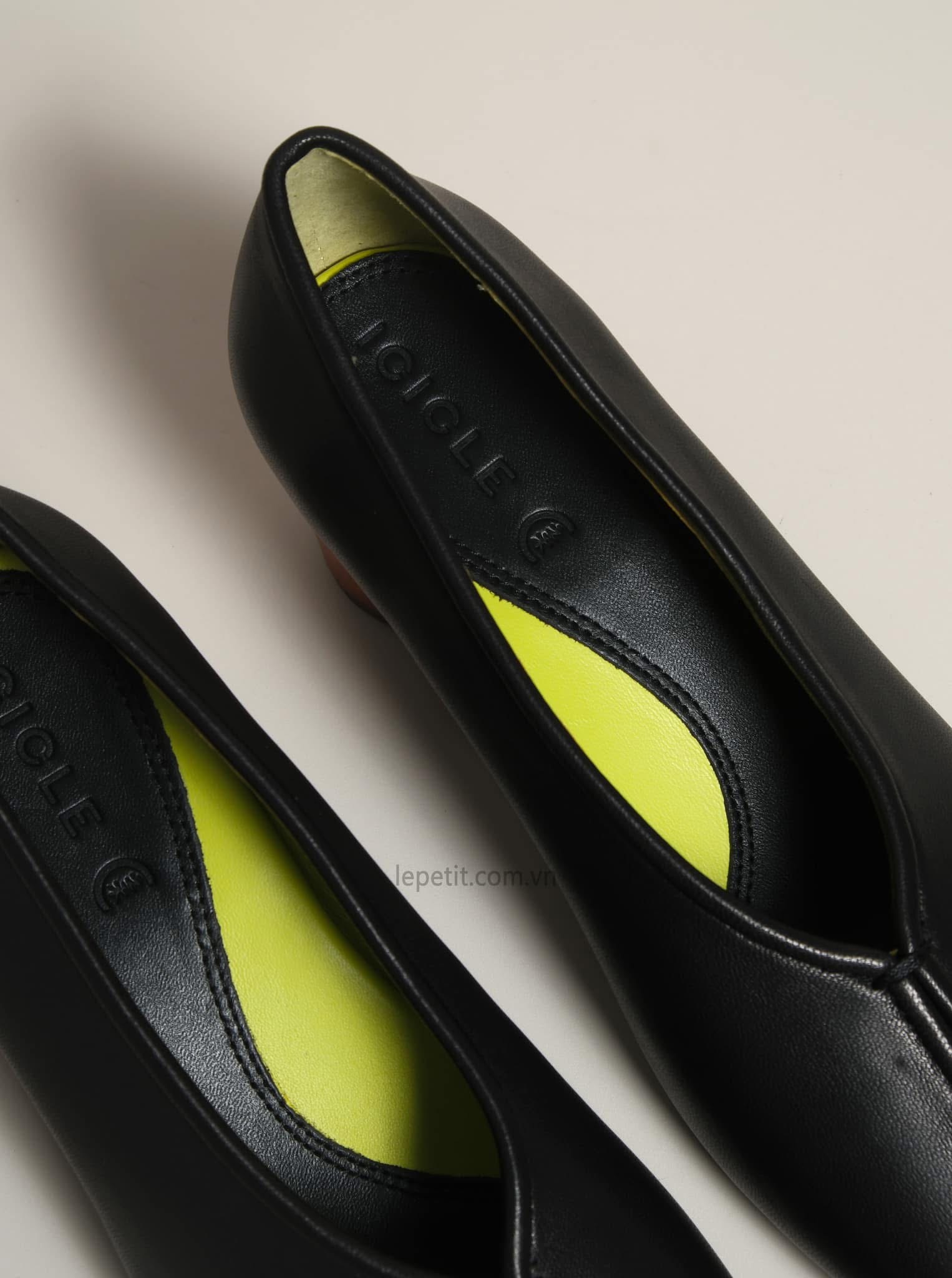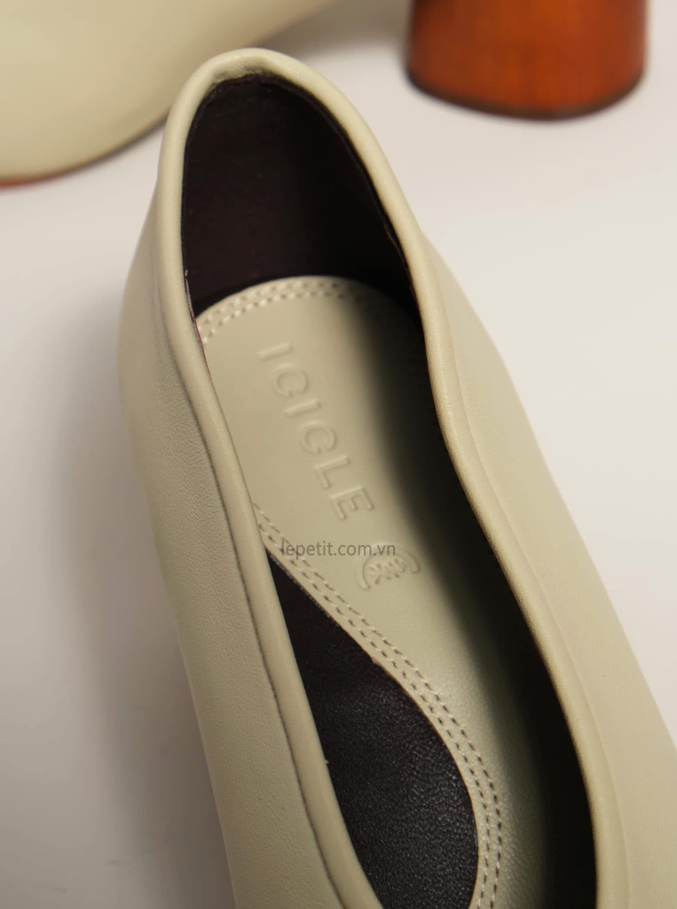 Giày gót gỗ trụ, da thật toàn bộ mang đến sự êm ái và thoải mái khi mang hằng ngày.