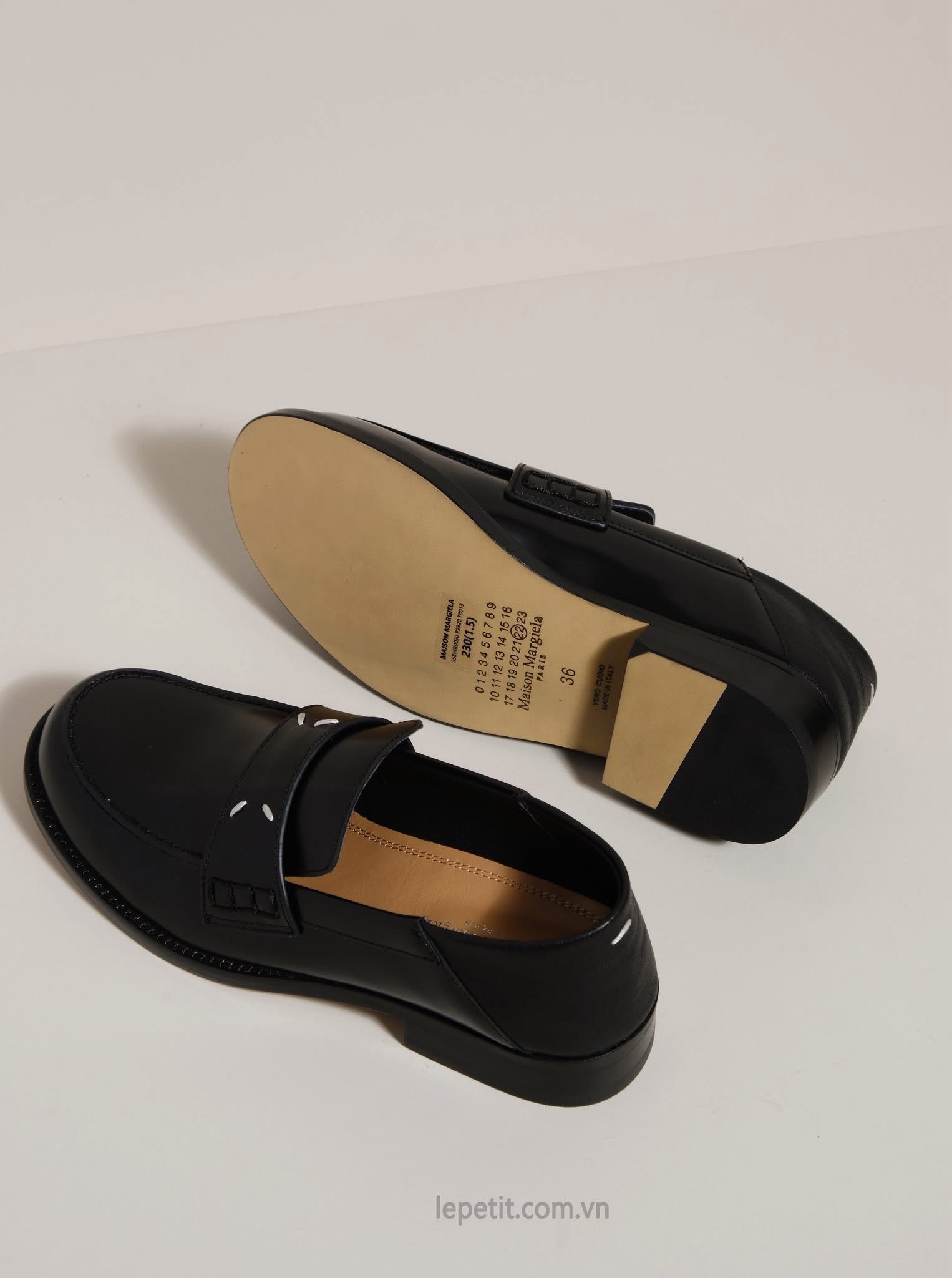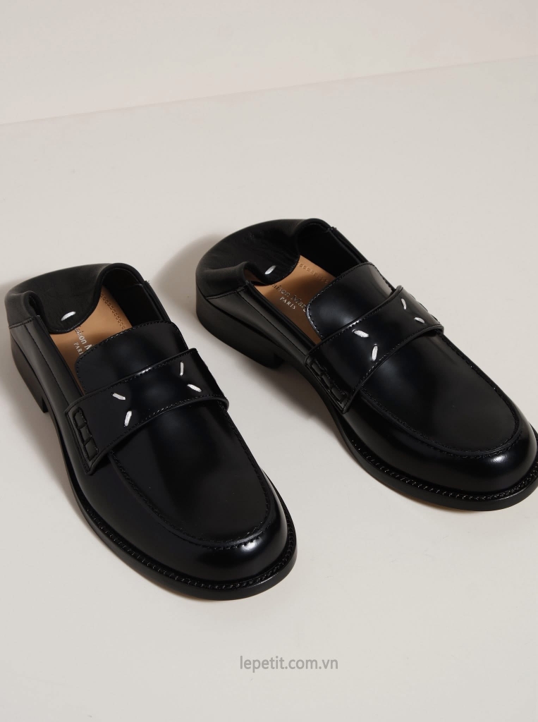 Một đôi loafers cực kỳ tối giản với phom dáng cổ điển, bề mặt da bóng cùng đường nét sắc sảo tạo nên vẻ đẹp chuẩn mực của sự thanh lịch hiện đại.
