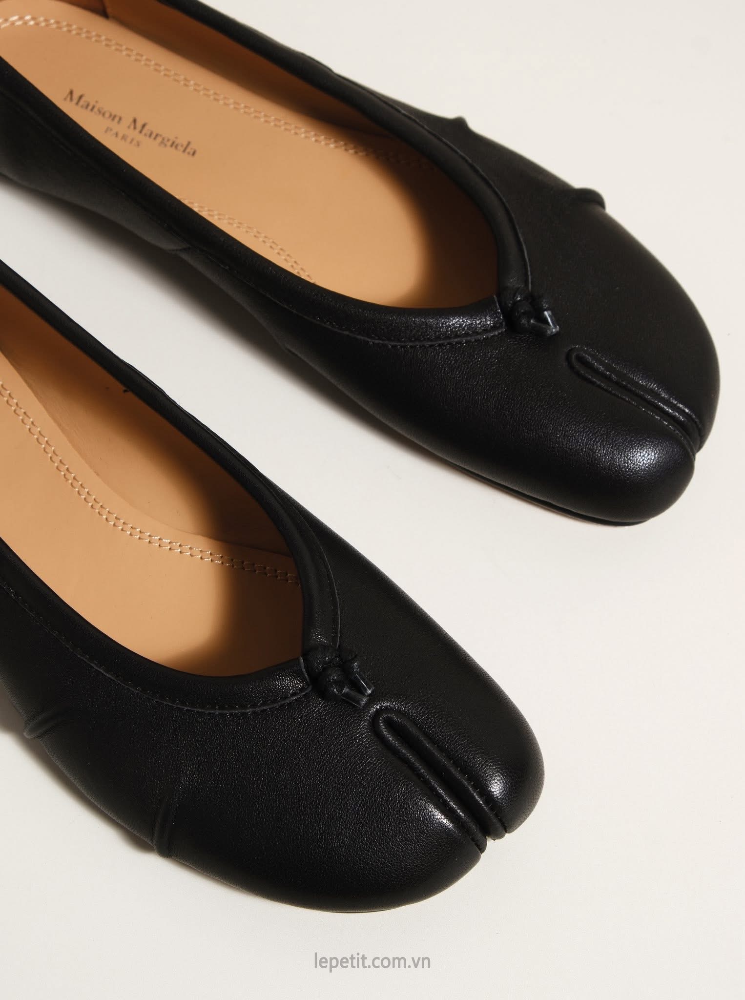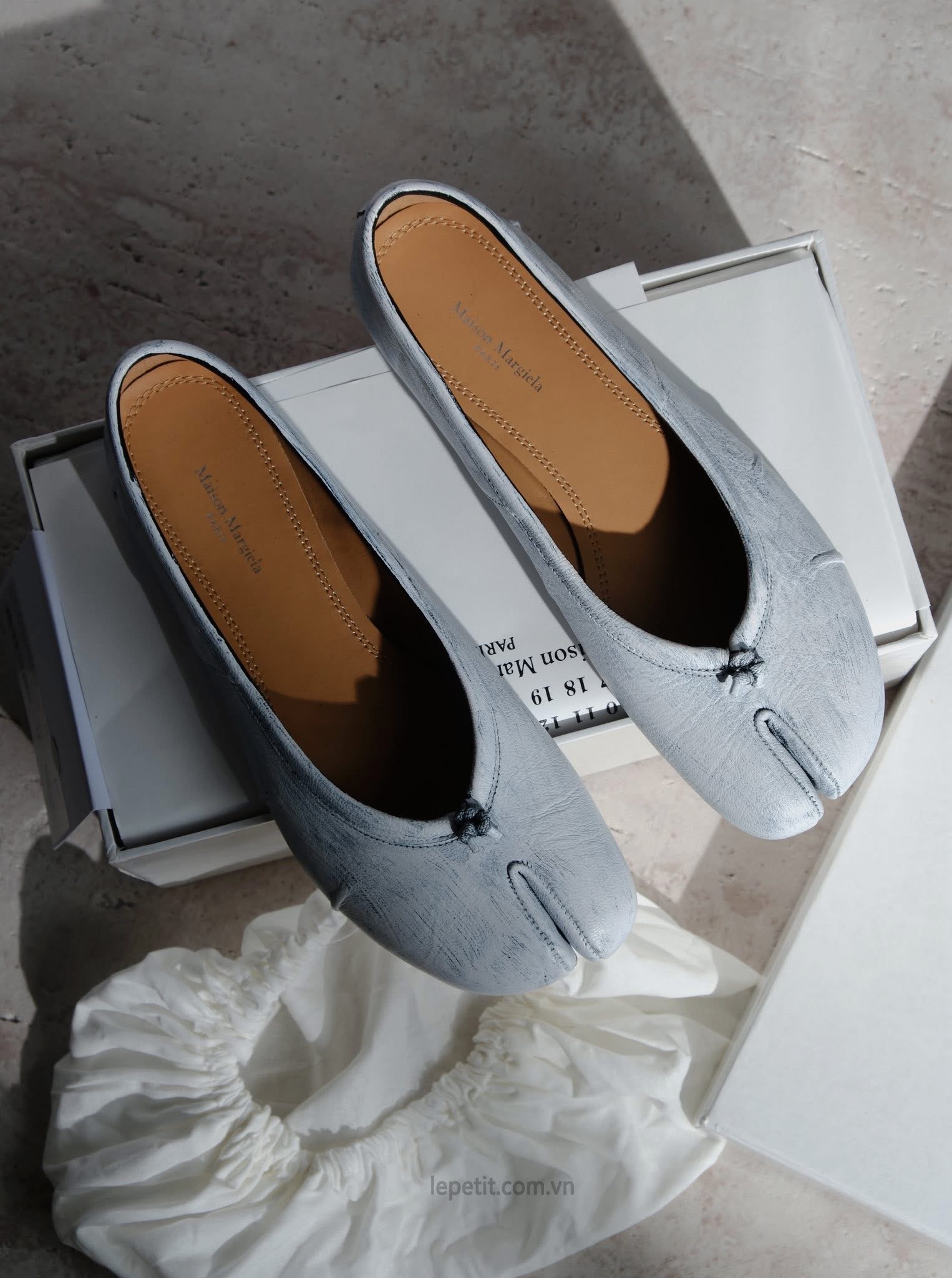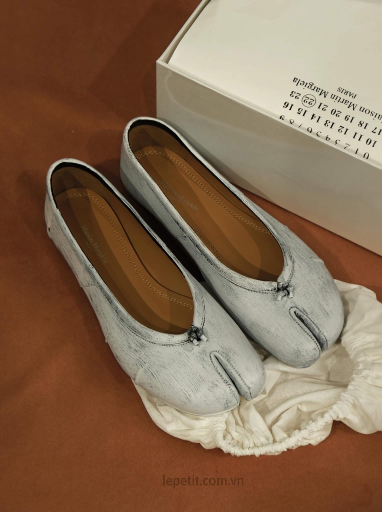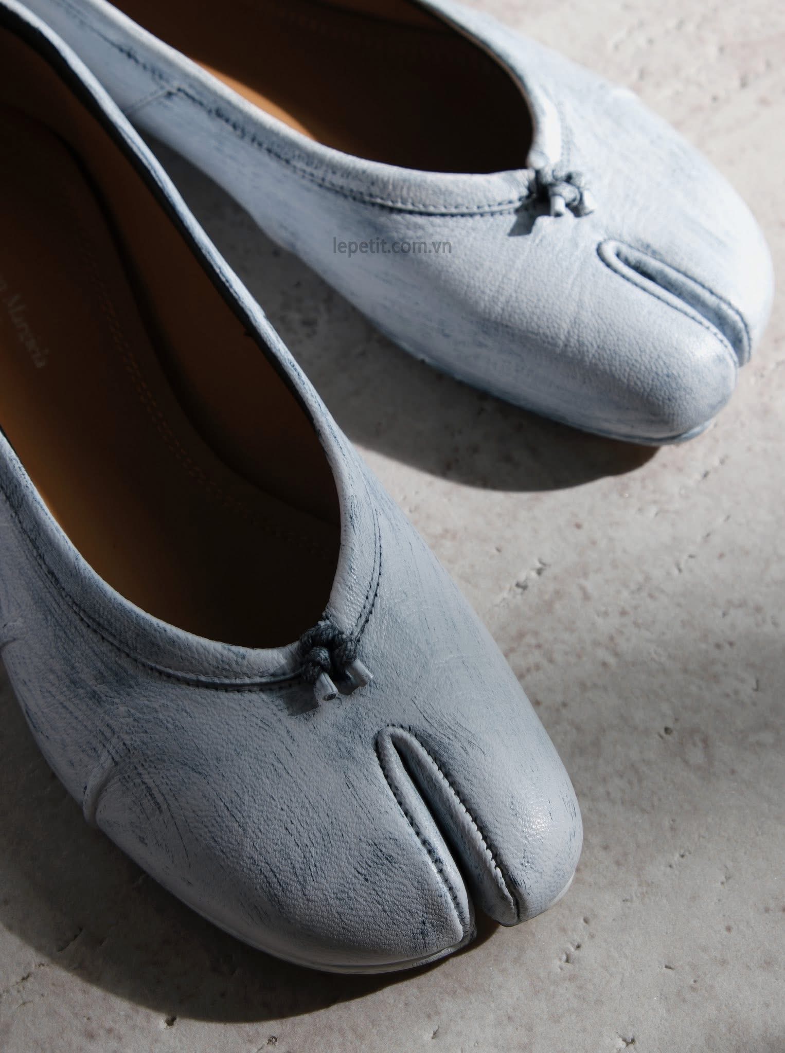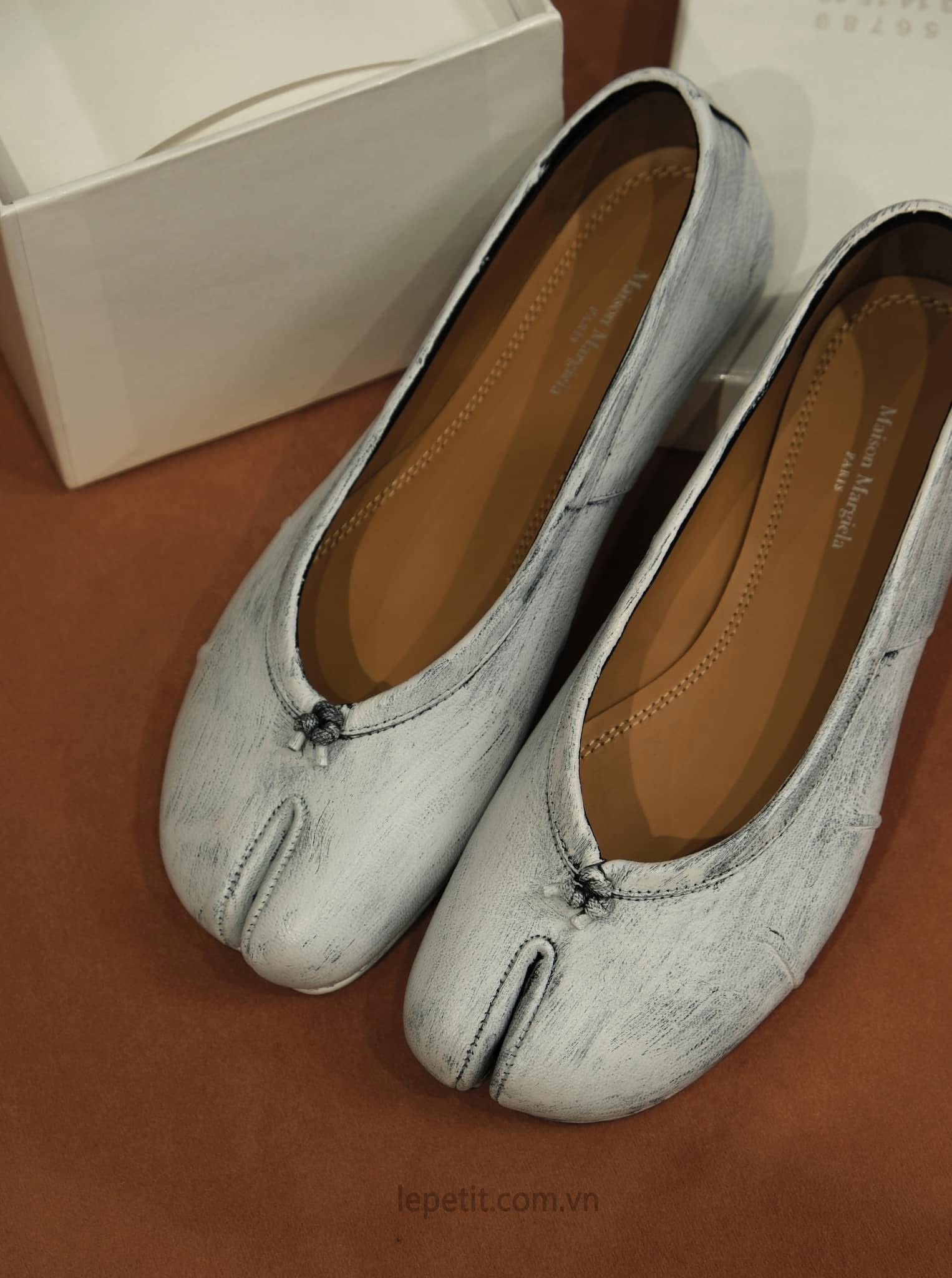 Tabi Ballerina Flats là kiểu giày bệt xẻ mũi, thân giày và đế được làm từ da thật tạo nên sự êm ái và thoải mái khi mang thường ngày. Gót giày may 1 mũi chỉ màu trắng đặc trưng của thương hiệu.