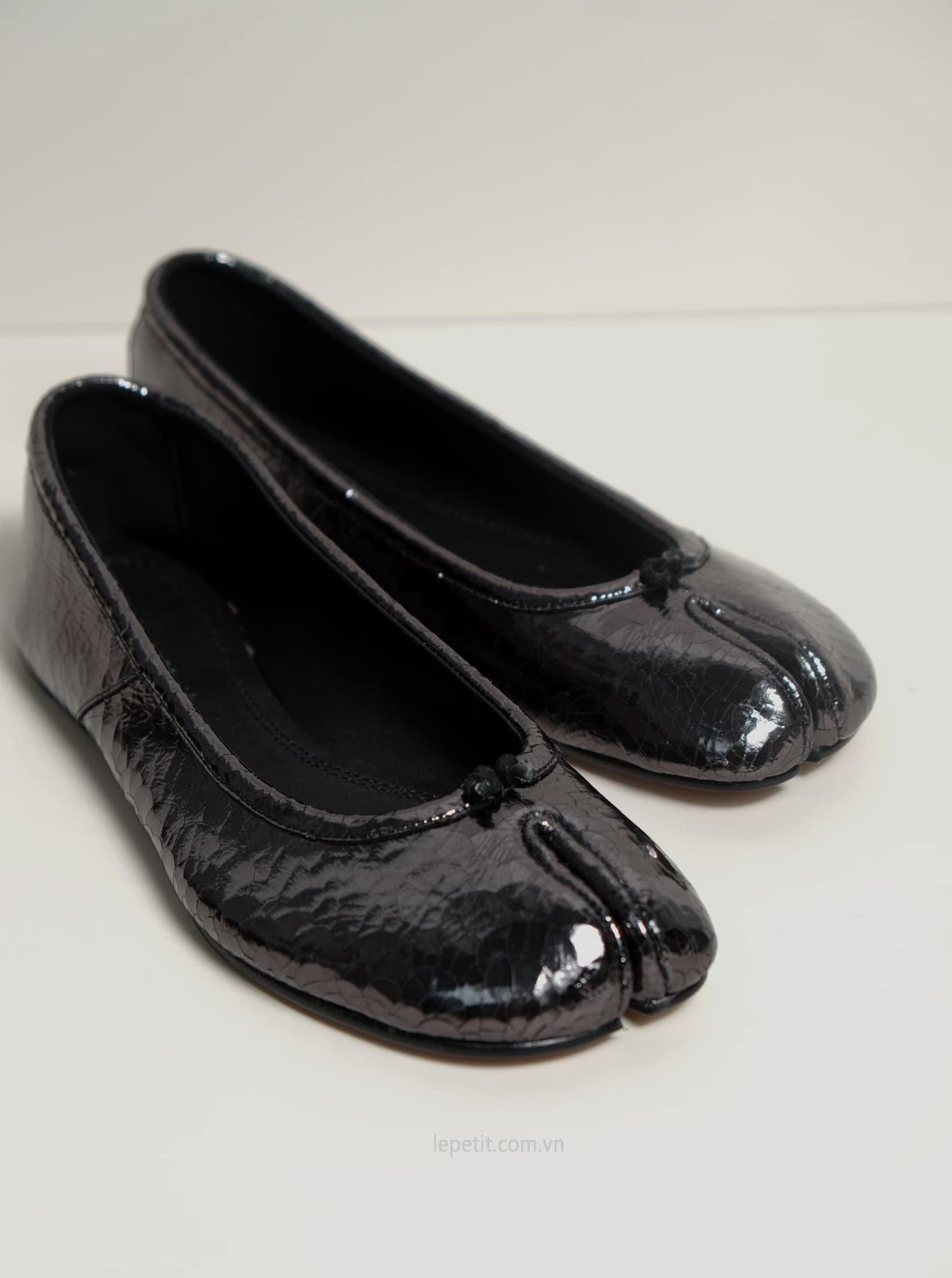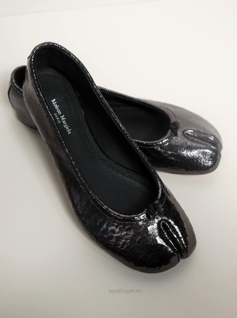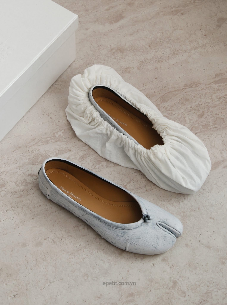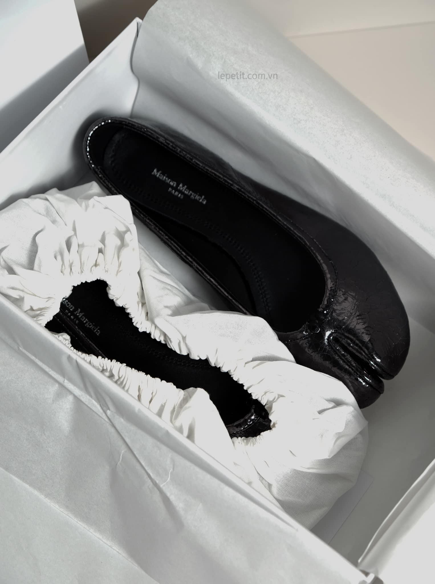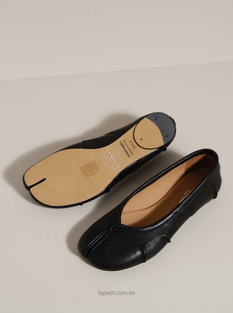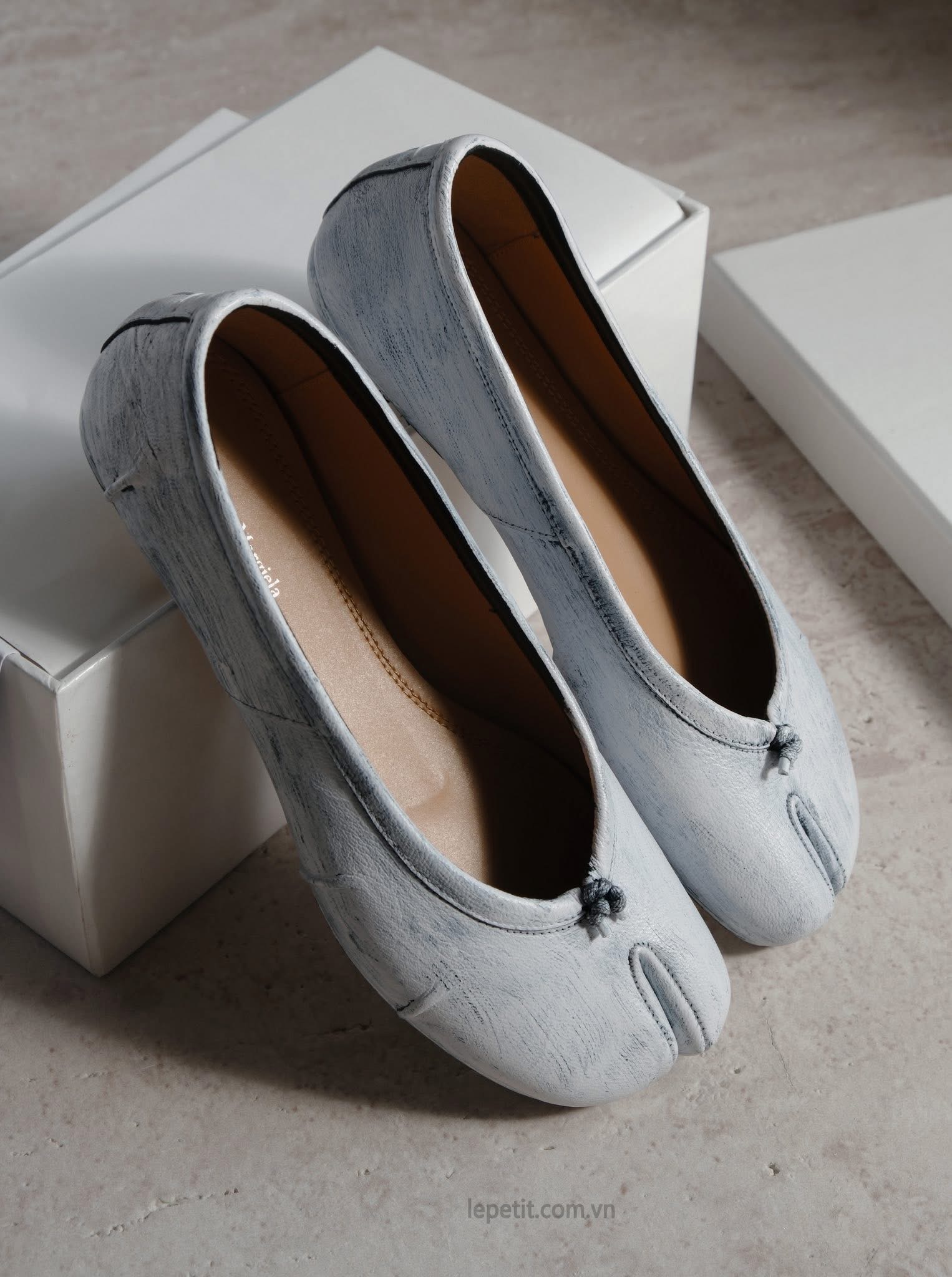 Tabi Ballerina Flats là kiểu giày bệt xẻ mũi, thân giày và đế được làm từ da thật tạo nên sự êm ái và thoải mái khi mang thường ngày. Gót giày may 1 mũi chỉ màu trắng đặc trưng của thương hiệu.