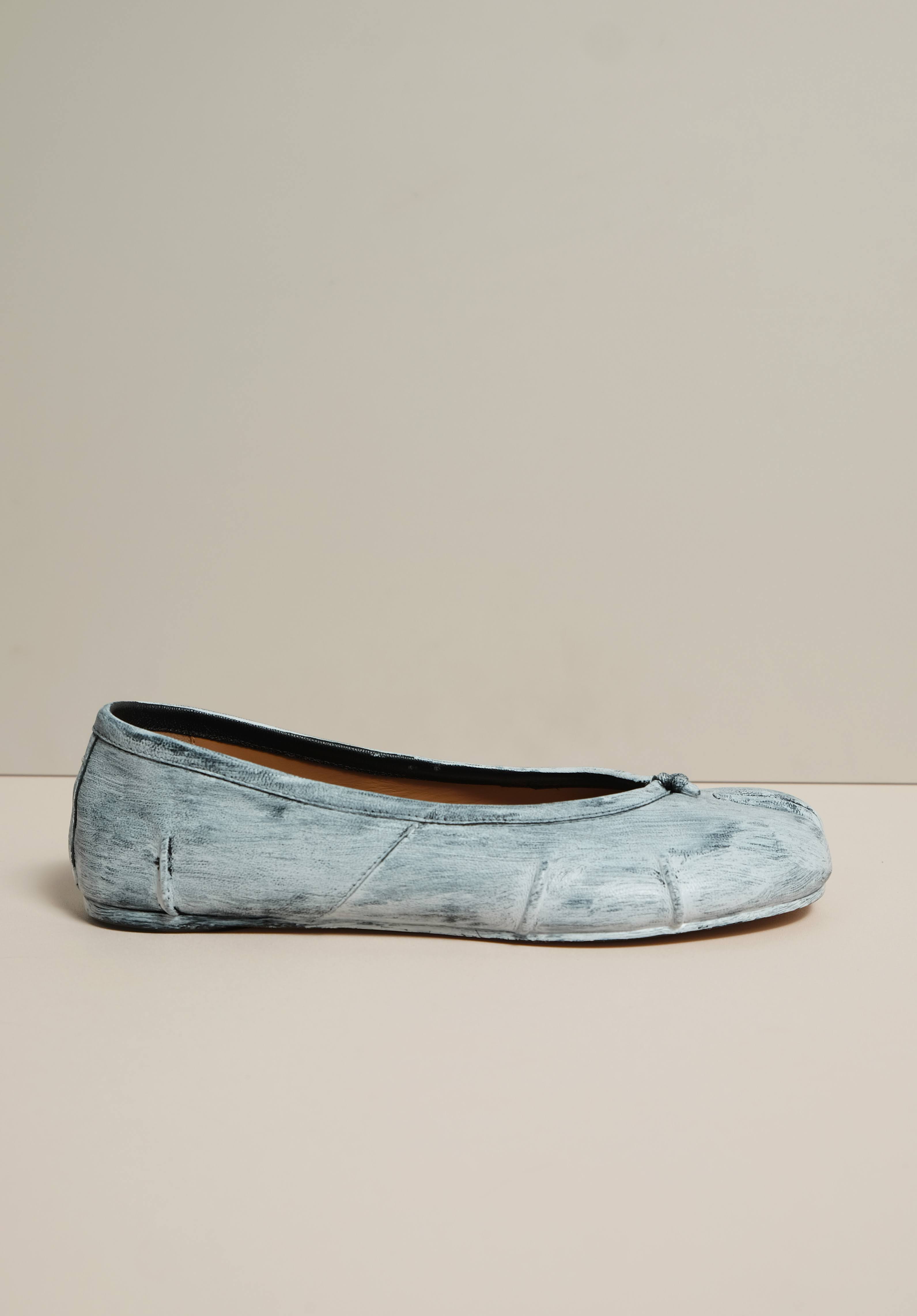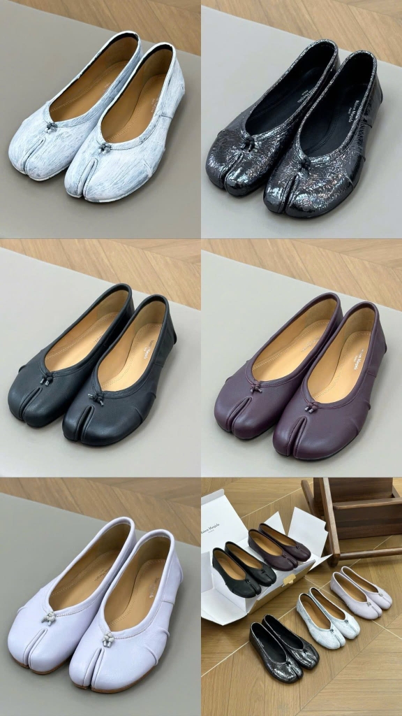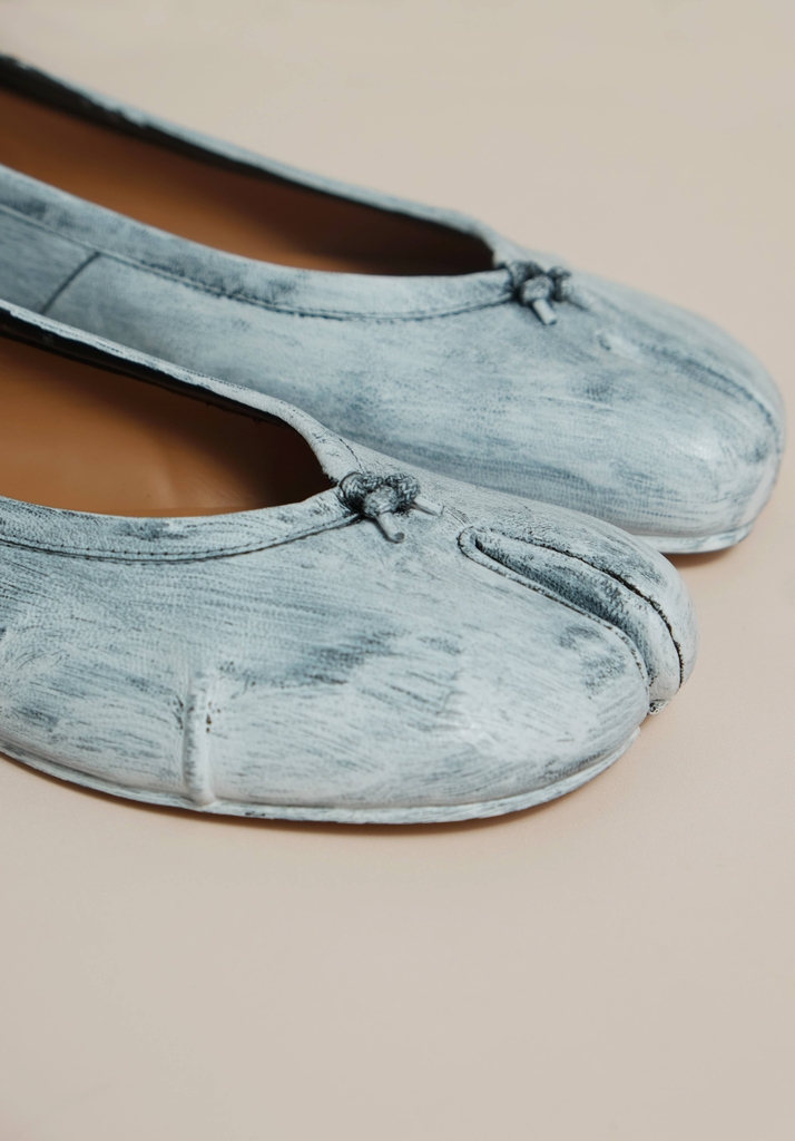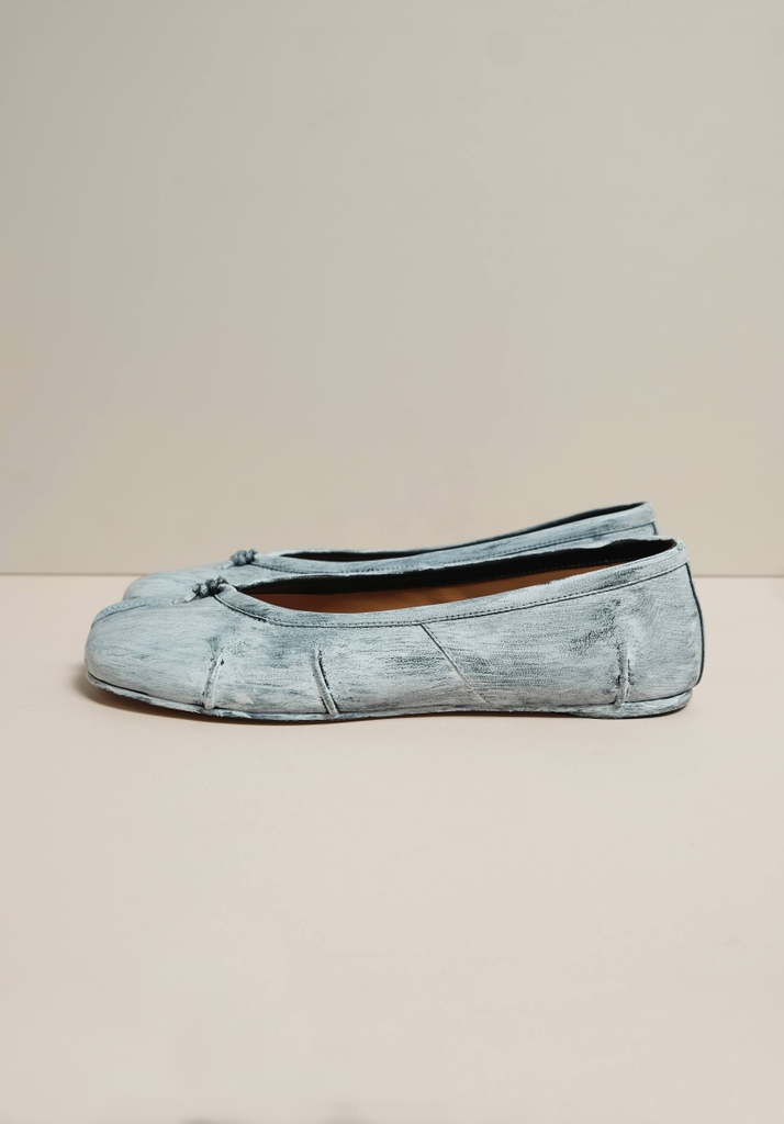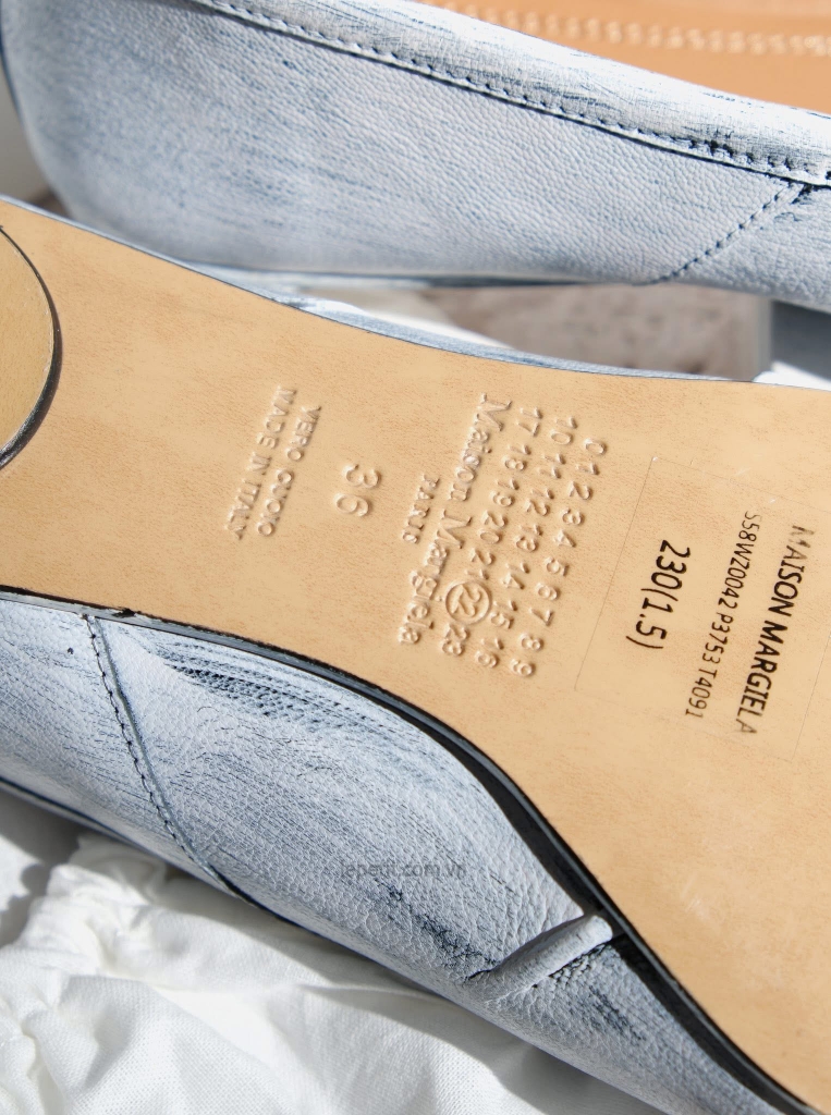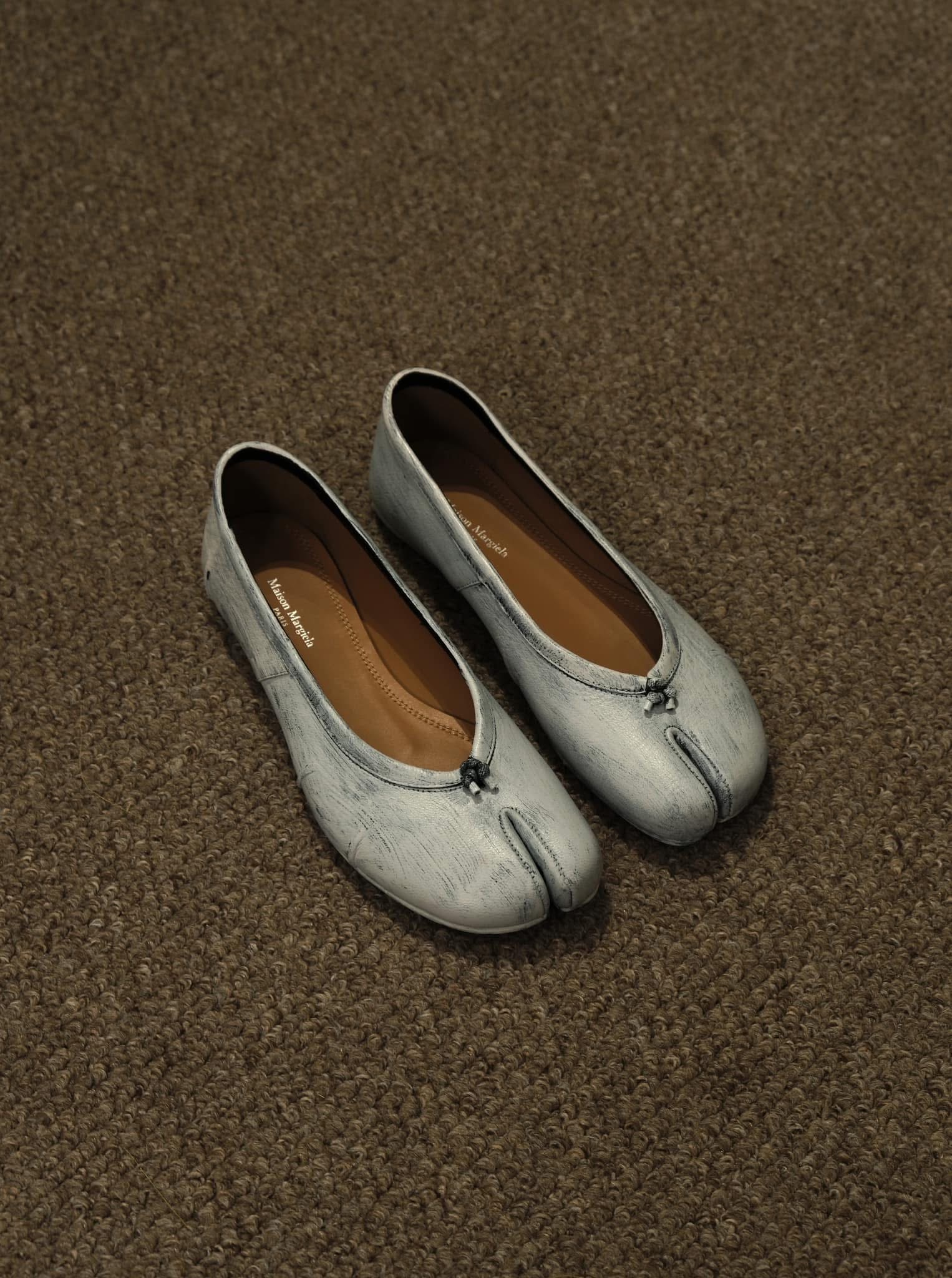 Tabi Ballerina Flats là kiểu giày bệt xẻ mũi, thân giày và đế được làm từ da thật tạo nên sự êm ái và thoải mái khi mang thường ngày. Gót giày may 1 mũi chỉ màu trắng đặc trưng của thương hiệu.