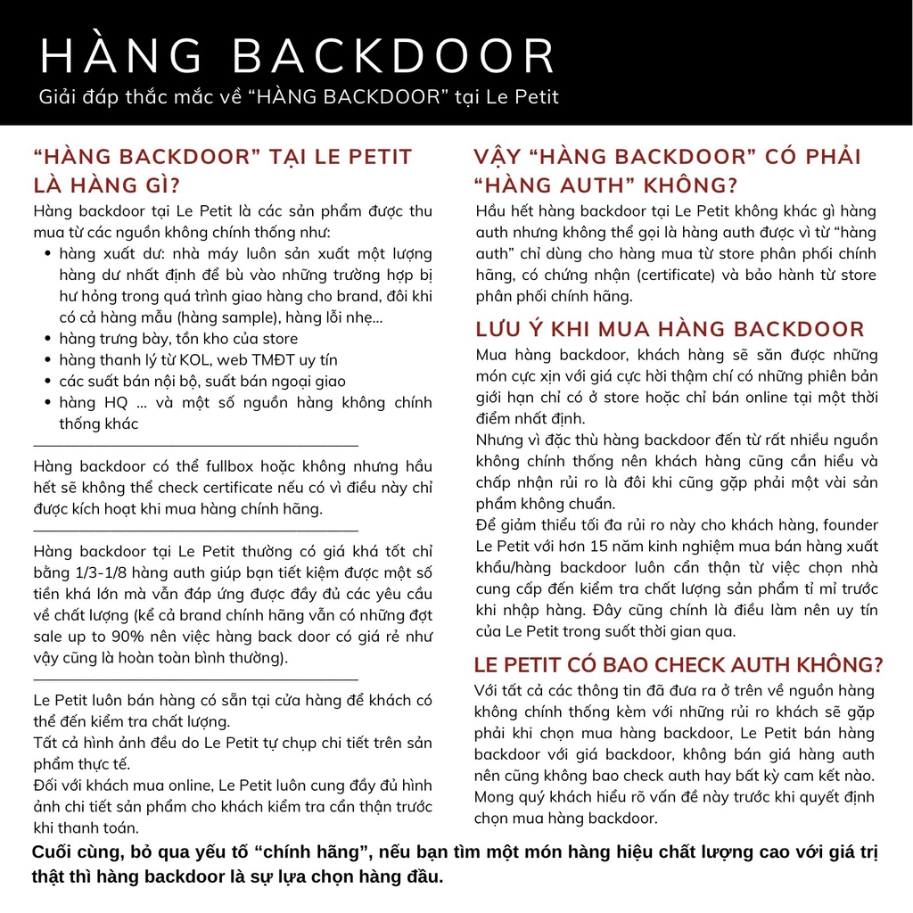 Với tất cả các thông tin đã đưa ra ở trên về nguồn hàng không chính thống kèm với những rủi ro khách sẽ gặp phải khi chọn mua hàng backdoor, Le Petit bán hàng backdoor với giá backdoor, không bán giá hàng auth nên cũng không bao check auth hay bất kỳ cam kết nào.