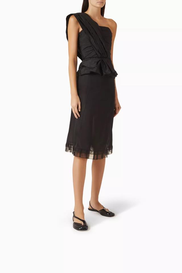 - Quai hậu phía sau thêu mũi chỉ màu trắng đặc trưng của thương hiệu