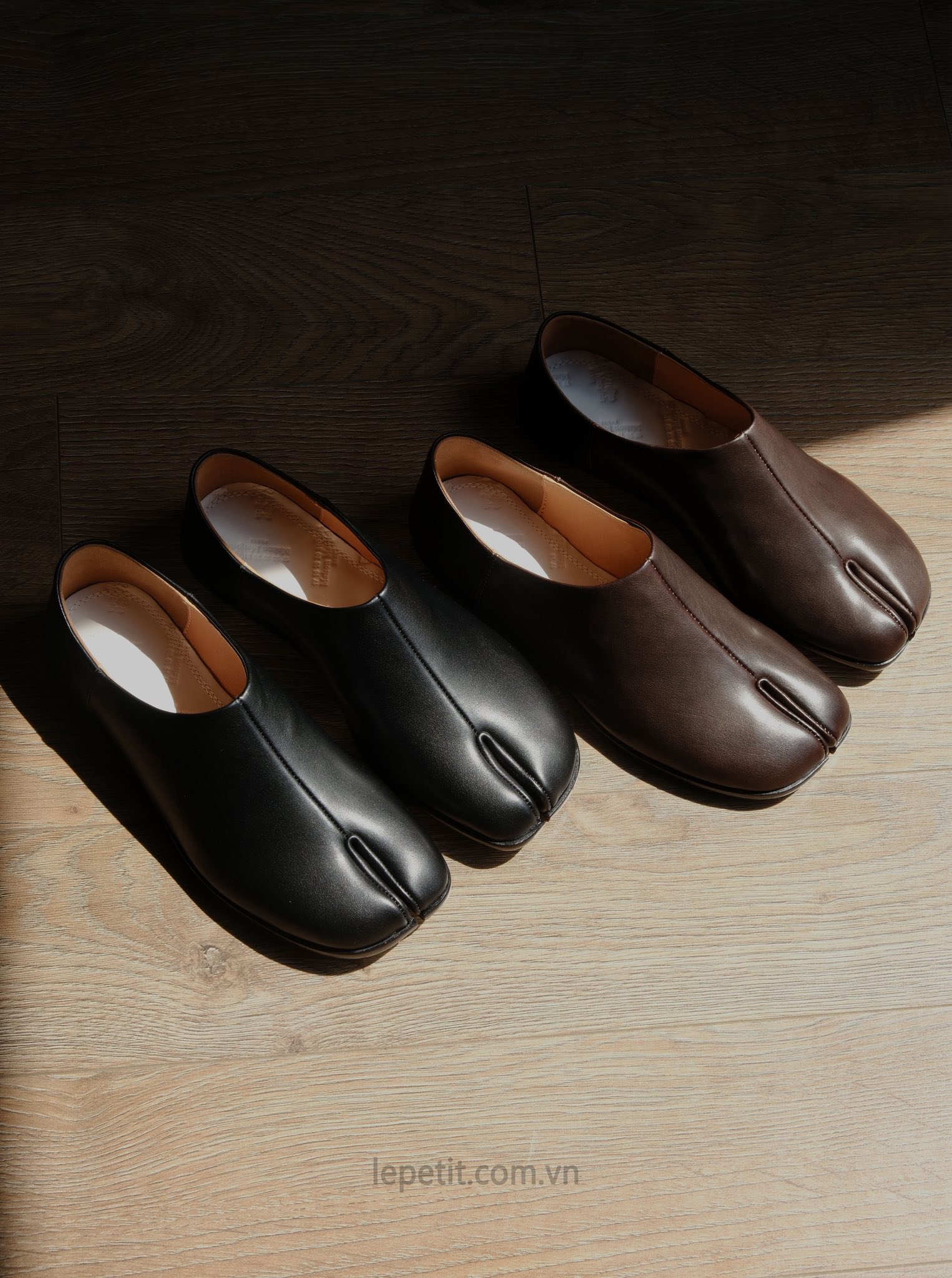 Tabi Slip-on là đôi giày bệt kiểu babouche xỏ chân, thiết kế cực kỳ tối giản với gam màu đen trơn. Giày sở hữu chất liệu da bê mềm mại, êm chân phù hợp mang hằng ngày. Gót sau may 1 mũi chỉ màu trắng đặc trưng của thương hiệu.