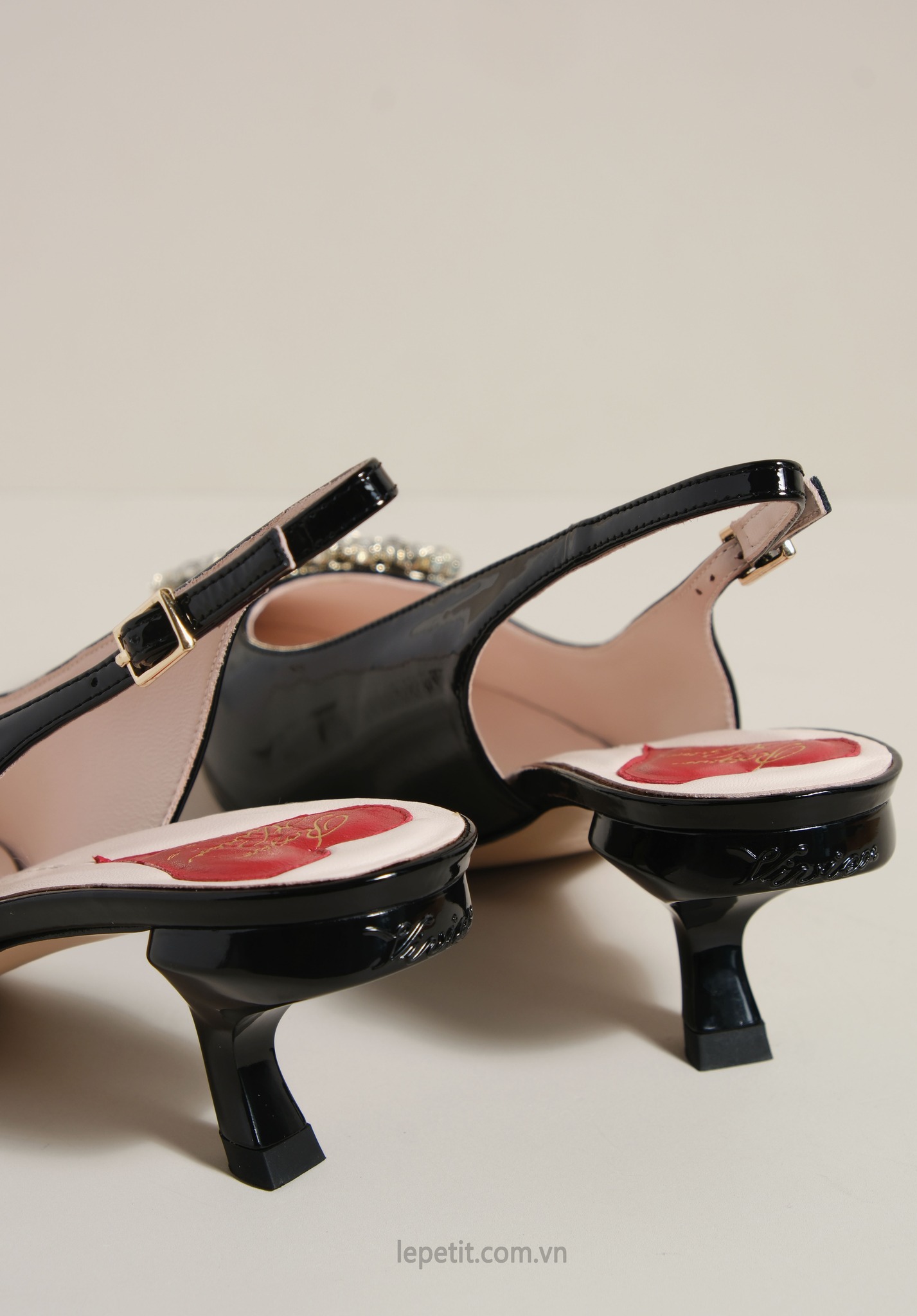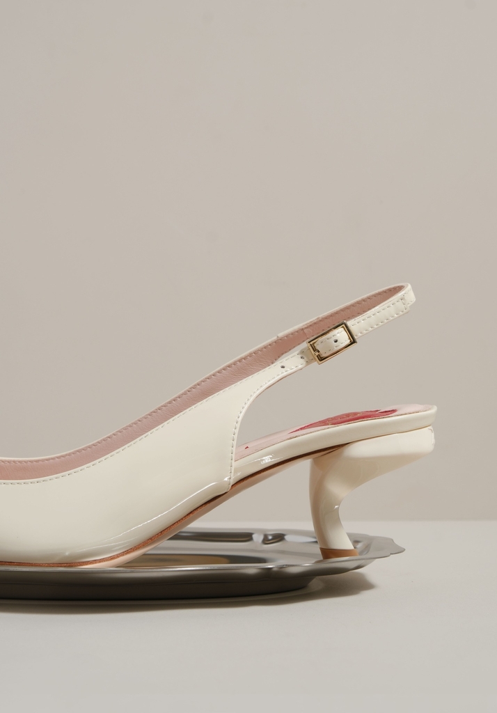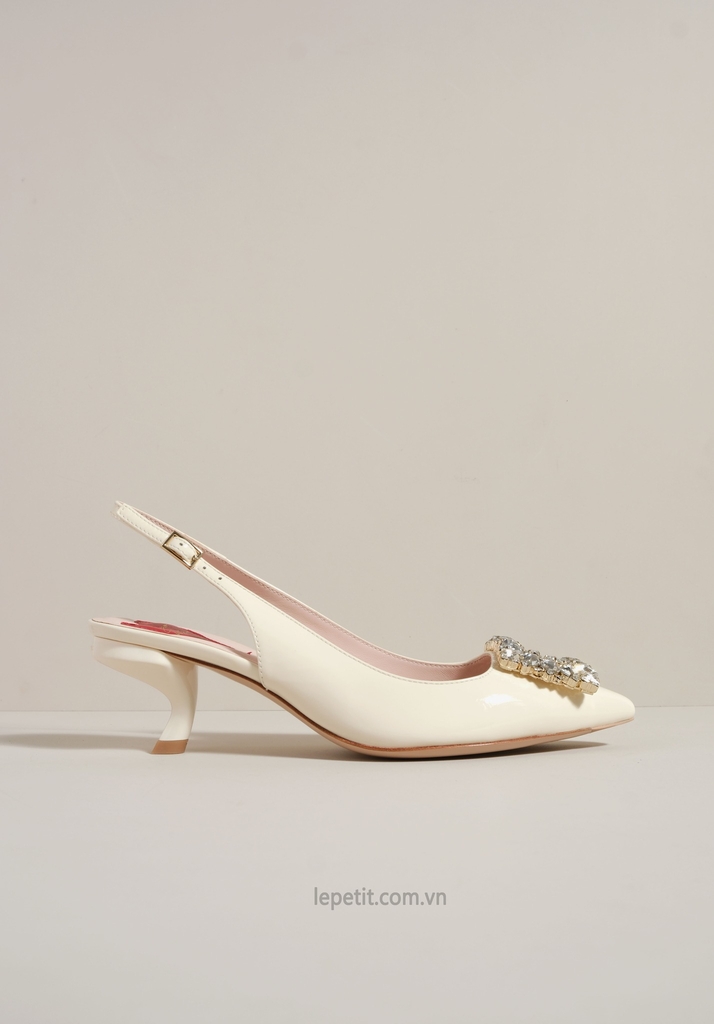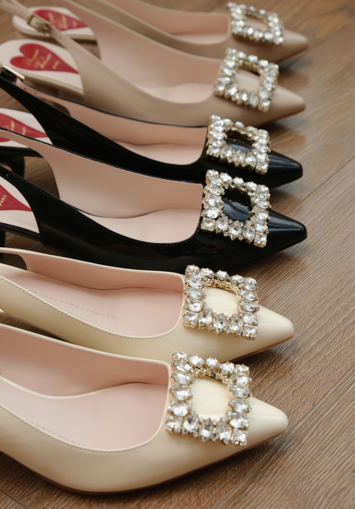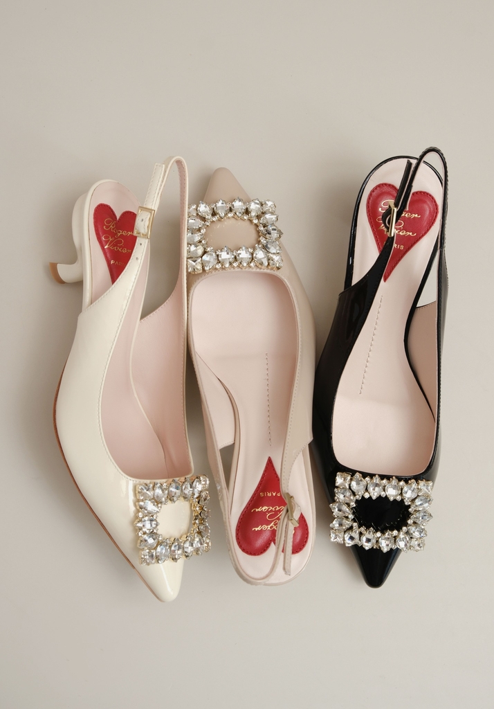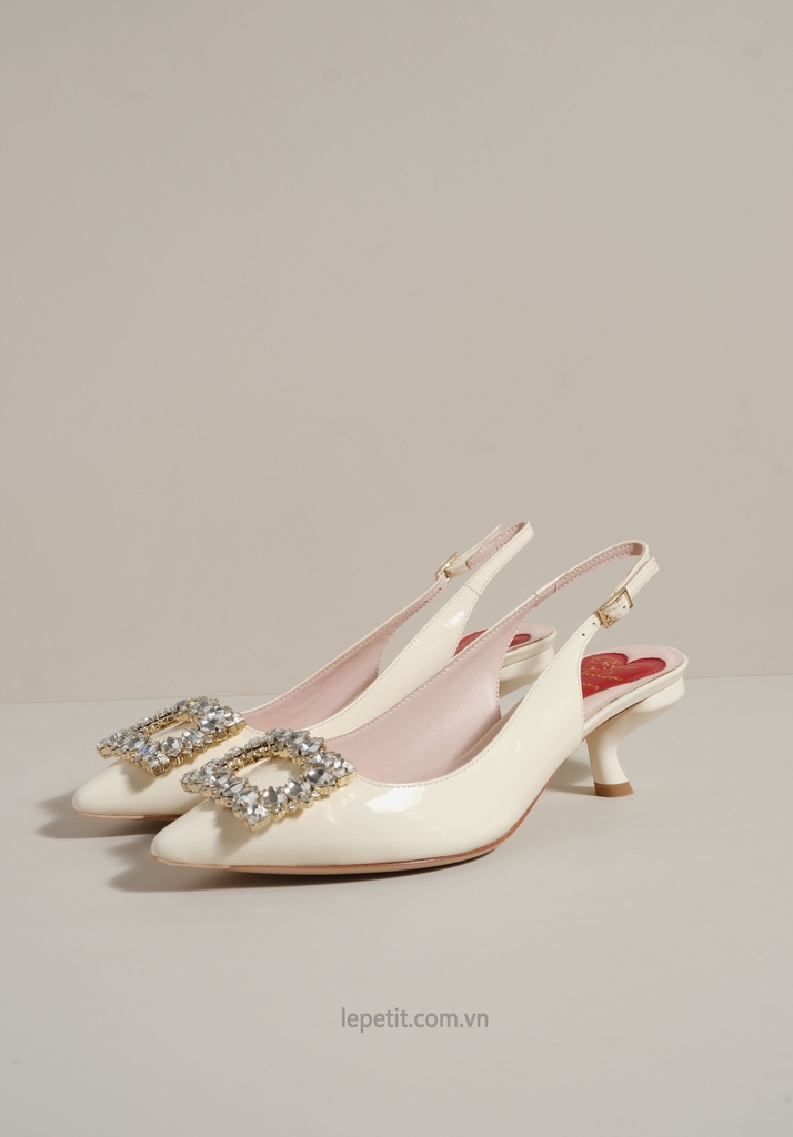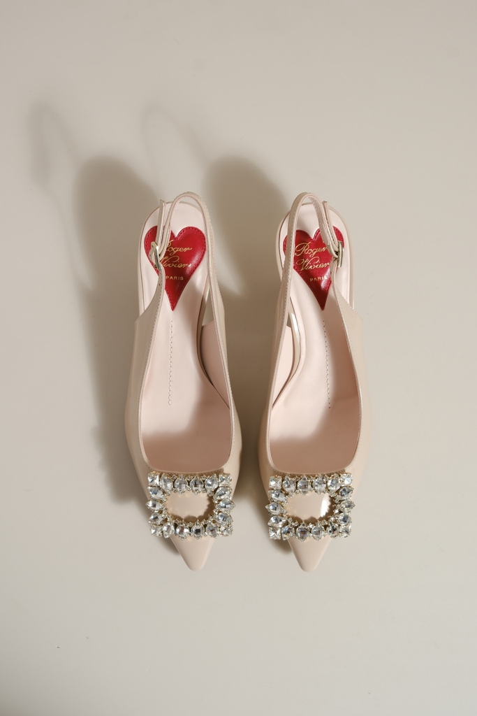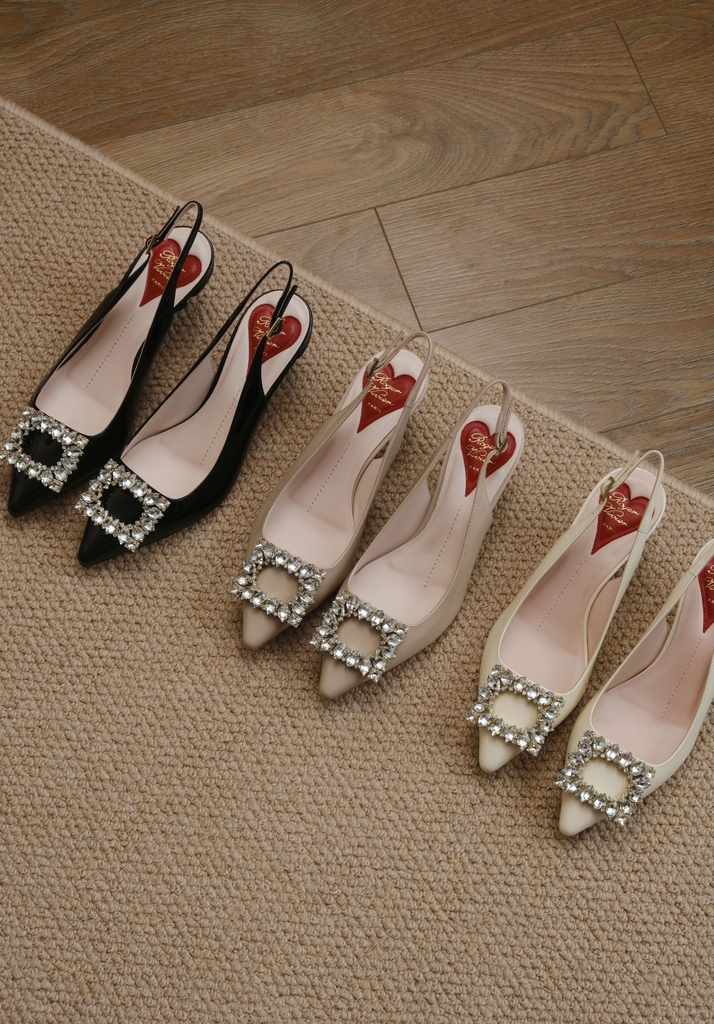Phiên bản slingback được hoàn thiện trên nền da bóng sang trọng, điểm xuyết khóa buckle đính pha lê lấp lánh. Lót giày hình trái tim đỏ vừa là một chi tiết nhận diện kín đáo của RV vừa là điểm nhấn ngọt ngào, sẵn sàng đồng hành cùng bạn suốt ngày dài với vẻ đẹp thanh lịch đầy nữ tính.