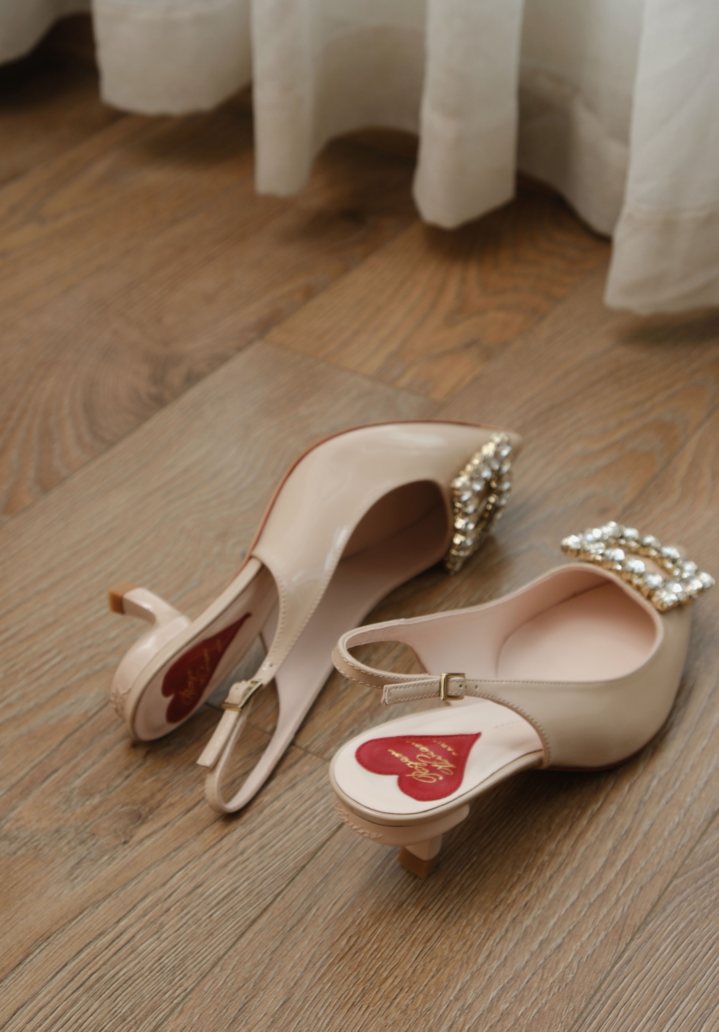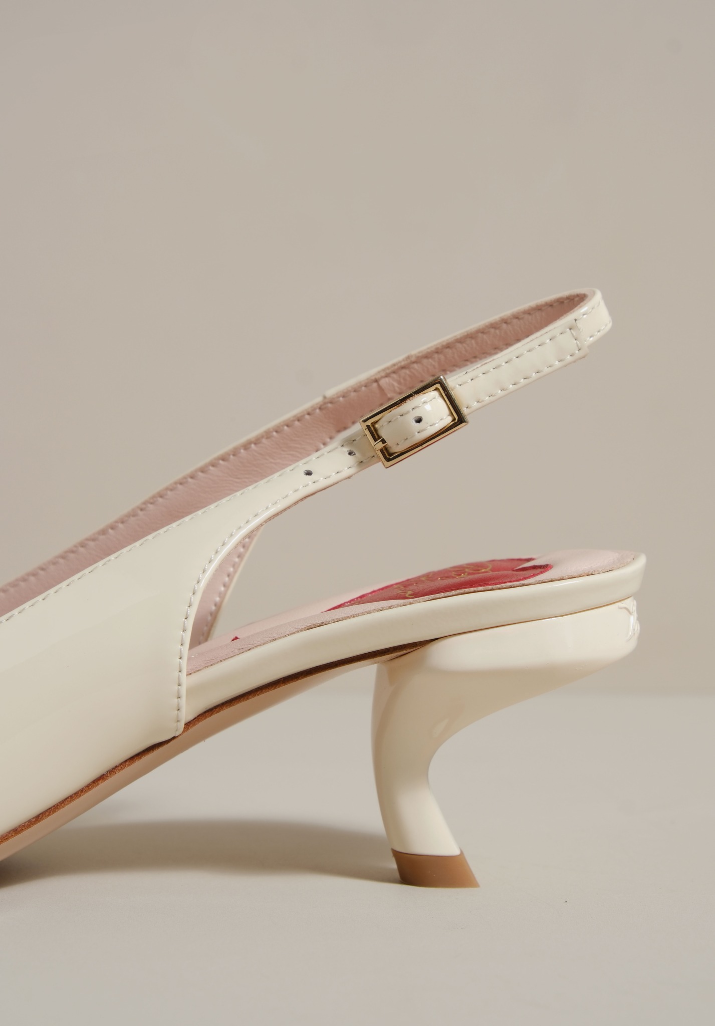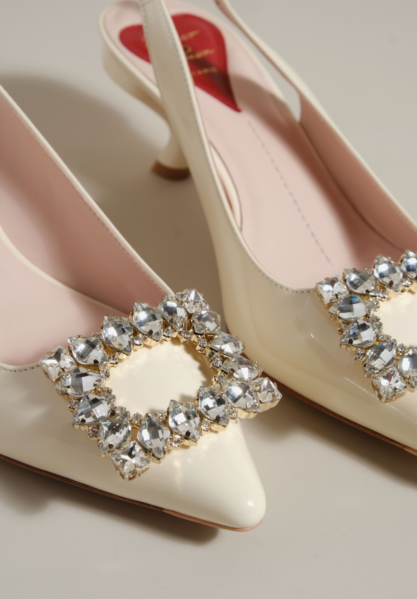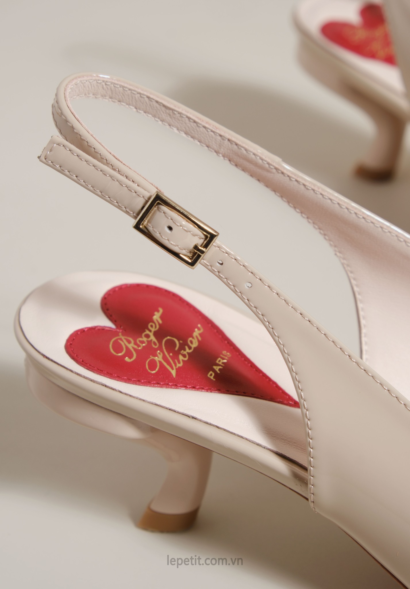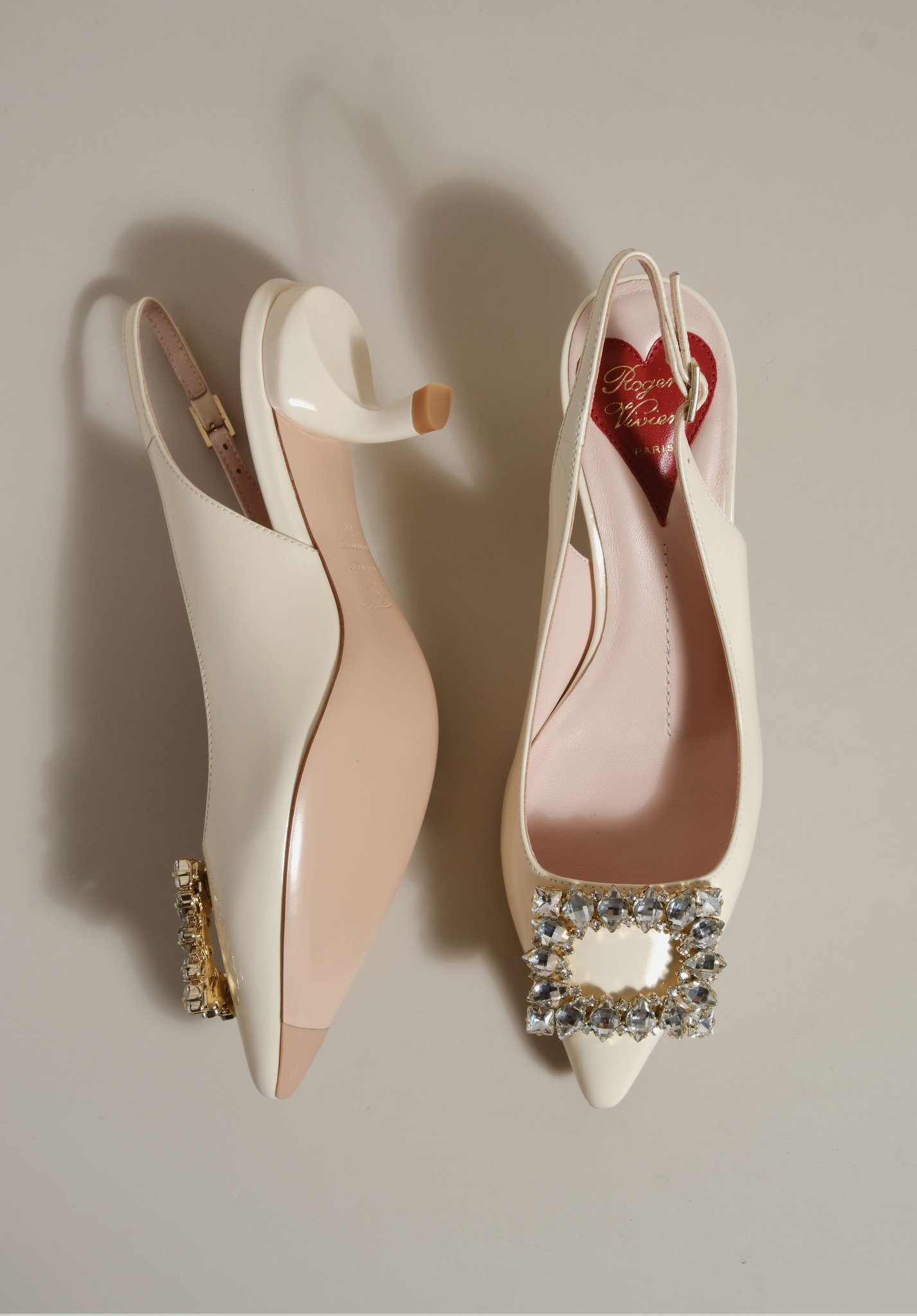 Phiên bản slingback được hoàn thiện trên nền da bóng sang trọng, điểm xuyết khóa buckle đính pha lê lấp lánh. Lót giày hình trái tim đỏ vừa là một chi tiết nhận diện kín đáo của RV vừa là điểm nhấn ngọt ngào, sẵn sàng đồng hành cùng bạn suốt ngày dài với vẻ đẹp thanh lịch đầy nữ tính.