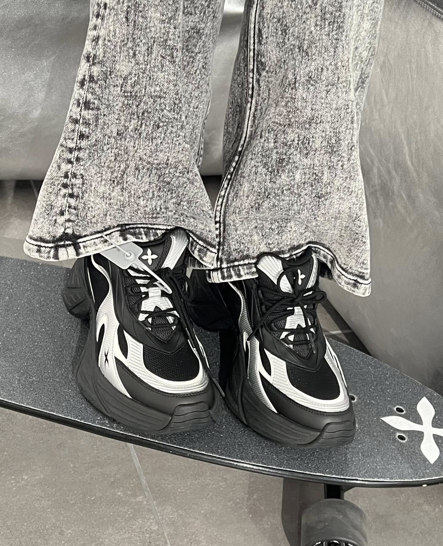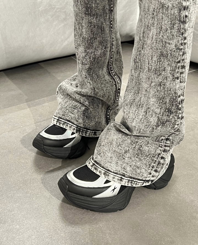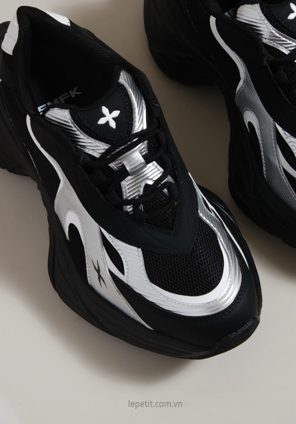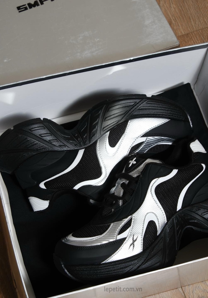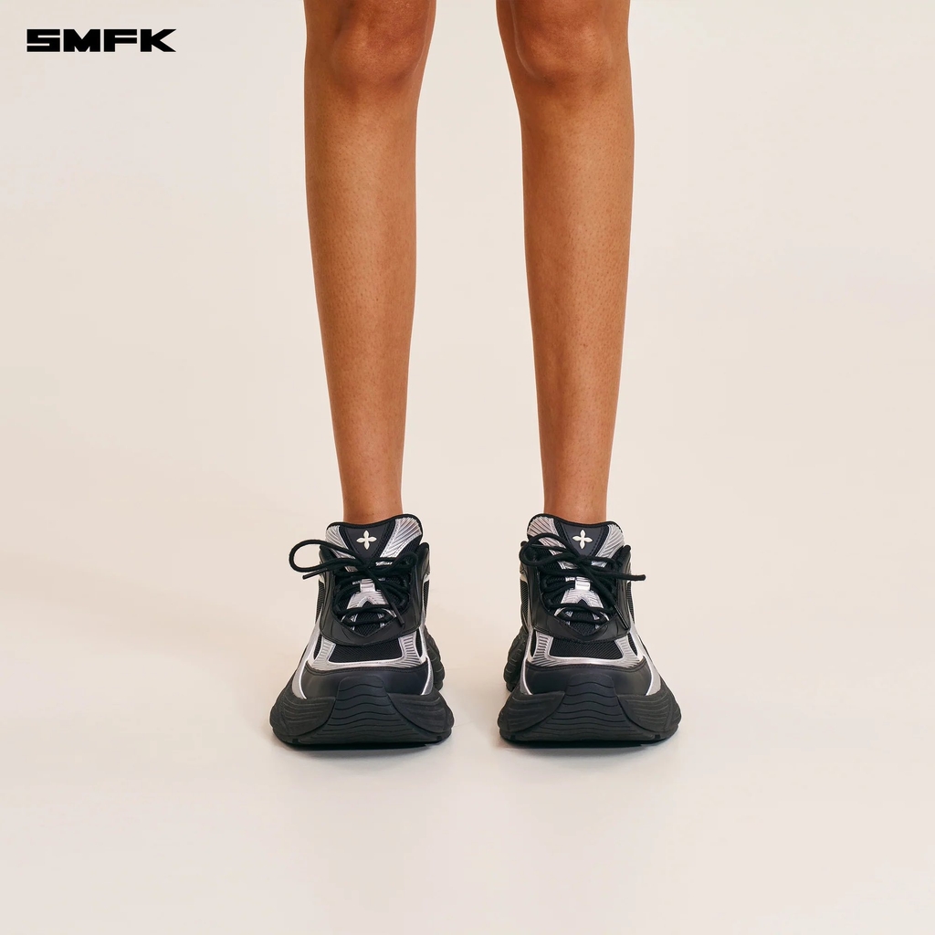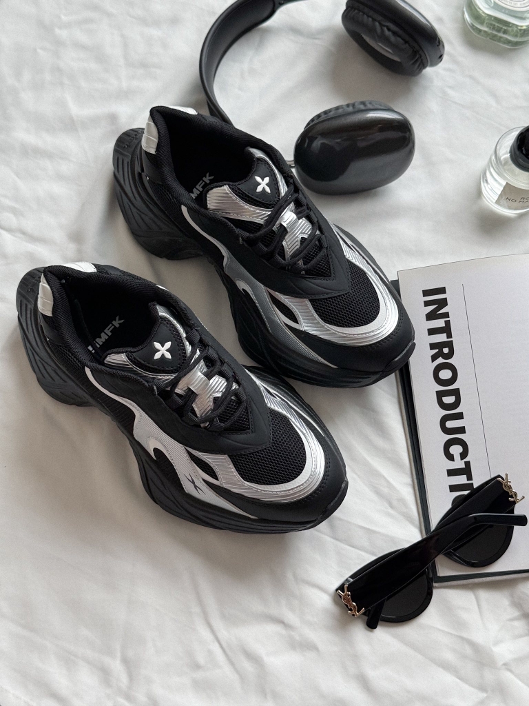 Future Mirage Speed Sports Shoes là một trong những sáng tạo mới nhất của SMFK trong năm 2025, lấy cảm hứng từ những gợn sóng trên mặt nước. Thiết kế jogging dáng dày hiện đại kết hợp mảng màu đen - bạc sắc nét tạo nên hiệu ứng chuyển động đầy năng lượng, vừa mạnh mẽ vừa mang phong cách tương lai. Kết cấu mesh thoáng nhẹ, các đường cong bạc nổi bật và những điểm nhấn hình ngôi sao mang đậm DNA của thương hiệu.