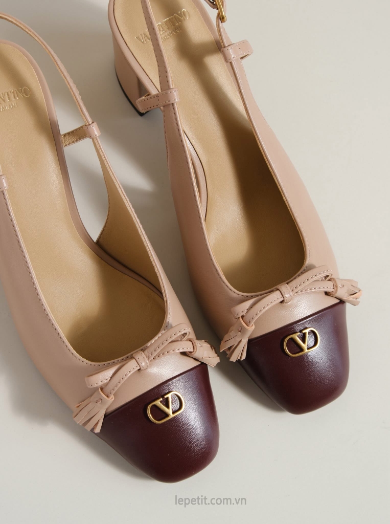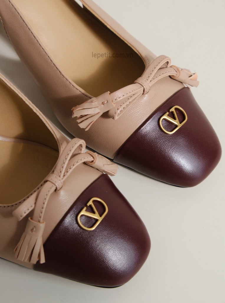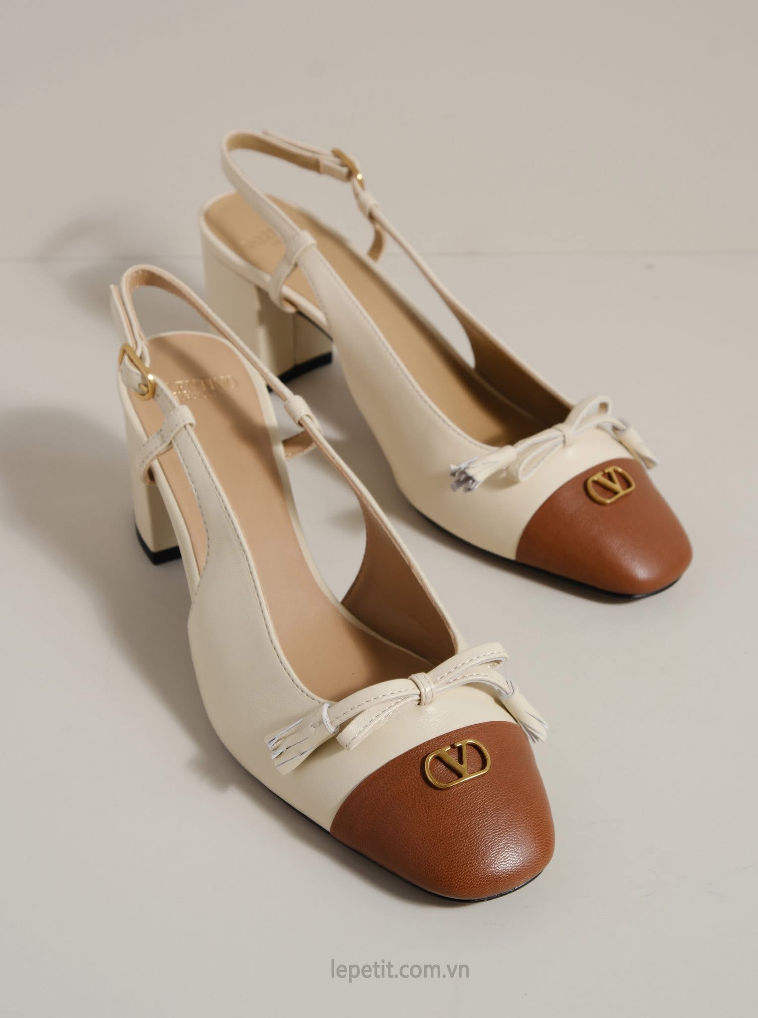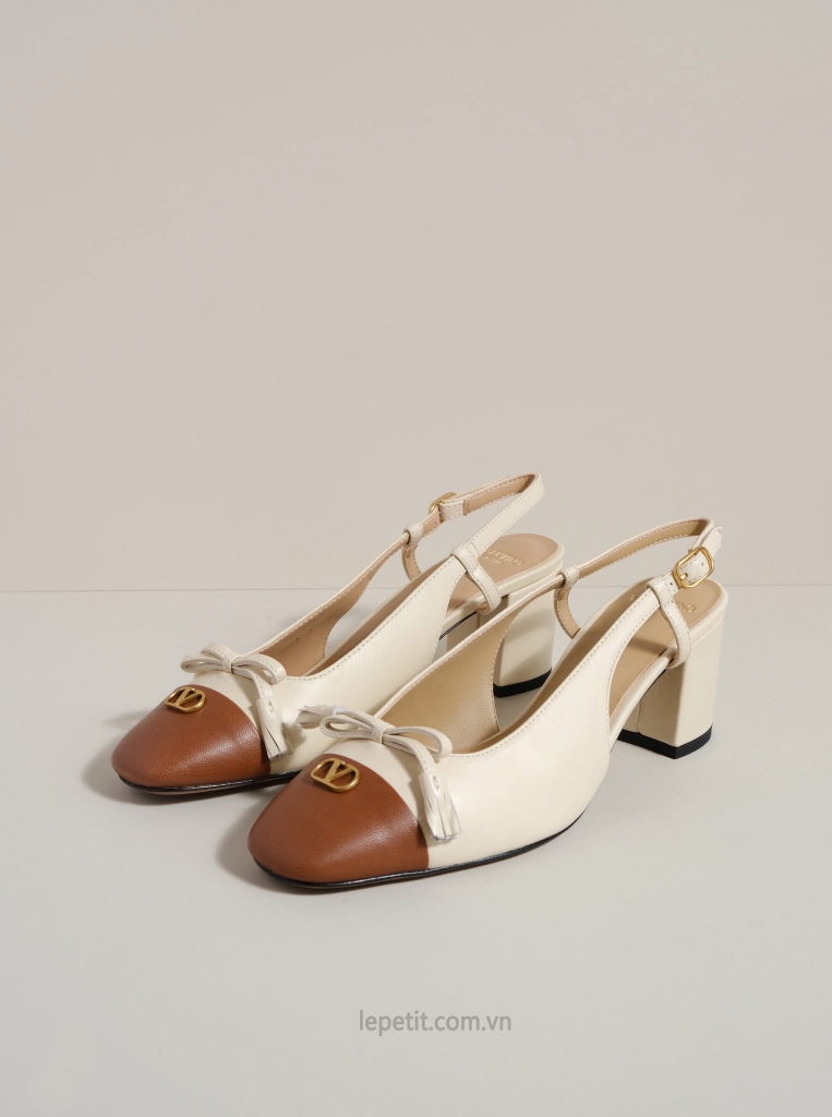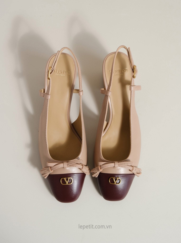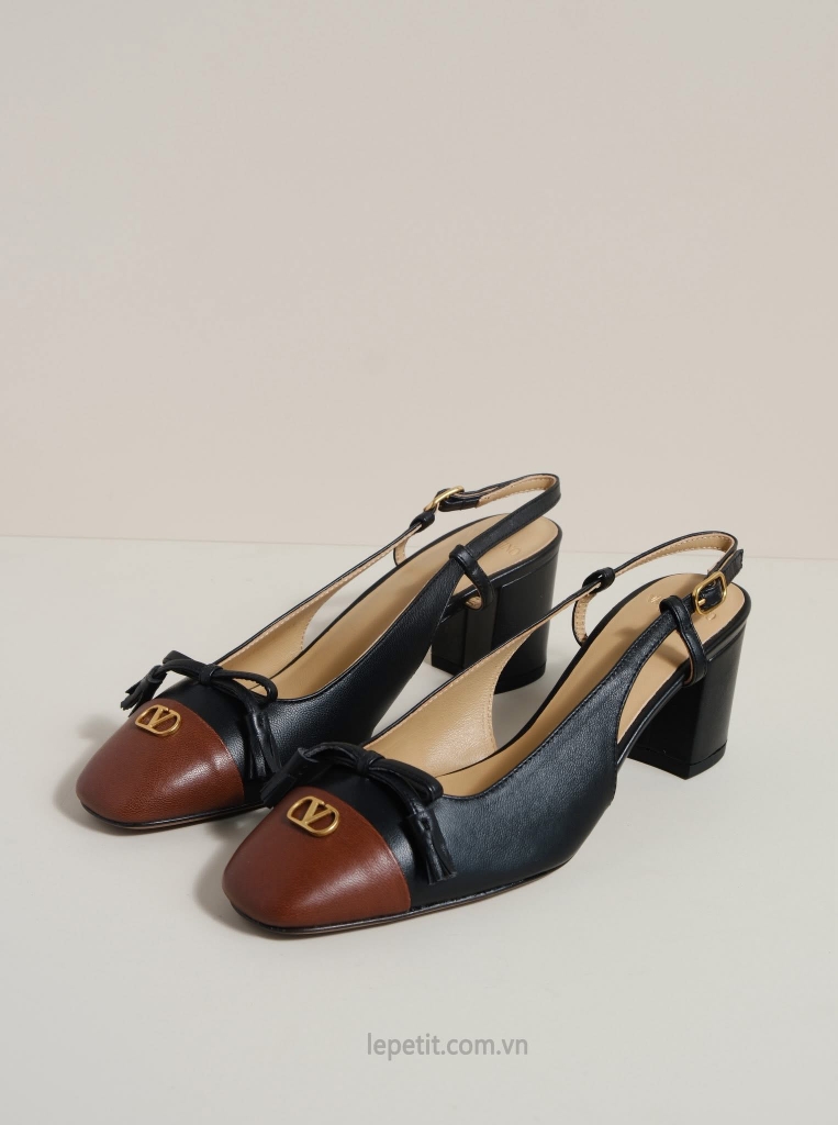 VLTN mang hơi thở cổ điển vào đôi slingback với dáng mũi vuông thanh lịch và gót trụ 6cm vững vàng. Phần da phối màu tinh tế cùng điểm nhấn VLogo kim loại và nơ tua rua nhỏ xinh tạo nên nét duyên dáng, nhẹ nhàng mà vẫn sang trọng.