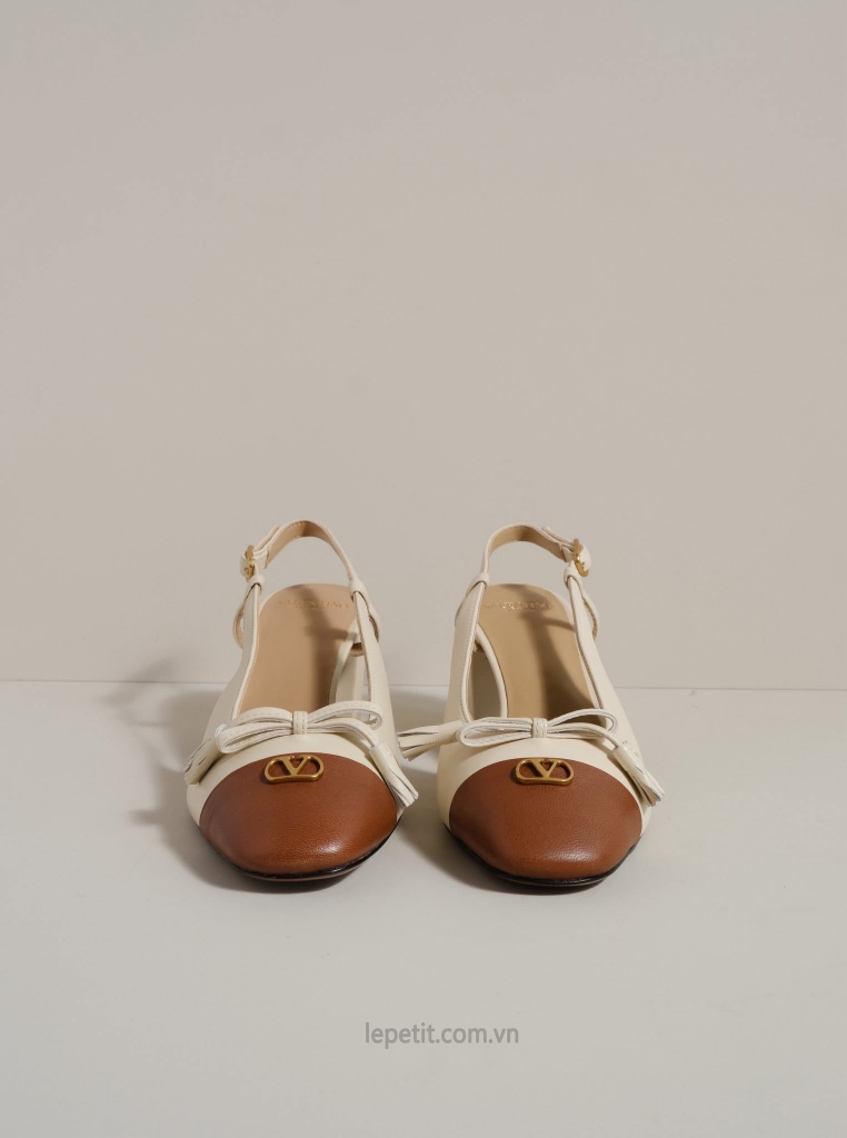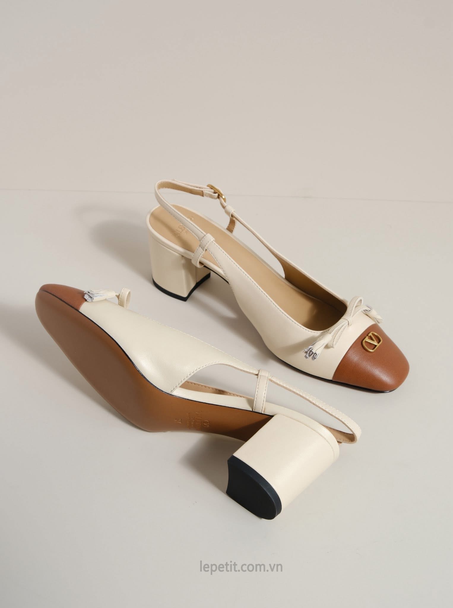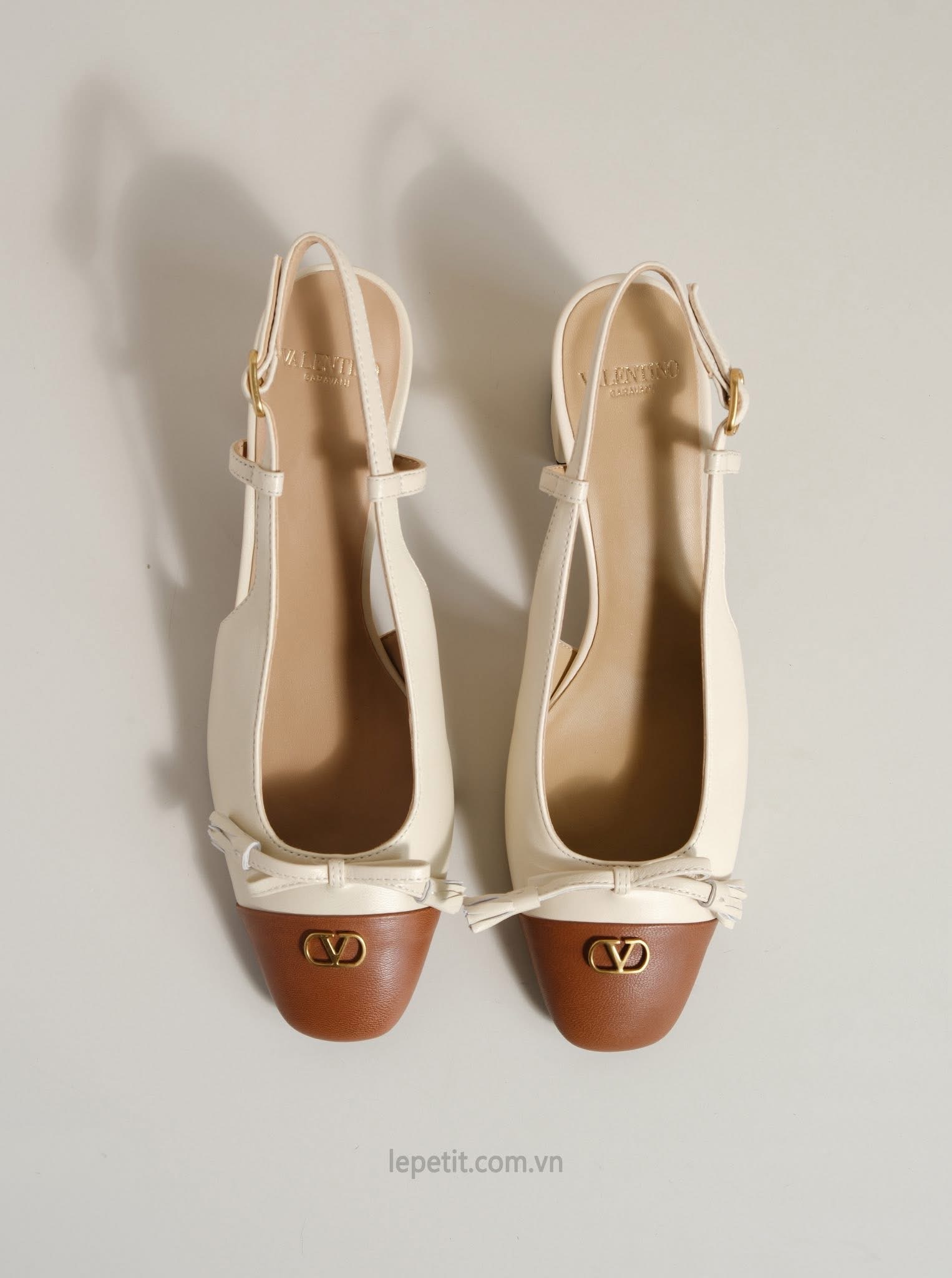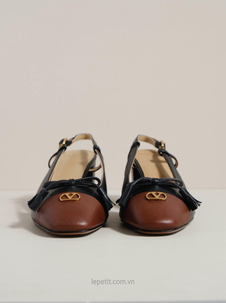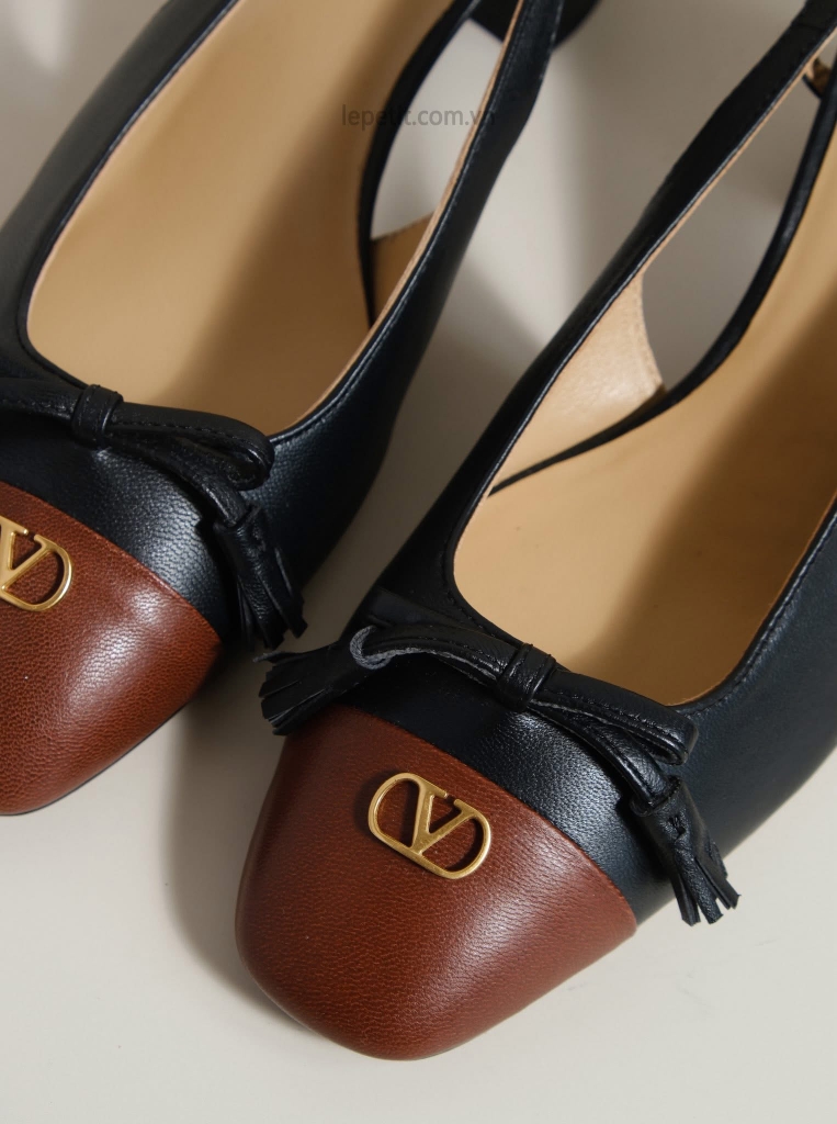 VLTN mang hơi thở cổ điển vào đôi slingback với dáng mũi vuông thanh lịch và gót trụ 6cm vững vàng. Phần da phối màu tinh tế cùng điểm nhấn VLogo kim loại và nơ tua rua nhỏ xinh tạo nên nét duyên dáng, nhẹ nhàng mà vẫn sang trọng.
