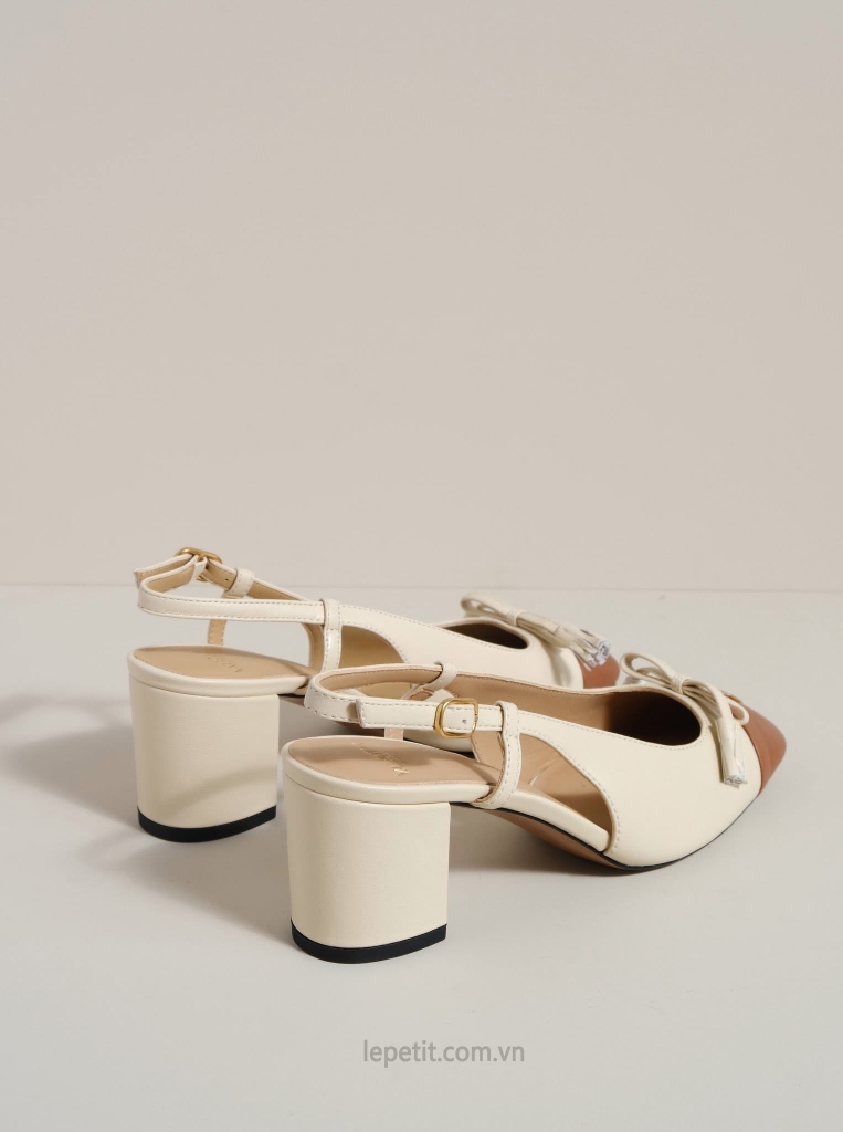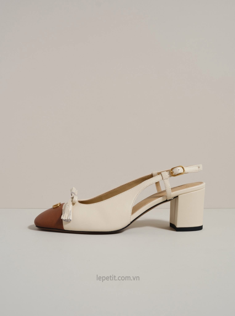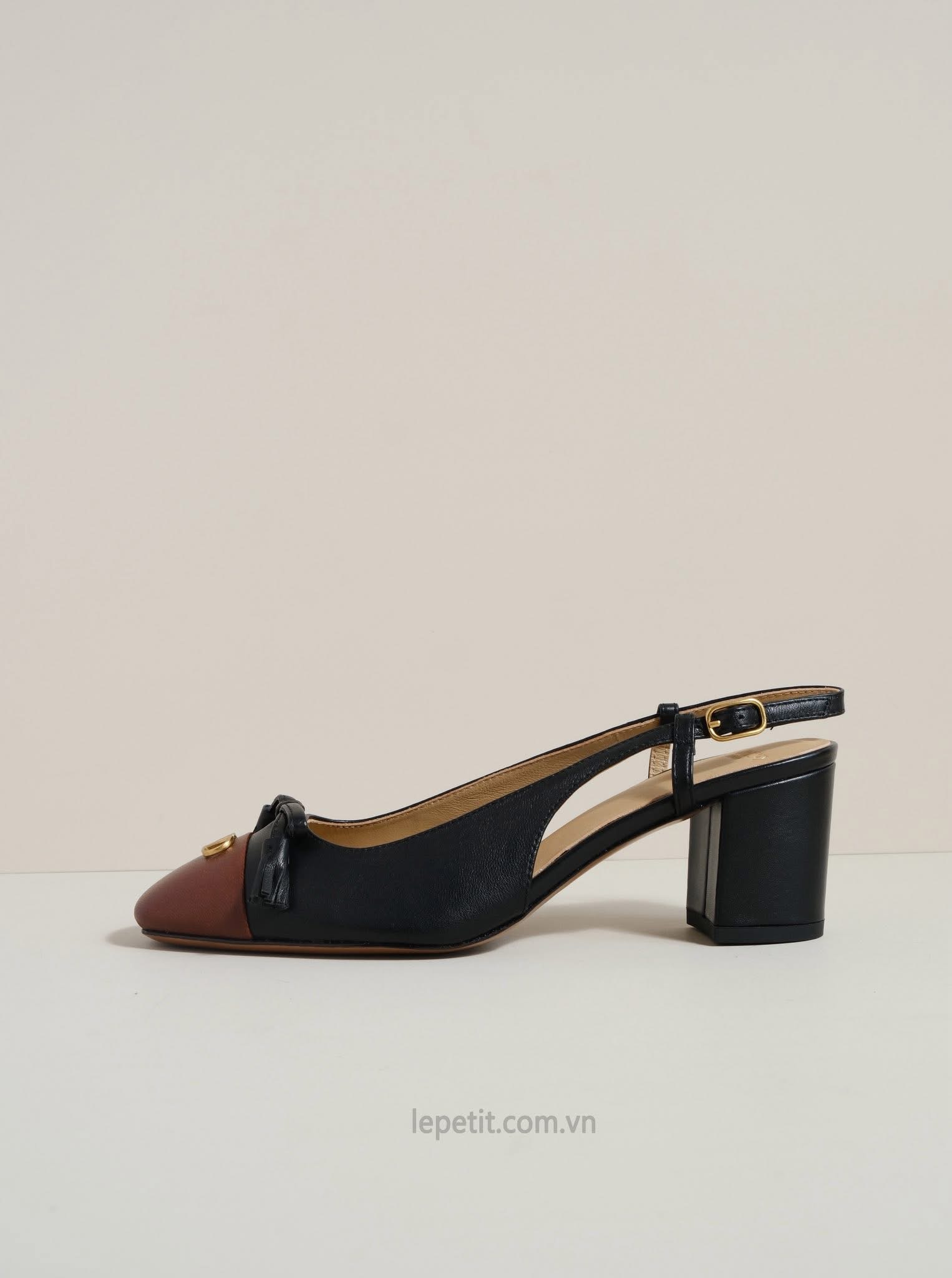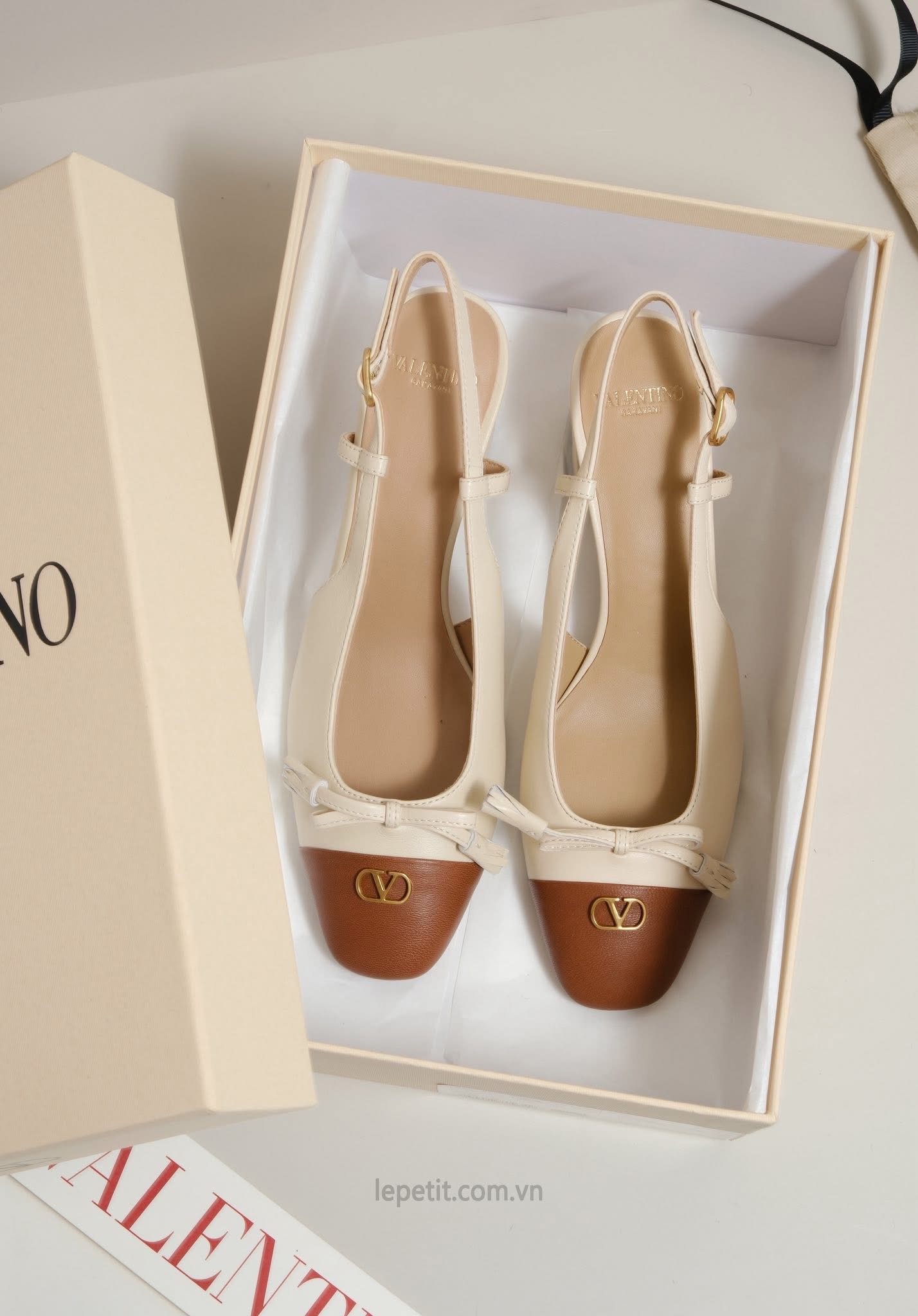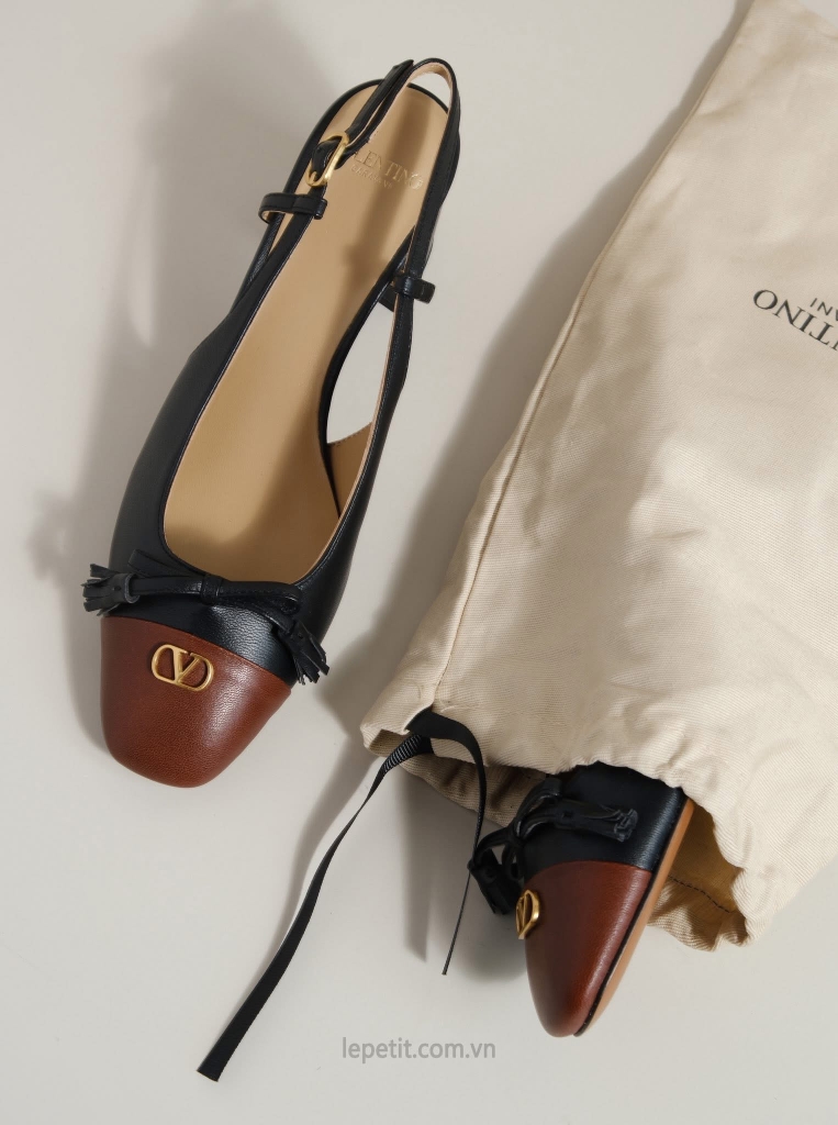 VLTN mang hơi thở cổ điển vào đôi slingback với dáng mũi vuông thanh lịch và gót trụ 6cm vững vàng. Phần da phối màu tinh tế cùng điểm nhấn VLogo kim loại và nơ tua rua nhỏ xinh tạo nên nét duyên dáng, nhẹ nhàng mà vẫn sang trọng.