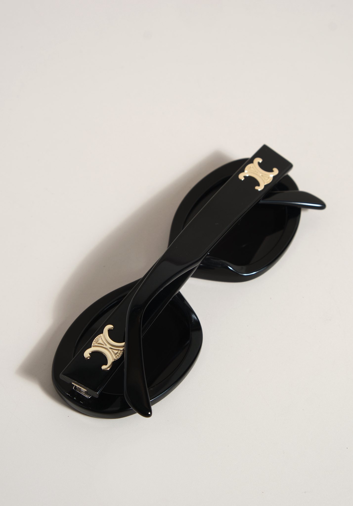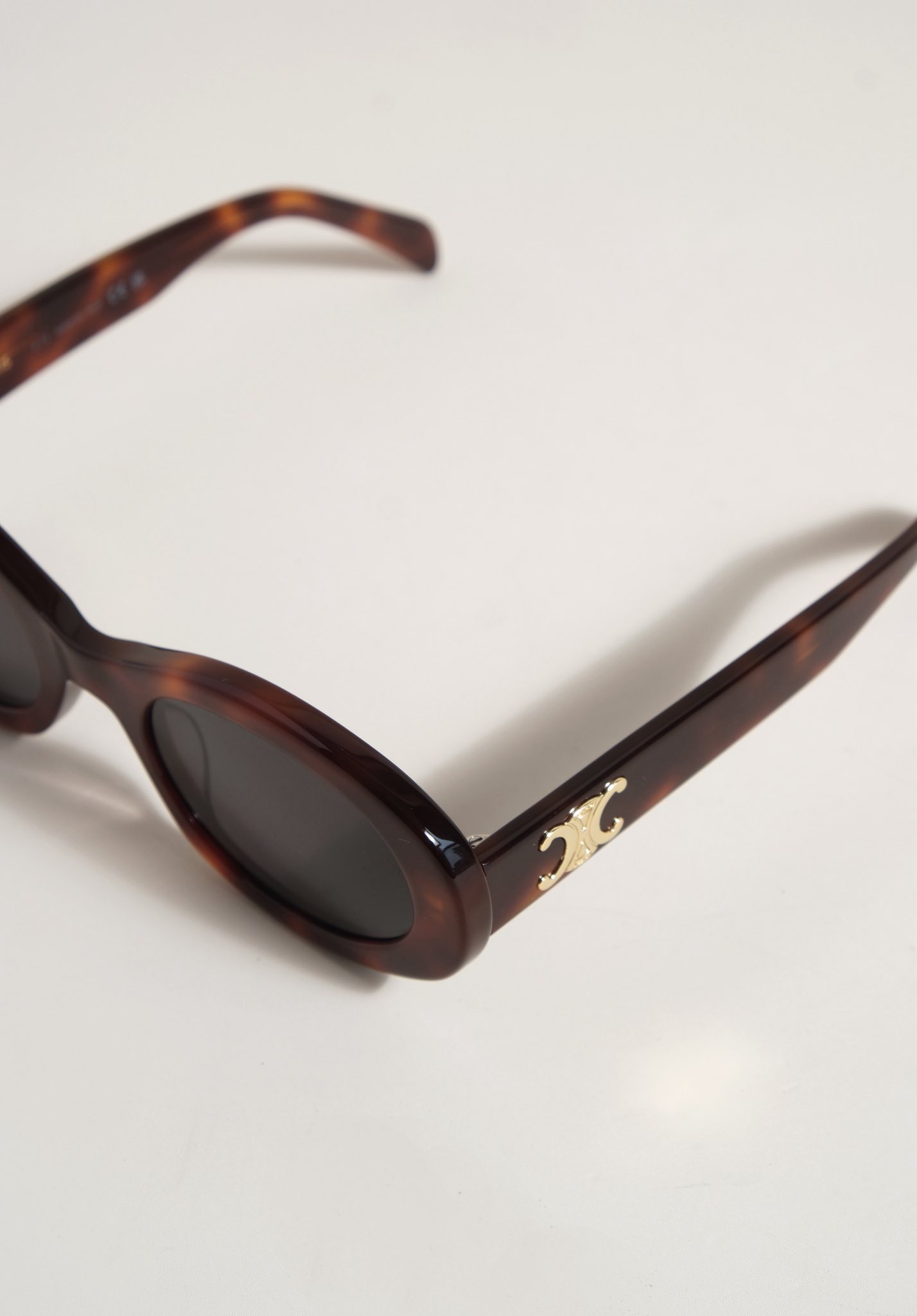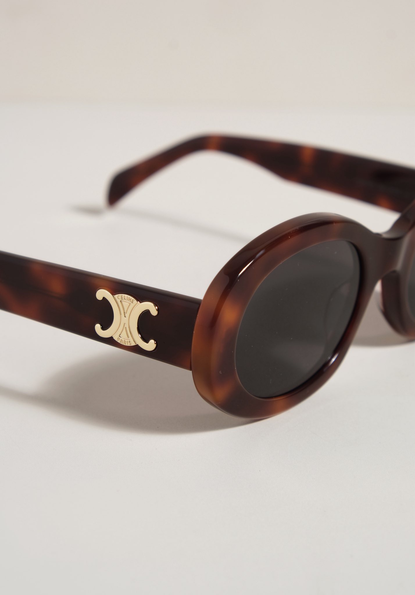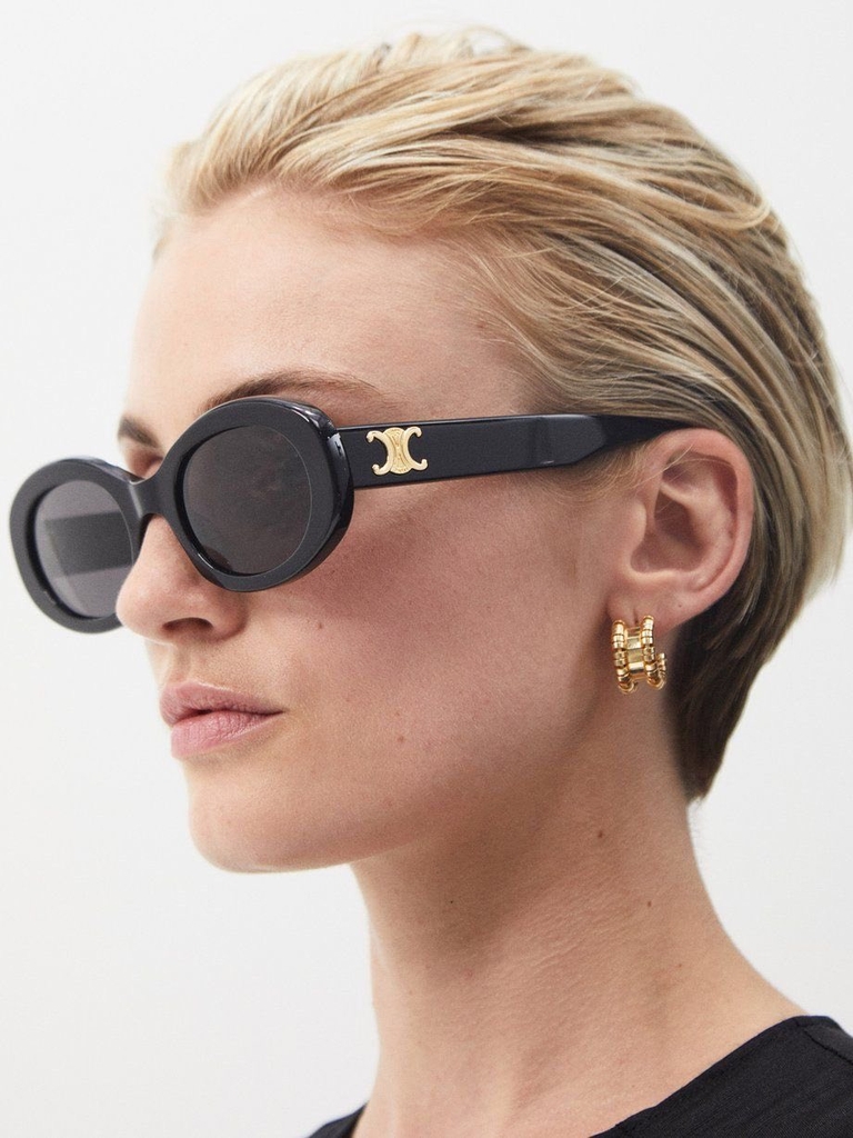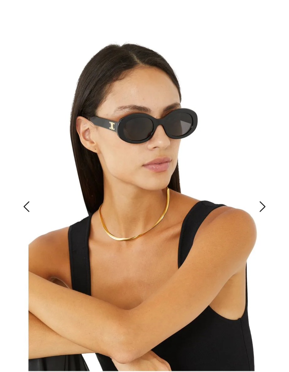 Kính sở hữu form oval, viền dày sắc sảo, ôm gọn khuôn mặt tạo nên hiệu ứng mềm mại nhưng vẫn đầy cá tính. Càng kính đính logo Triomphe kim loại như một dấu ấn nhận diện đặc trưng. Thiết kế siêu dễ ứng dụng từ những set đồ casual hằng ngày đến phong cách chỉn chu, thời thượng.