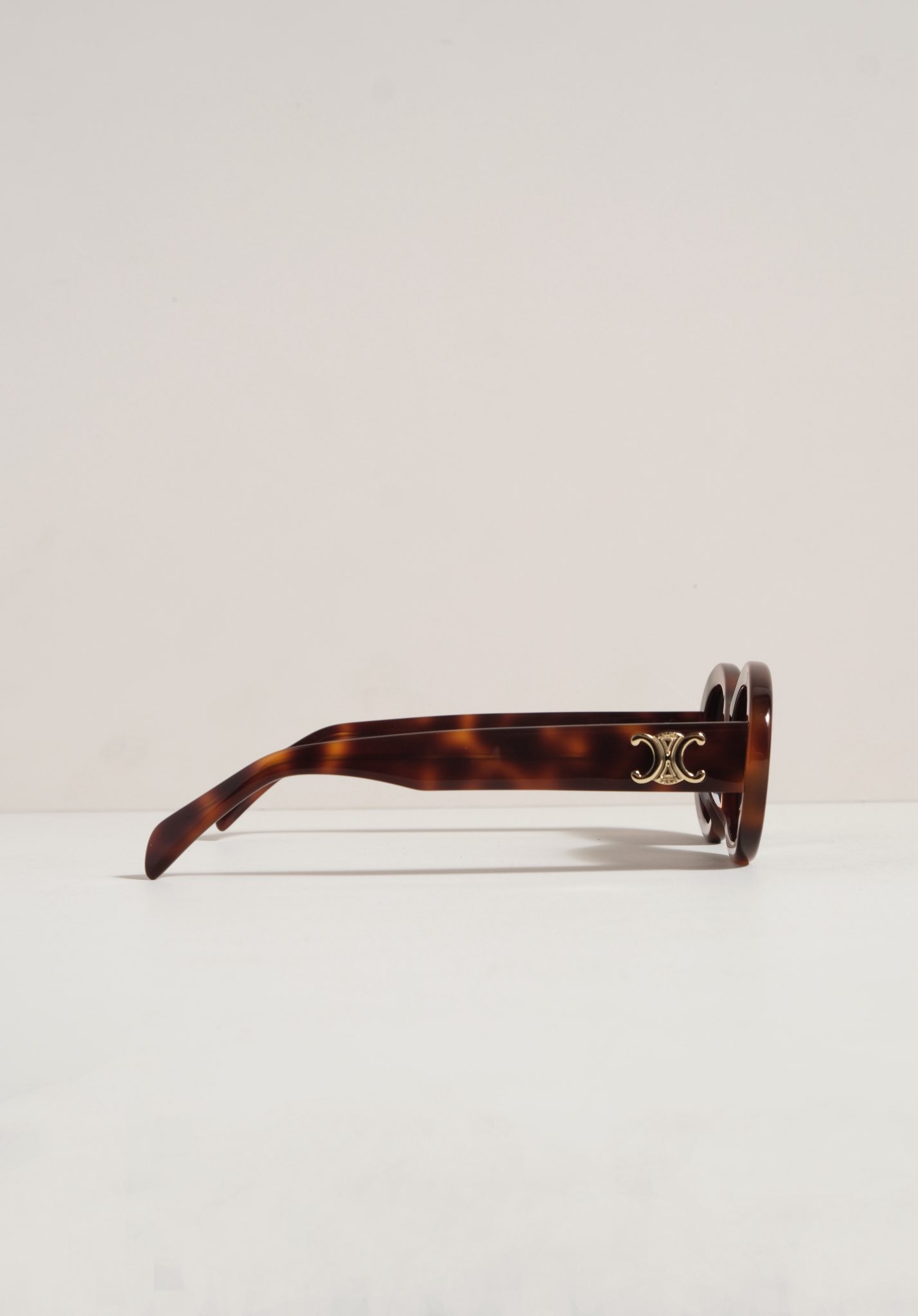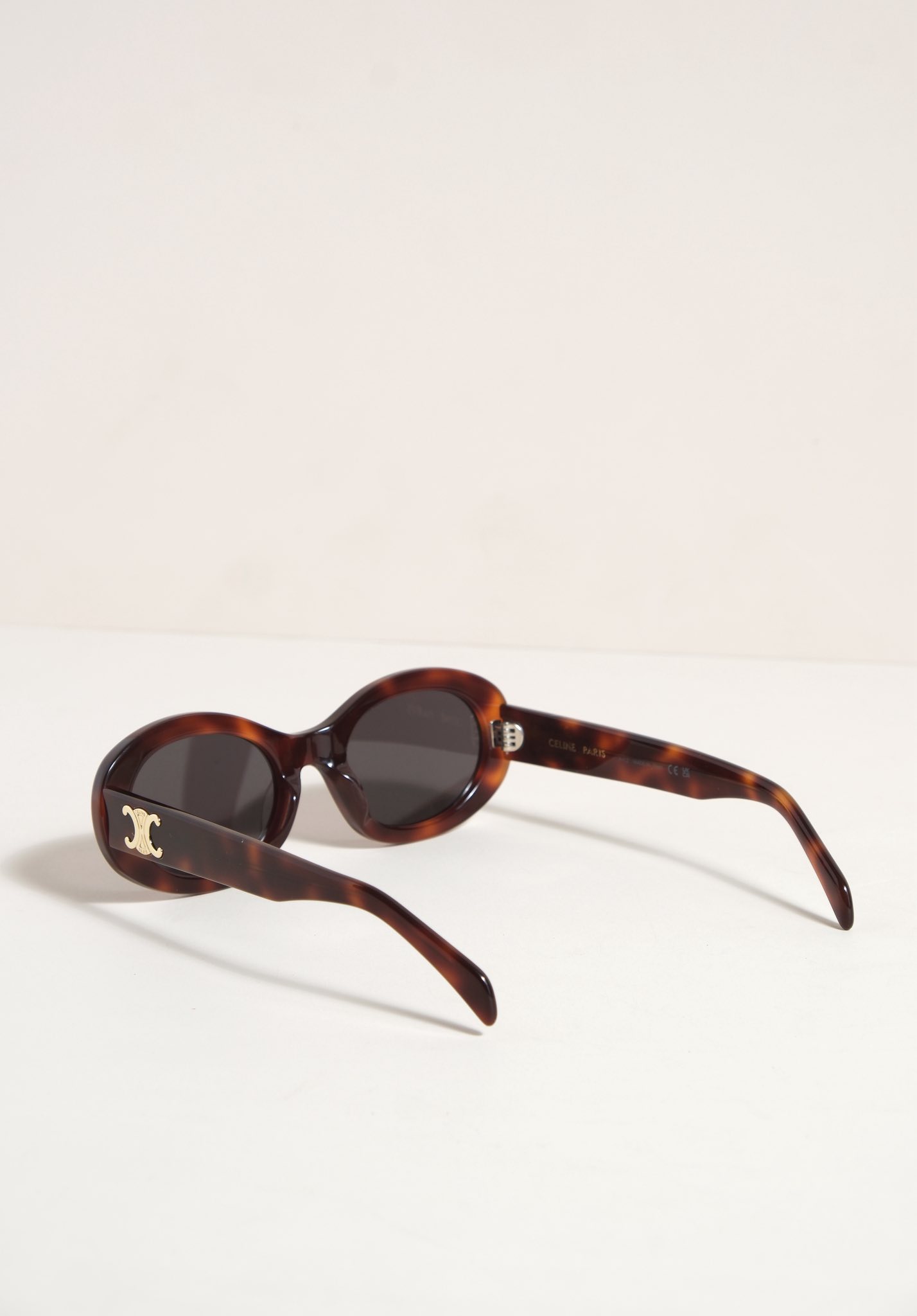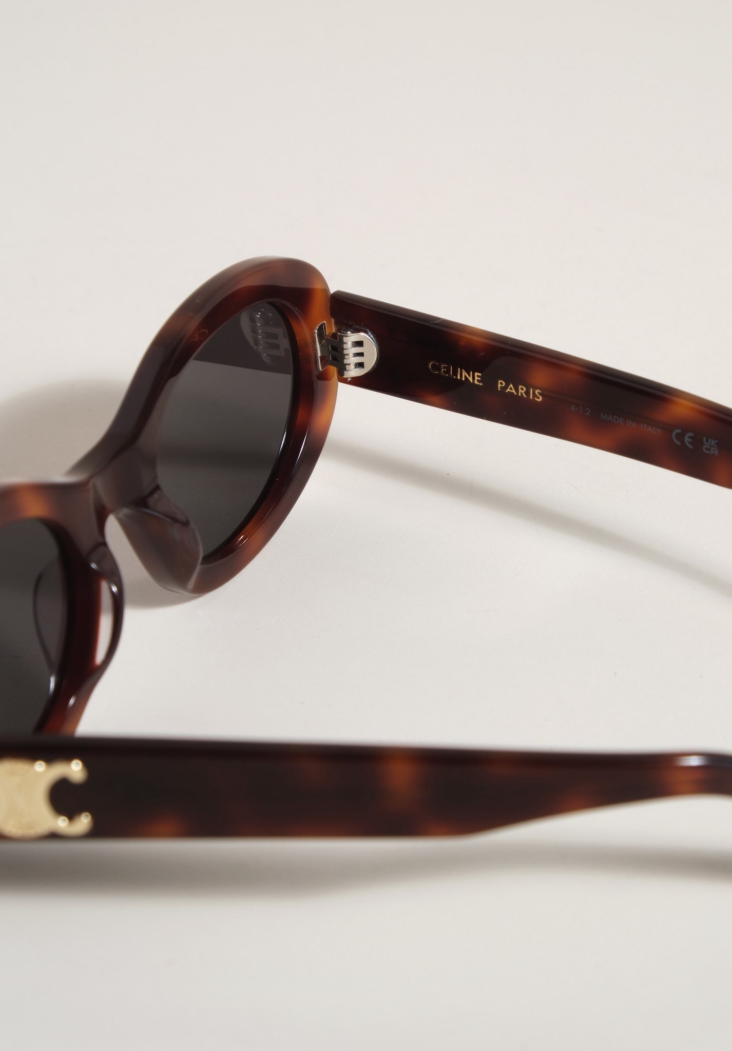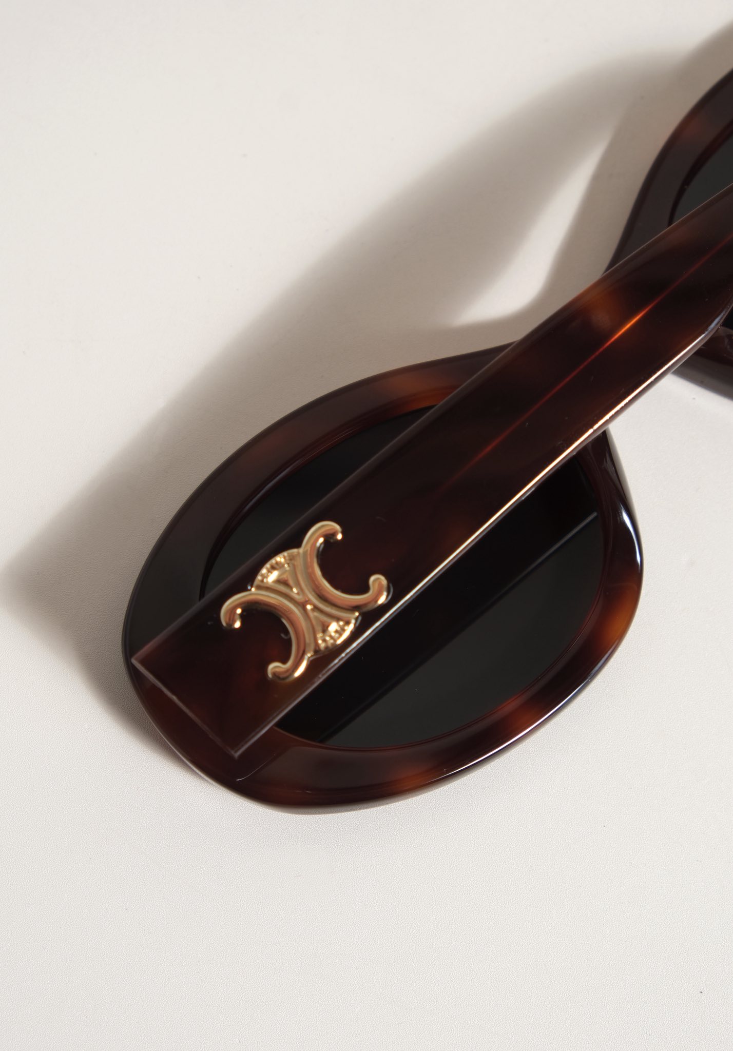 Kính sở hữu form oval, viền dày sắc sảo, ôm gọn khuôn mặt tạo nên hiệu ứng mềm mại nhưng vẫn đầy cá tính. Càng kính đính logo Triomphe kim loại như một dấu ấn nhận diện đặc trưng. Thiết kế siêu dễ ứng dụng từ những set đồ casual hằng ngày đến phong cách chỉn chu, thời thượng.