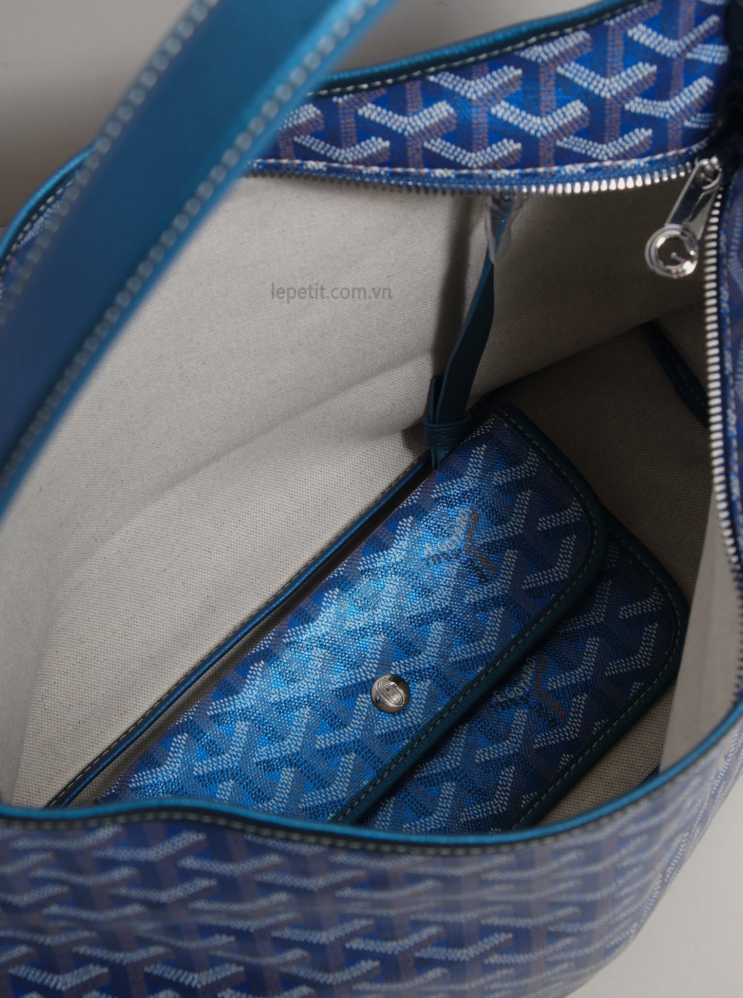- Chất liệu: Goyardine canvas, da bê, lót vải