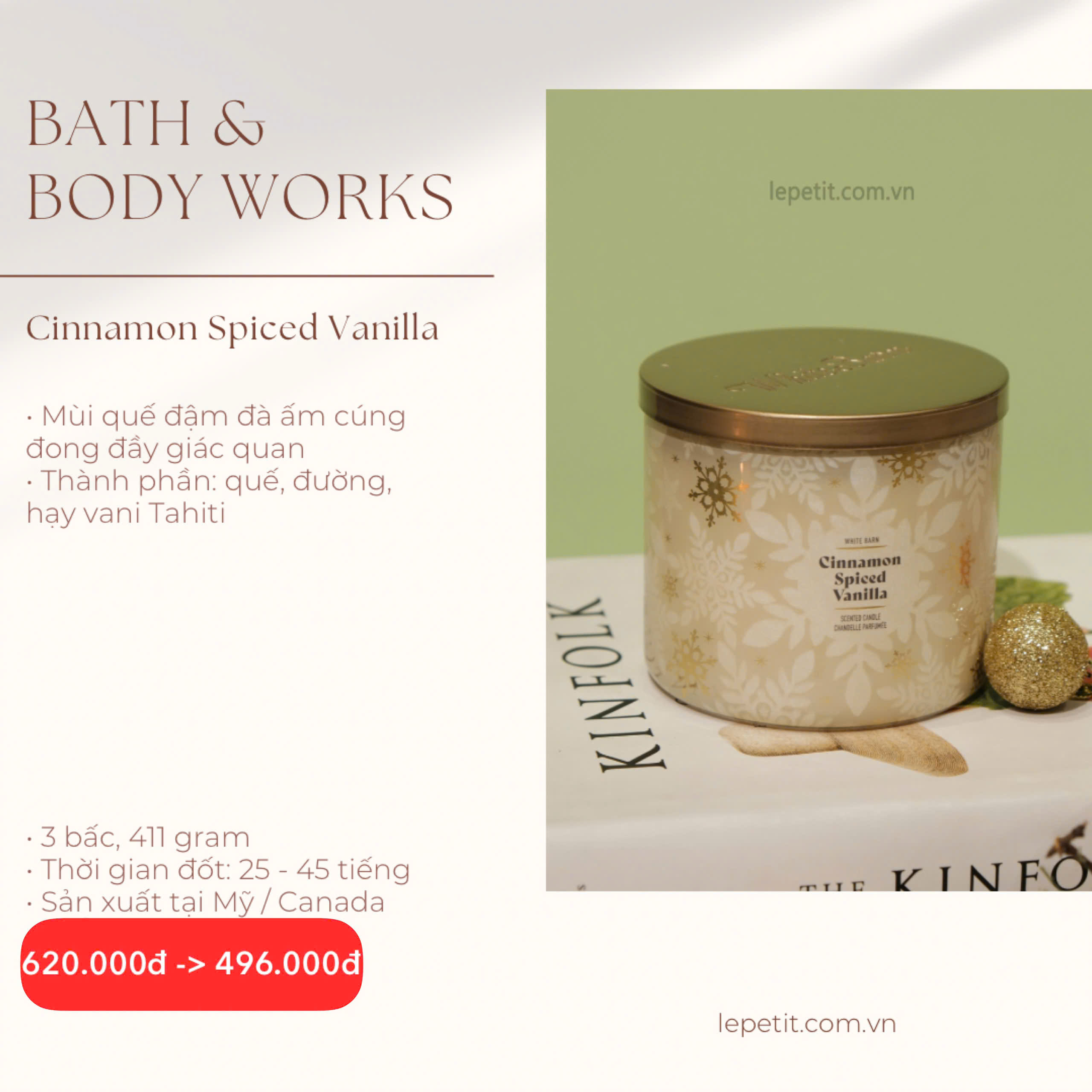 - Cinnamon & Clove Buds: mùi ấm cúng đậm đà gia vị từ lá quế, nụ đinh hương, nhục đậu khấu.
