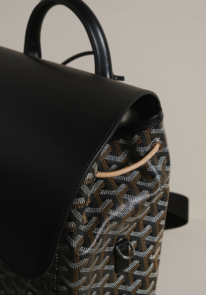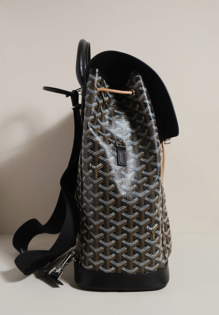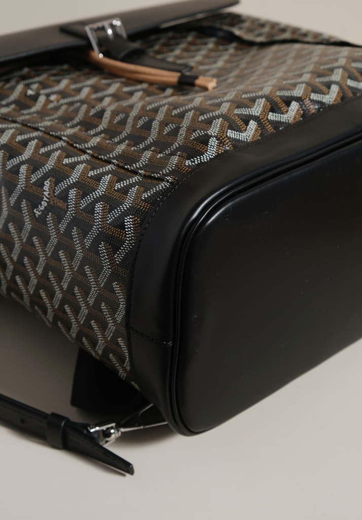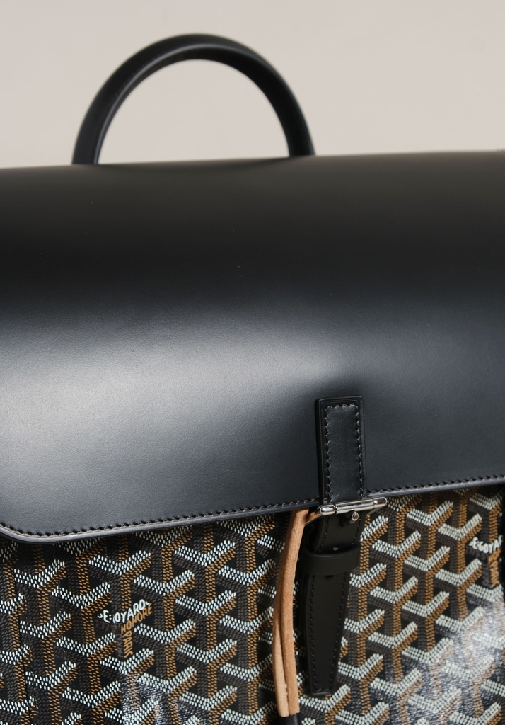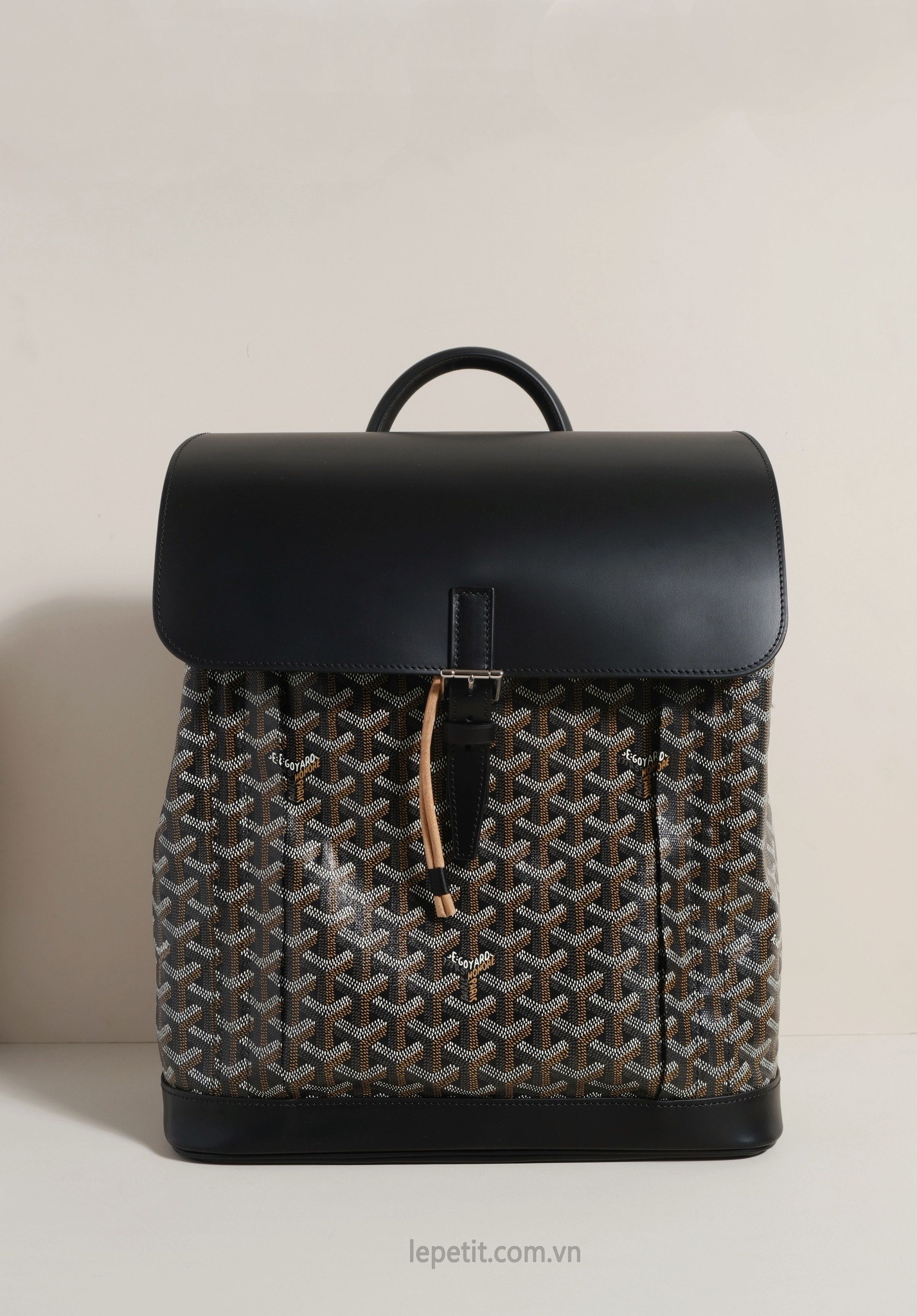 Ba lô Alpin sở hữu kích thước lớn đồng thời vẫn rất gọn nhẹ, bền bỉ với chất liệu Goyardine canvas và da bê. Ba lô có thể để vừa laptop 15 inch, có ngăn may chần êm ái phù hợp để laptop.