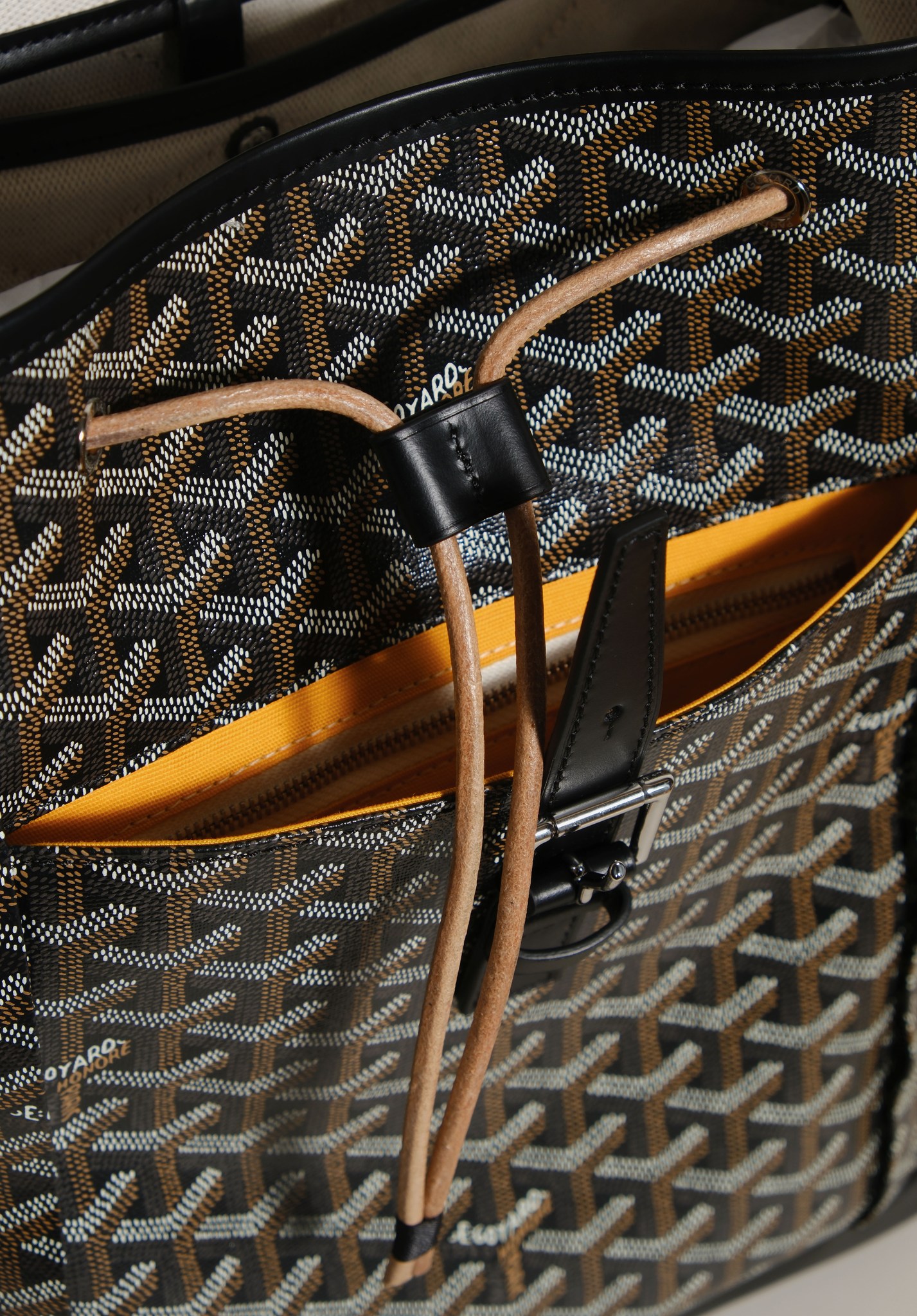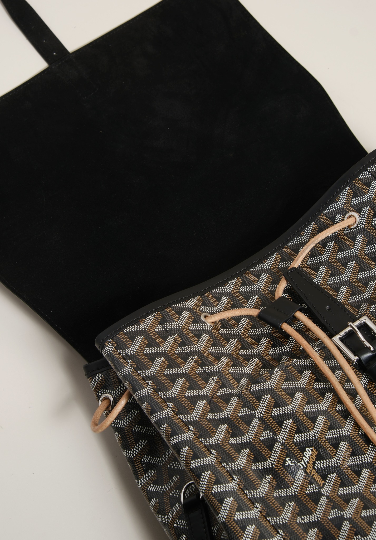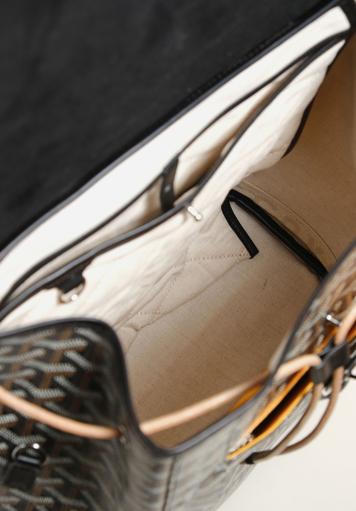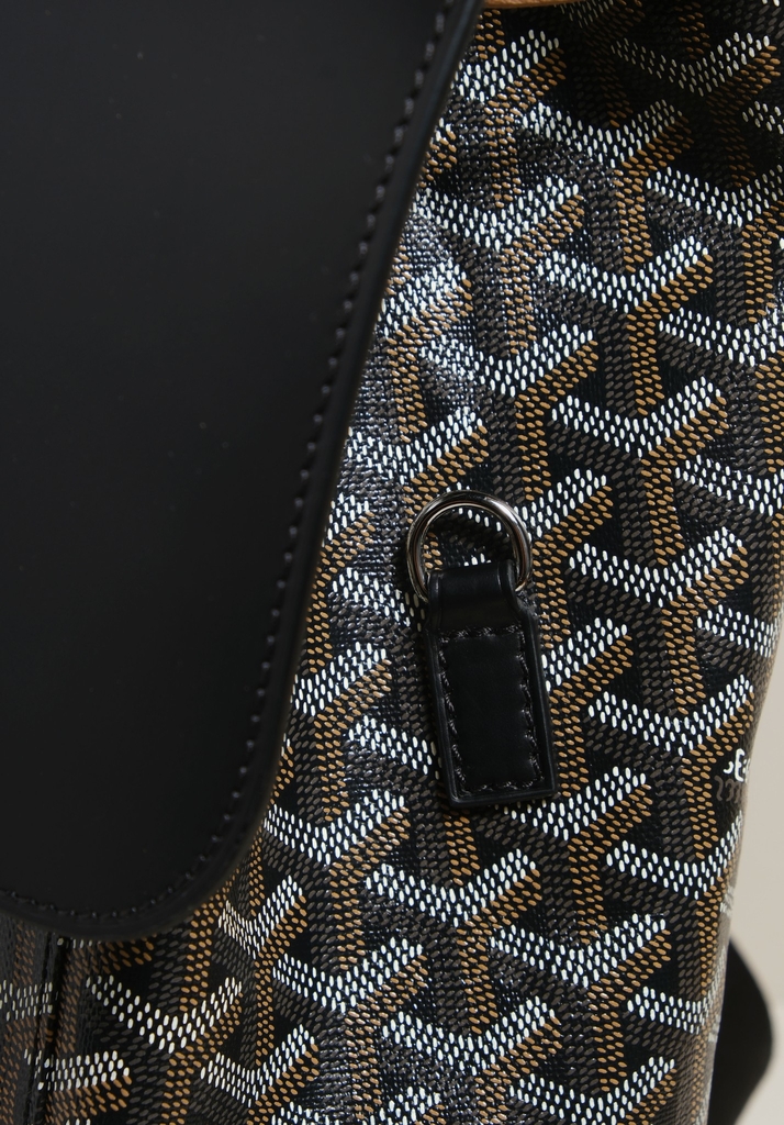Ba lô Alpin sở hữu kích thước lớn đồng thời vẫn rất gọn nhẹ, bền bỉ với chất liệu Goyardine canvas và da bê. Ba lô có thể để vừa laptop 15 inch, có ngăn may chần êm ái phù hợp để laptop.