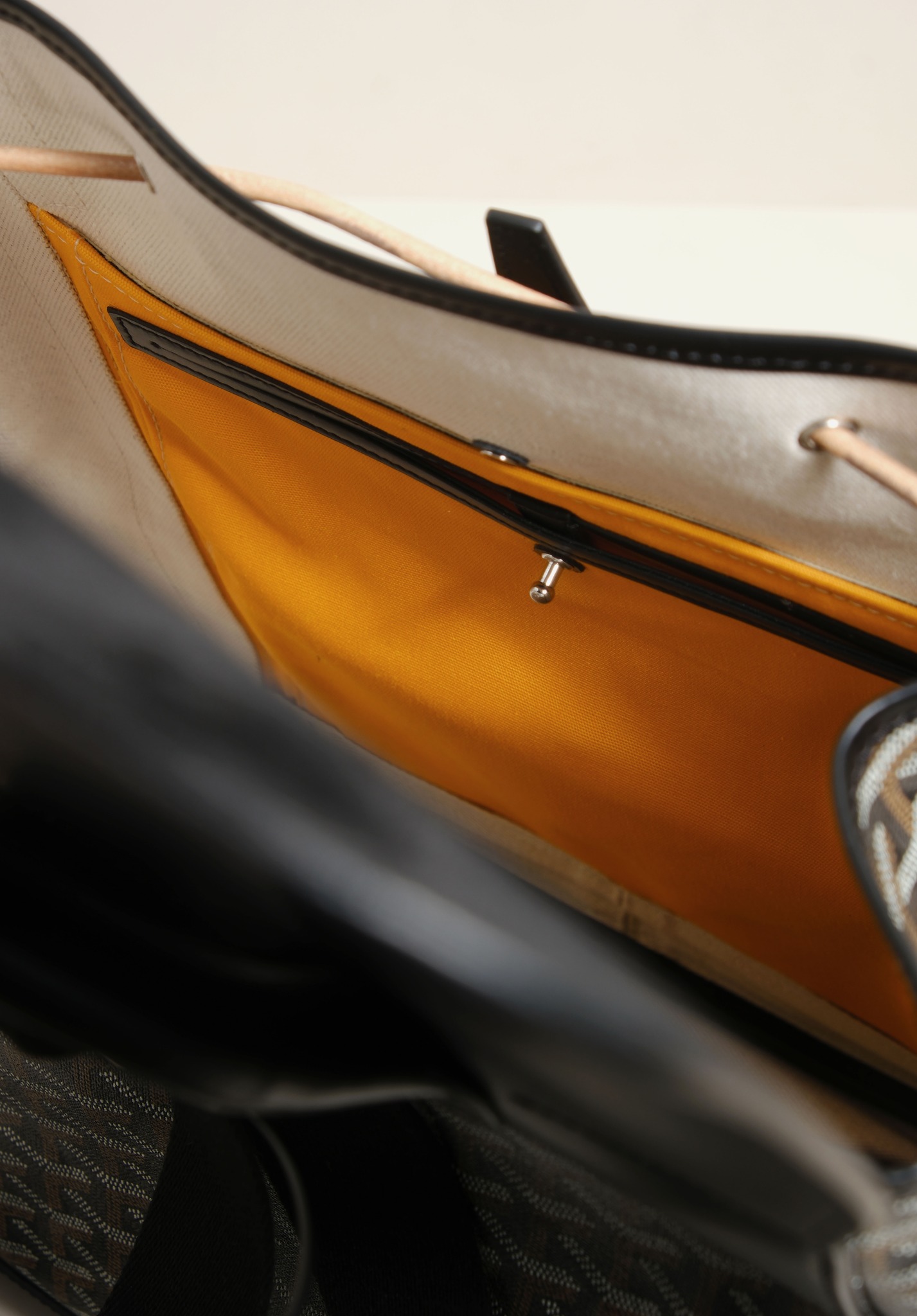 - Chất liệu: Goyardine canvas, da bê, lót vải