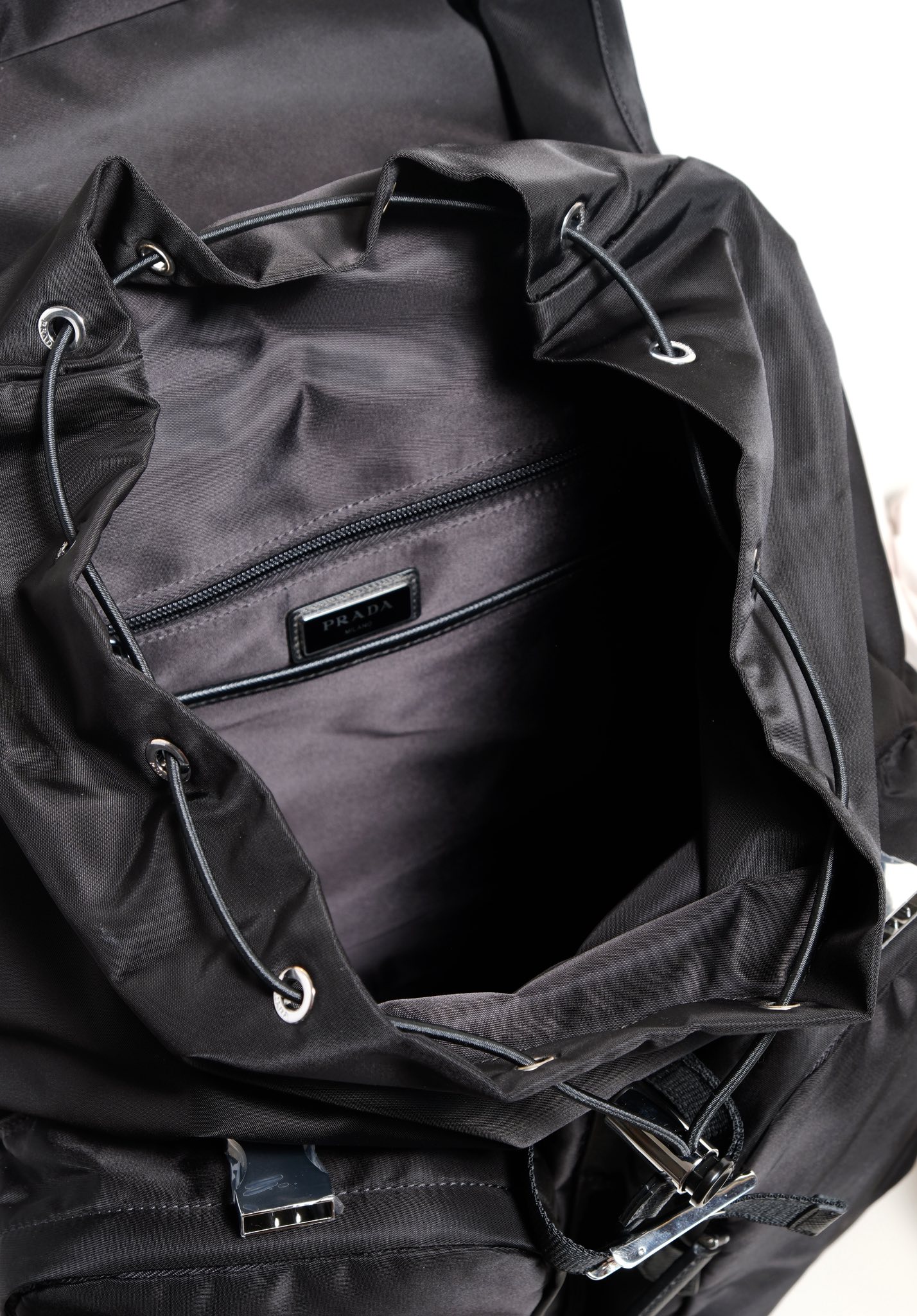 Ngăn chứa đồ rộng rãi, có các ngăn phụ khóa kéo bên ngoài để lấy & cất đồ nhanh chóng. Mặt lưng có đệm lưới mang đến sự êm ái khi mang. Mặt trước đính logo PD bằng kim loại tráng men, cùng các chi tiết kim loại màu bạc và các chi tiết da thật dập vân Saffiano mang đến phong cách sang trọng và mạnh mẽ.