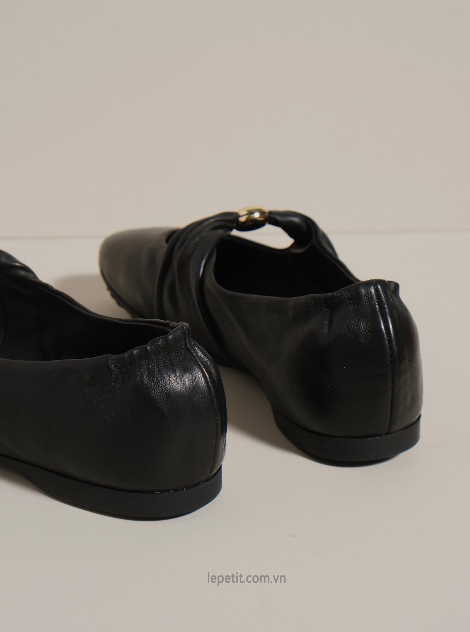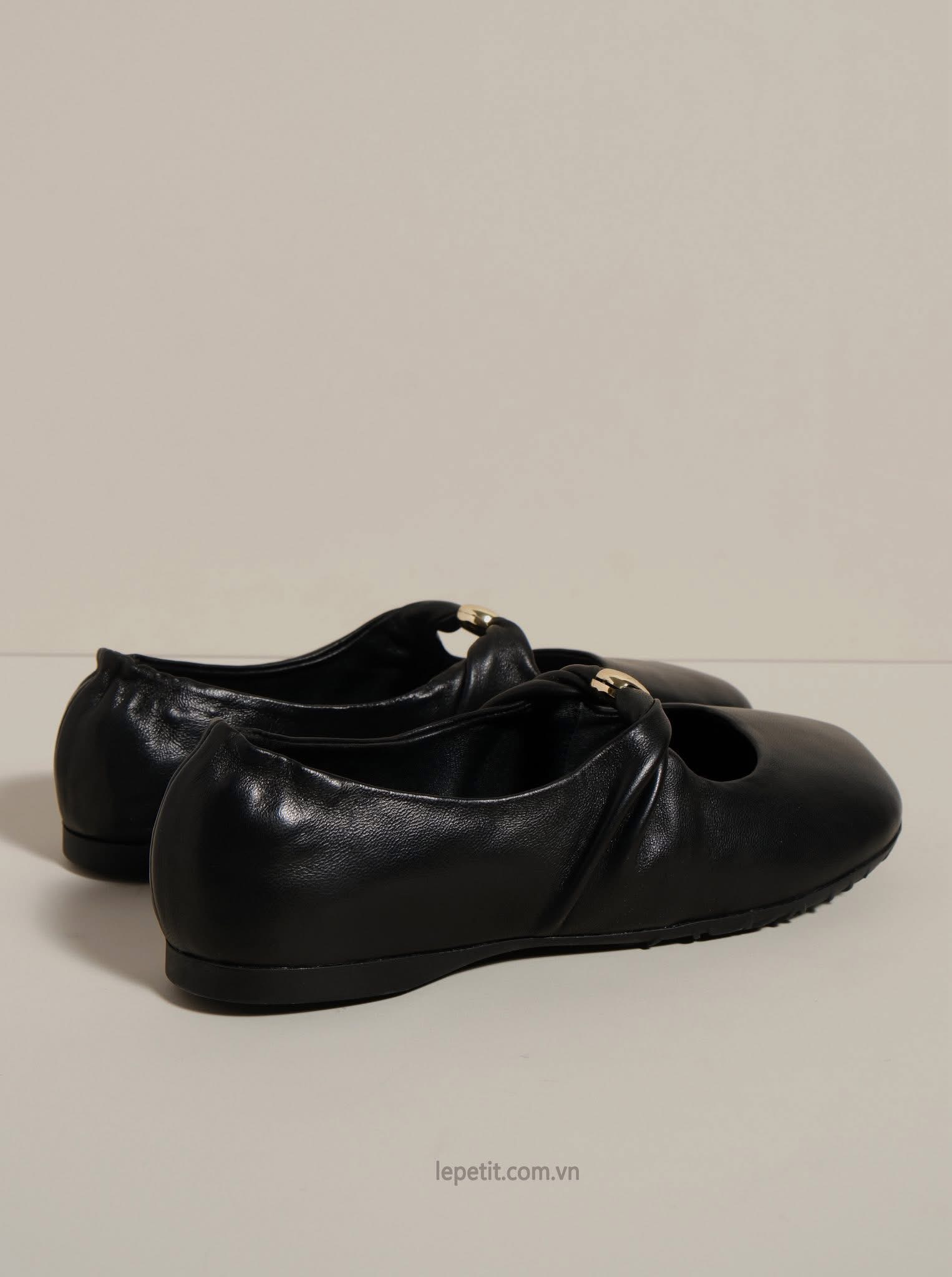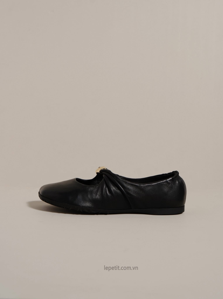 Đôi giày búp bê da cừu mềm mướt như bơ, nhẹ như mang vớ. Thiết kế nhấn nhá bằng chi tiết quai xoắn và nút kim loại nhỏ xinh, đủ tinh tế để nổi bật mà vẫn dịu dàng, dễ phối.