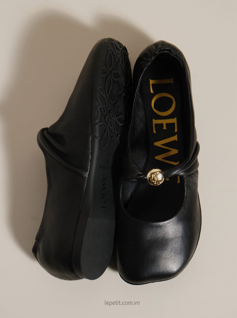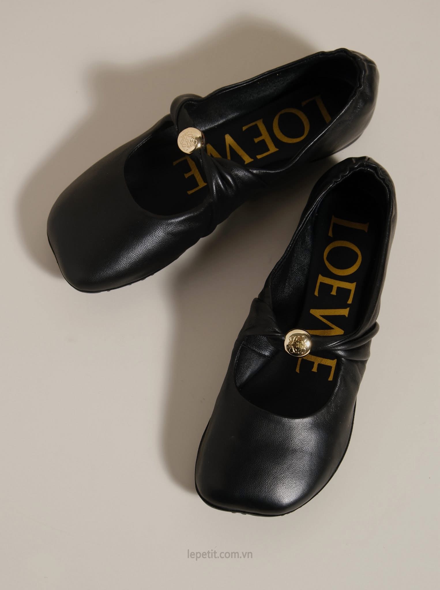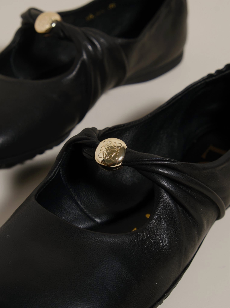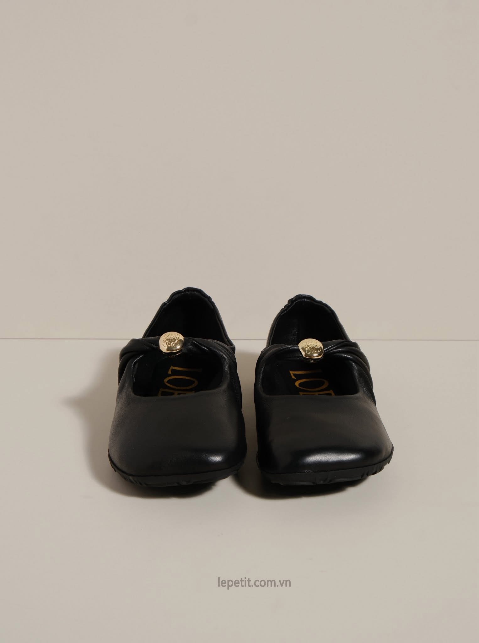 Đôi giày búp bê da cừu mềm mướt như bơ, nhẹ như mang vớ. Thiết kế nhấn nhá bằng chi tiết quai xoắn và nút kim loại nhỏ xinh, đủ tinh tế để nổi bật mà vẫn dịu dàng, dễ phối.