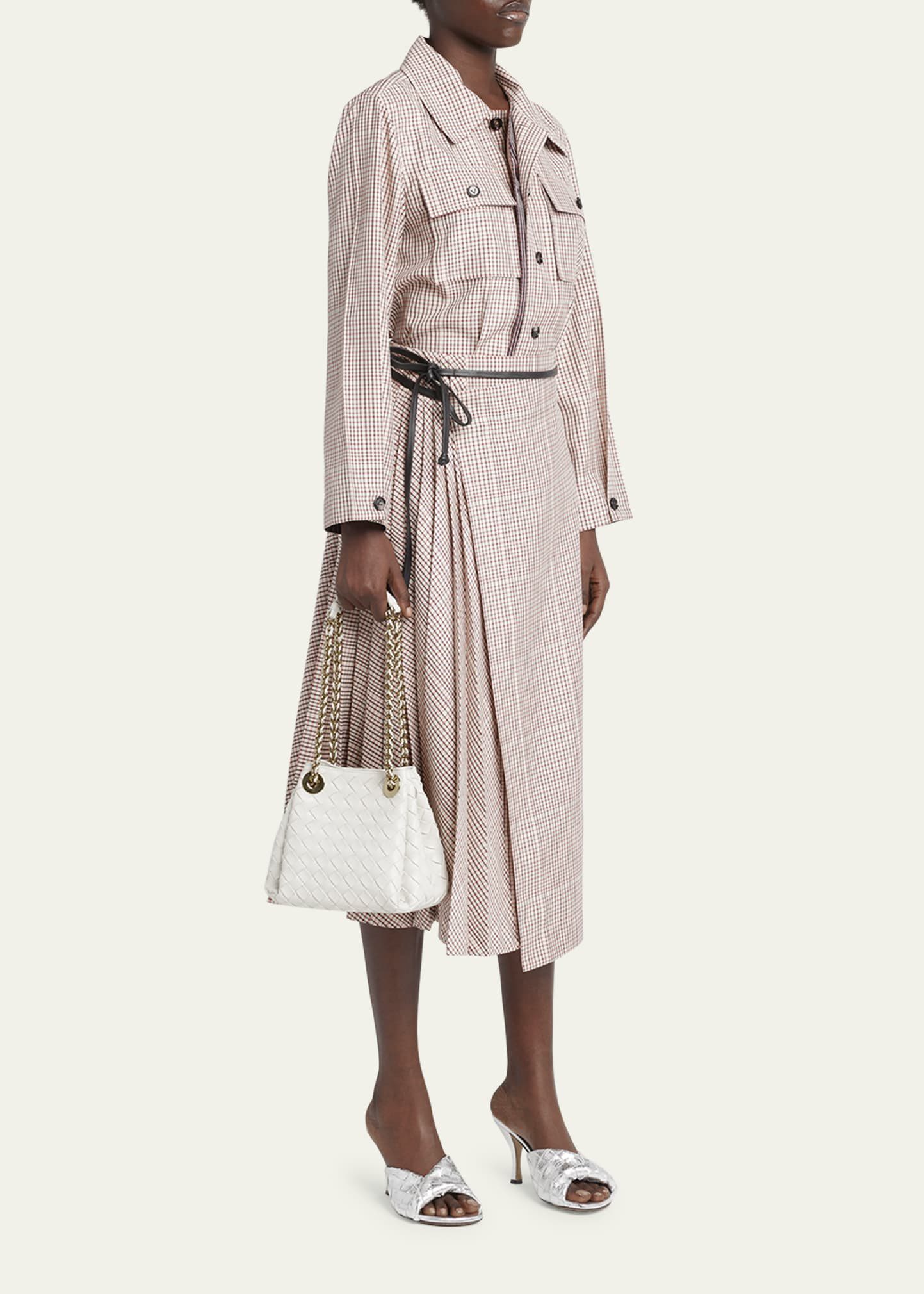 Được giới thiệu lần đầu trong bộ sưu tập Pre-Fall 2024, Parachute một lần nữa diễn giải & kế thừa di sản nghệ thuật đan da Intrecciato mang tính biểu tượng của thương hiệu theo cách mới mẻ. Toàn bộ thân túi sử dụng một mảnh da cừu đan và gấp lại (chứ không phải lắp ghép & may từ nhiều mảnh da), đặc biệt là không có lớp lót giúp khẳng định vẻ đẹp tinh xảo của tay nghề thủ công từ trong ra ngoài.