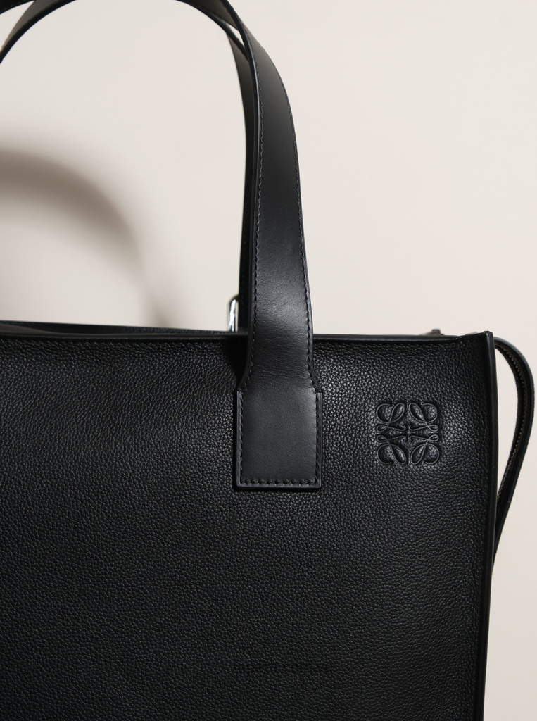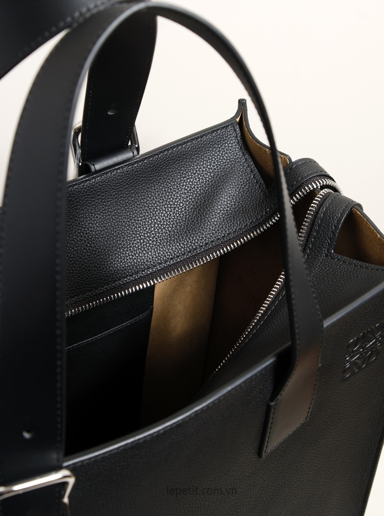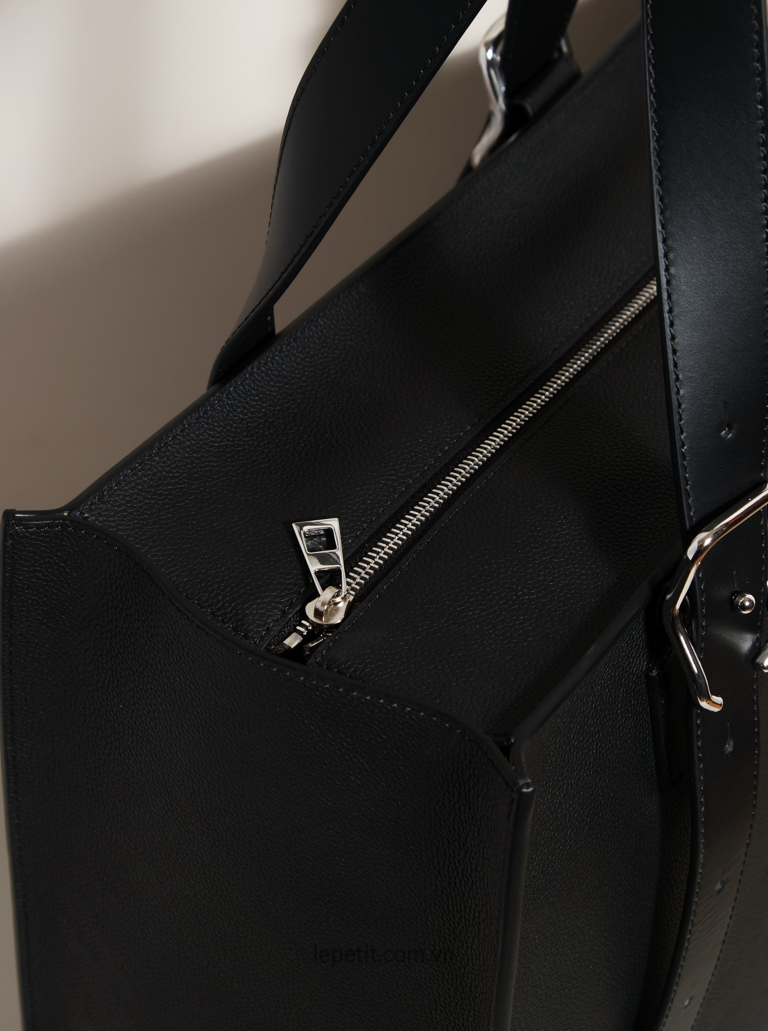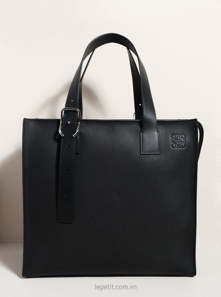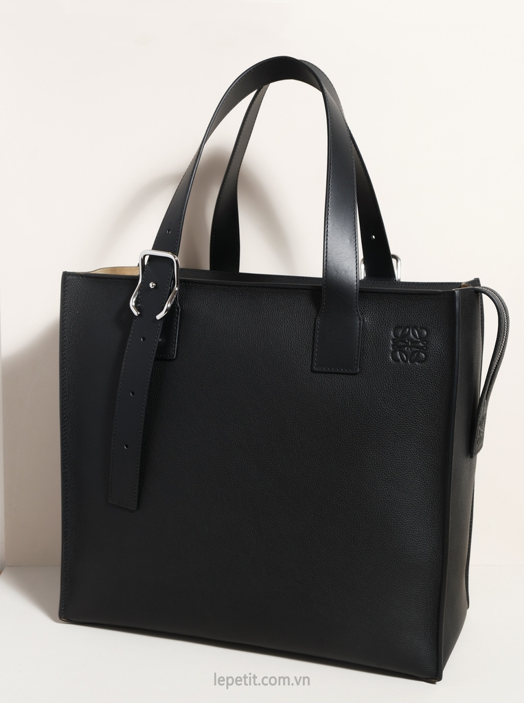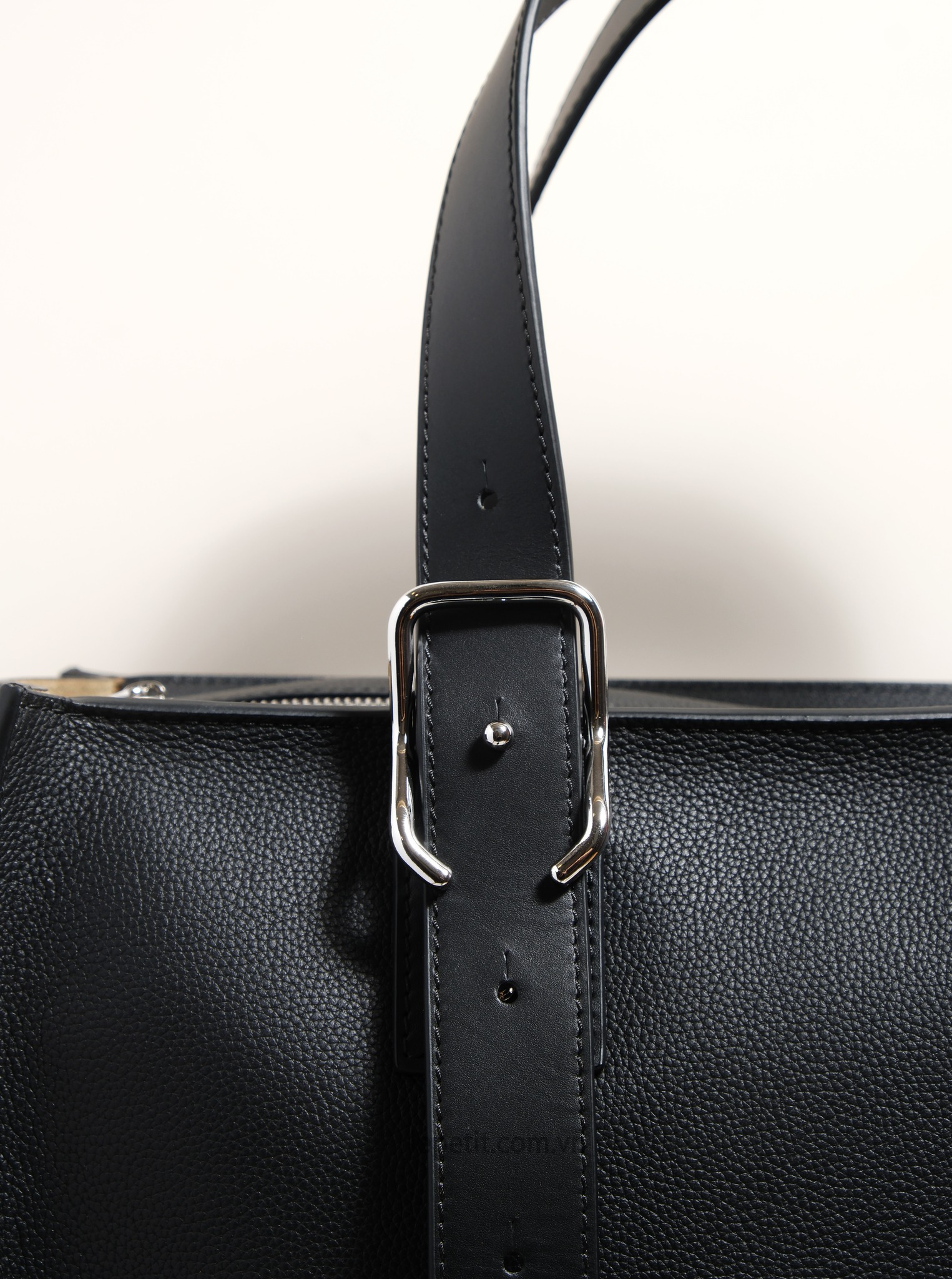 Túi tote đeo vai dáng hộp chữ nhật, để được laptop 13 - 14 inch và tài liệu khổ A4. Chất liệu da bê hạt chống trầy xước tốt.