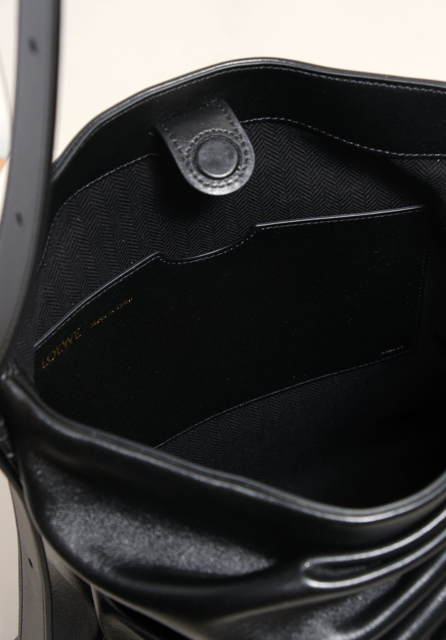 Chất da cừu mềm mại như vải được gấp thủ công, mang đến vẻ đẹp uyển chuyển đầy chiều sâu. Dây đeo bản rộng cùng tag logo dập chữ ánh vàng tạo điểm nhấn cấu trúc vừa đủ, hoàn thiện một tổng thể thanh lịch và hiện đại. Túi để vừa laptop 13 inch tiện dụng khi phối đồ hằng ngày.