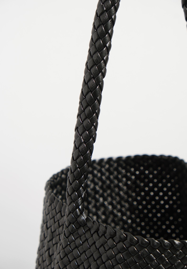 N/S Park là một trong những mẫu túi signature của TR, thu hút giới mộ điệu bởi thiết kế bucket tinh giản & mềm mại. Bản da đan thủ công mang lại chiều sâu đặc biệt, tạo kết cấu vừa chắc chắn vừa uyển chuyển. Tông đen hiện đại cùng phom dáng tối giản giúp chiếc túi dễ dàng hòa hợp với mọi trang phục.