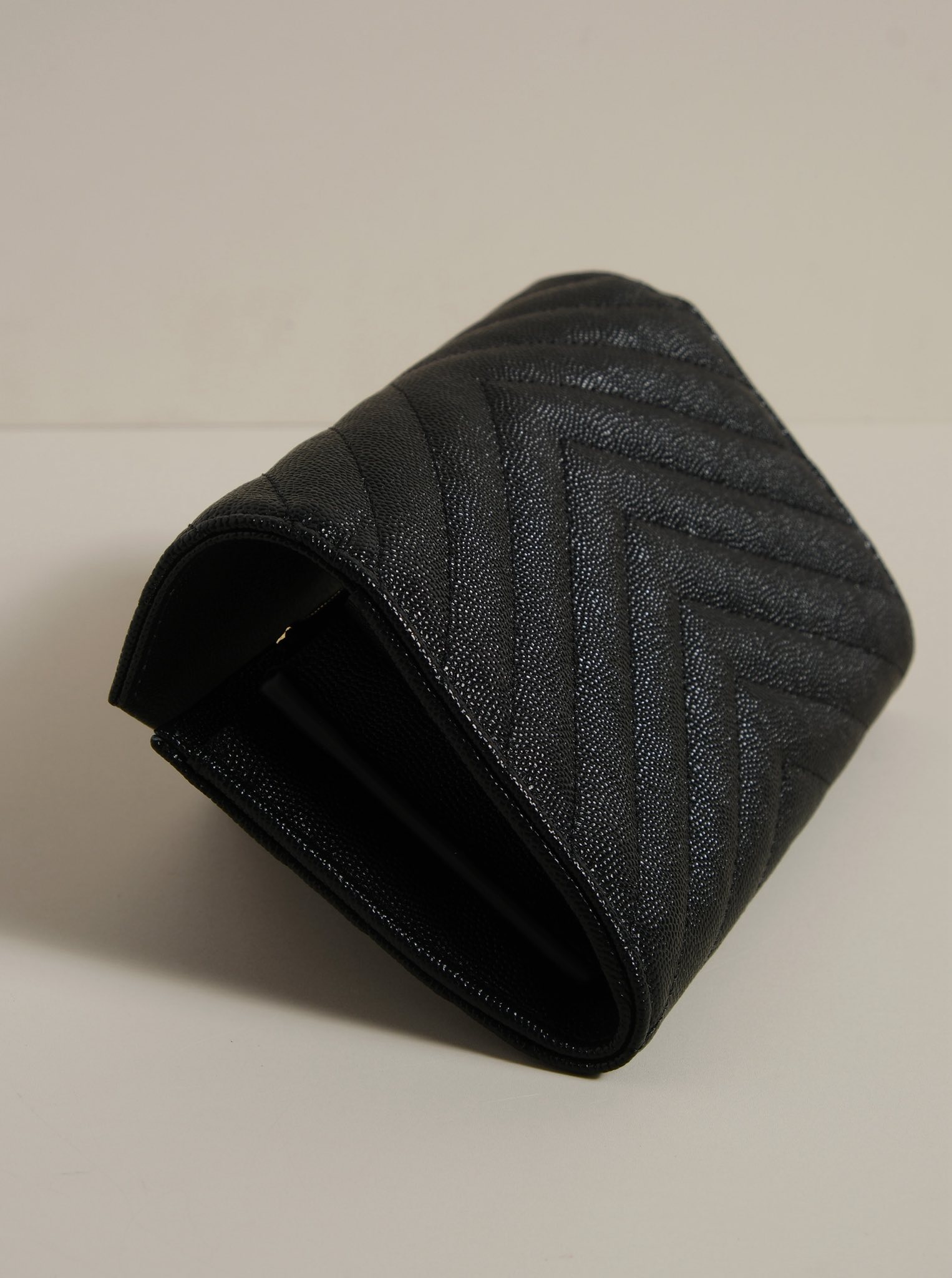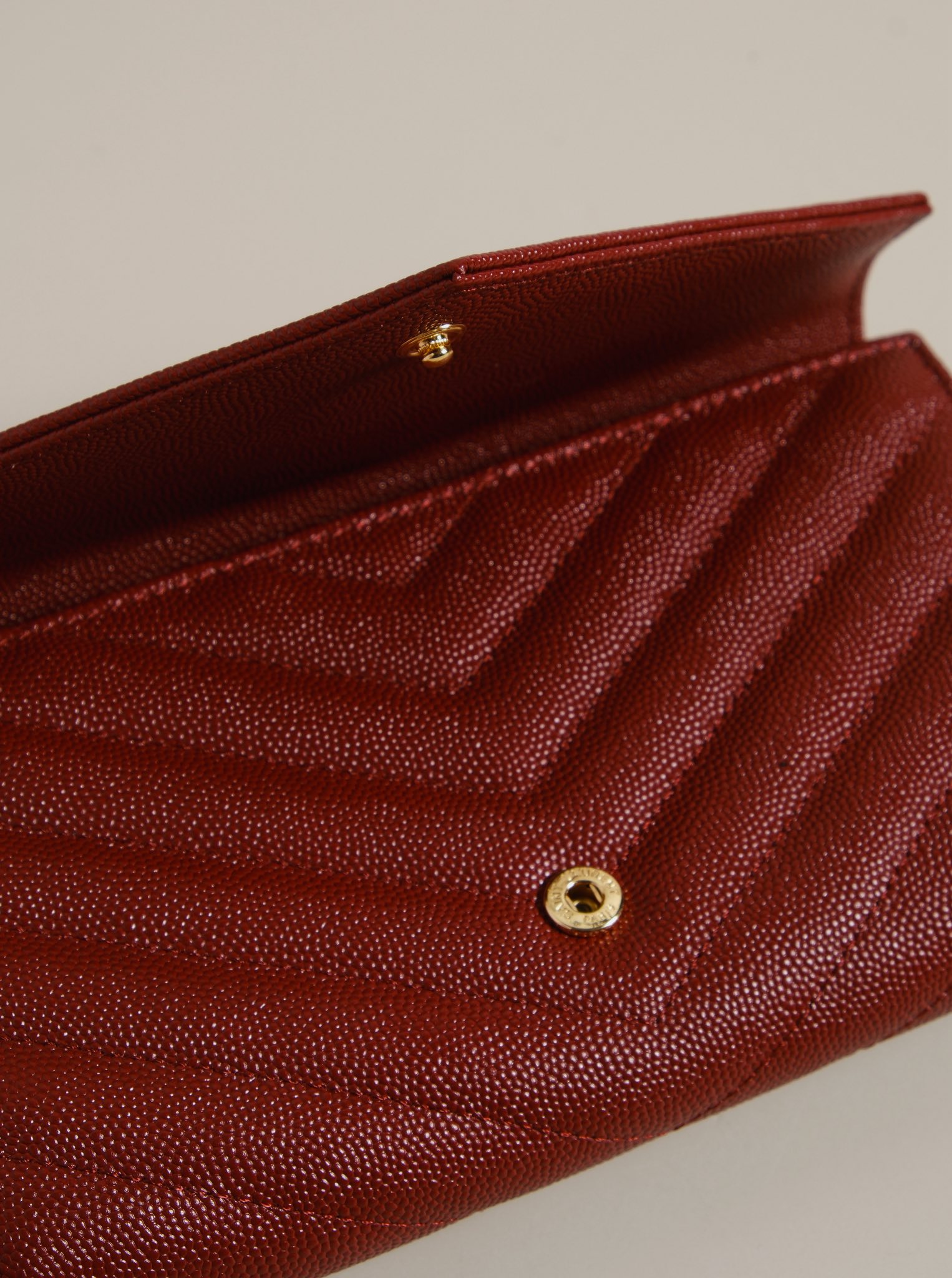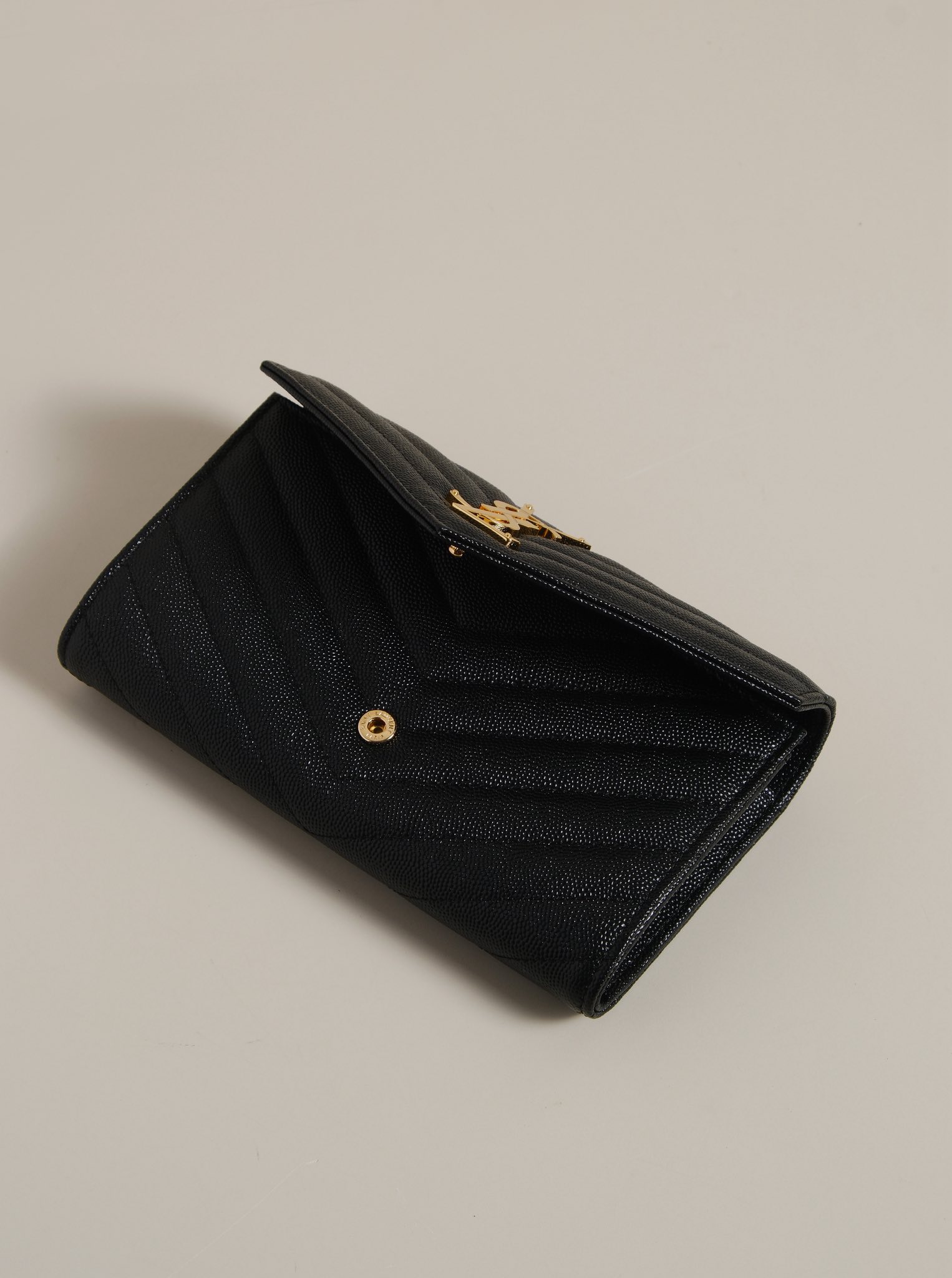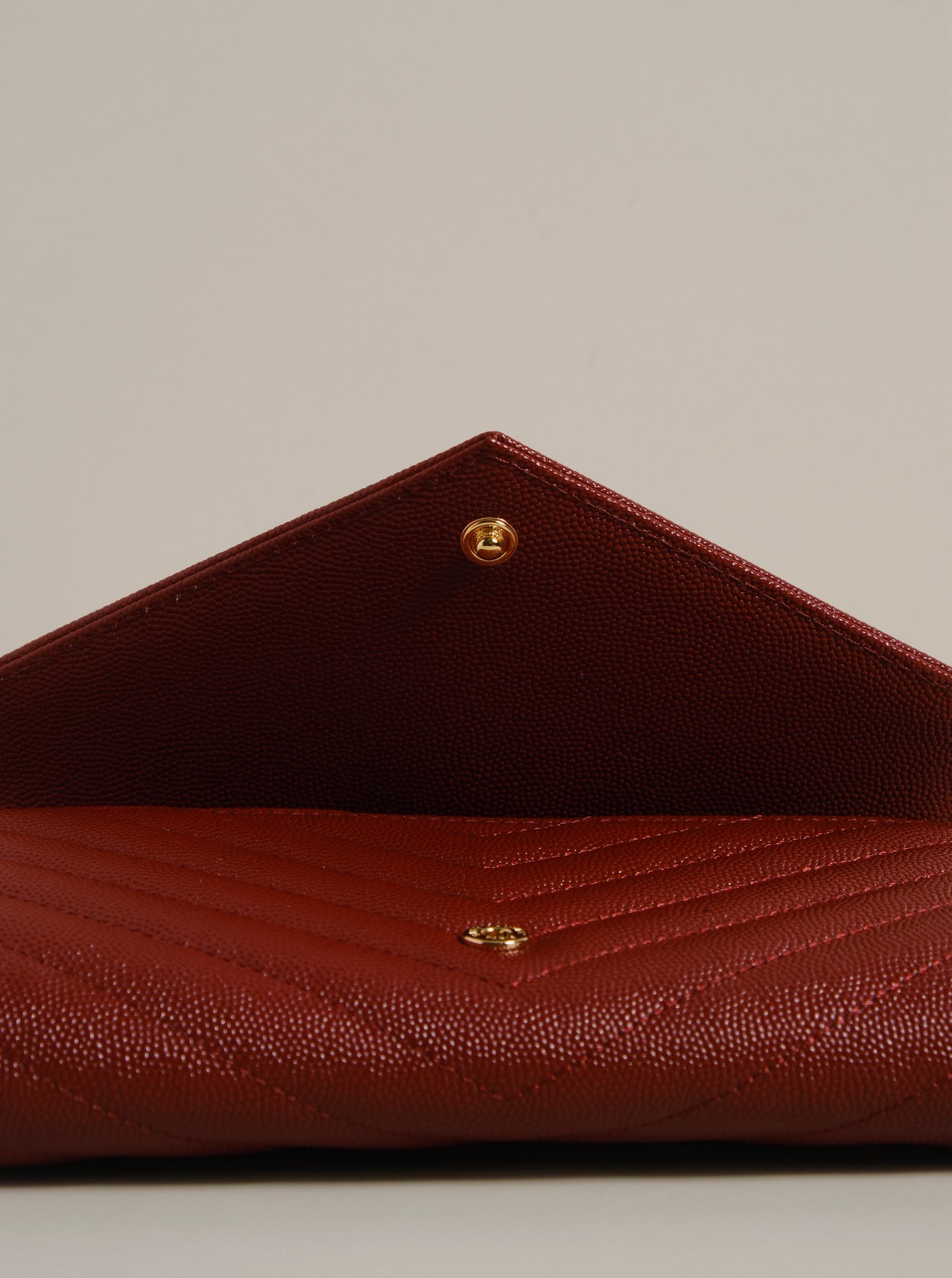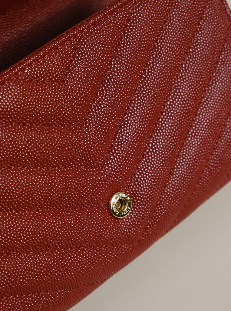 Thiết kế kinh điển của SL được thu nhỏ lại trong chiếc ví dáng bì thư thanh lịch. Ví sở hữu thiết kế may chần Matelassé trên nền da bê hạt, logo Y S L tạo điểm nhấn nổi bật, gồm 5 ngăn dài để được tiền thẳng và hóa đơn, 12 ngăn để thẻ.