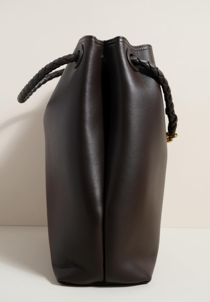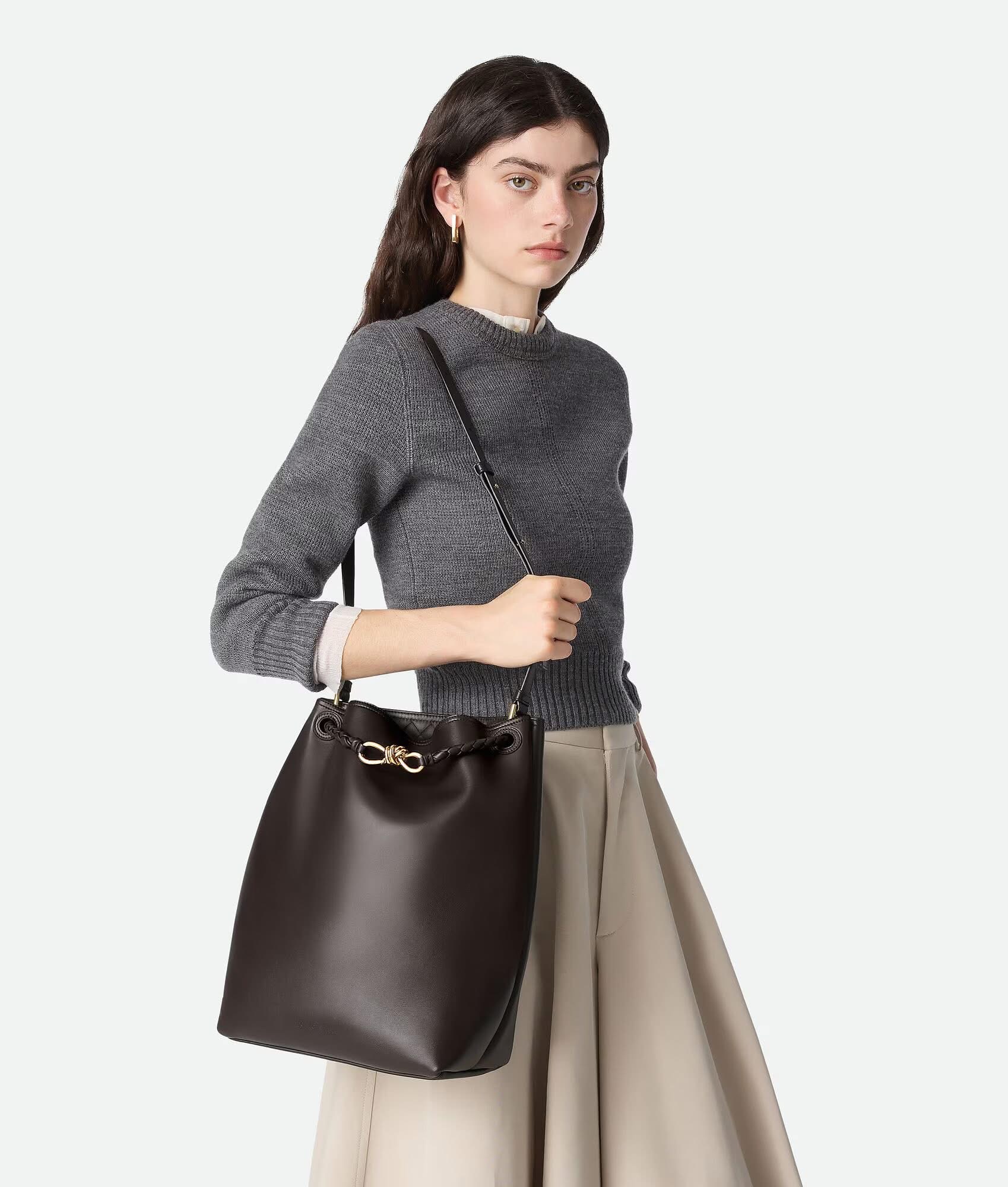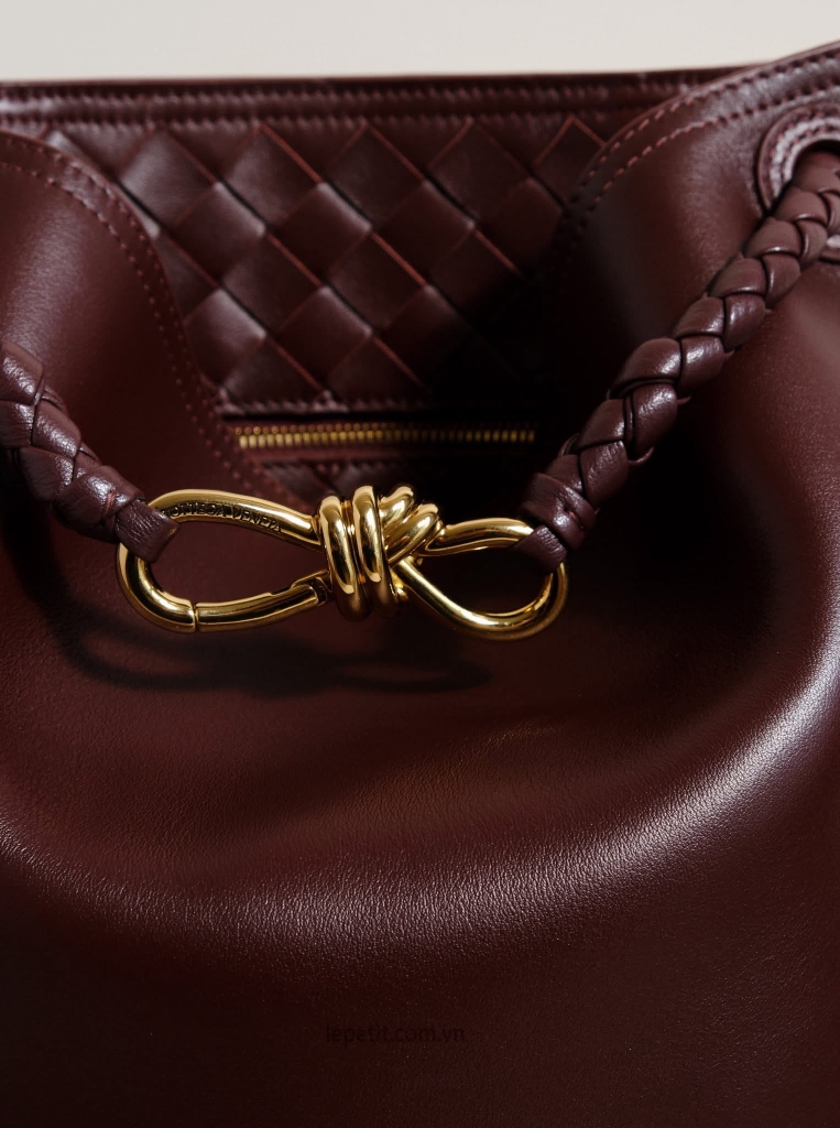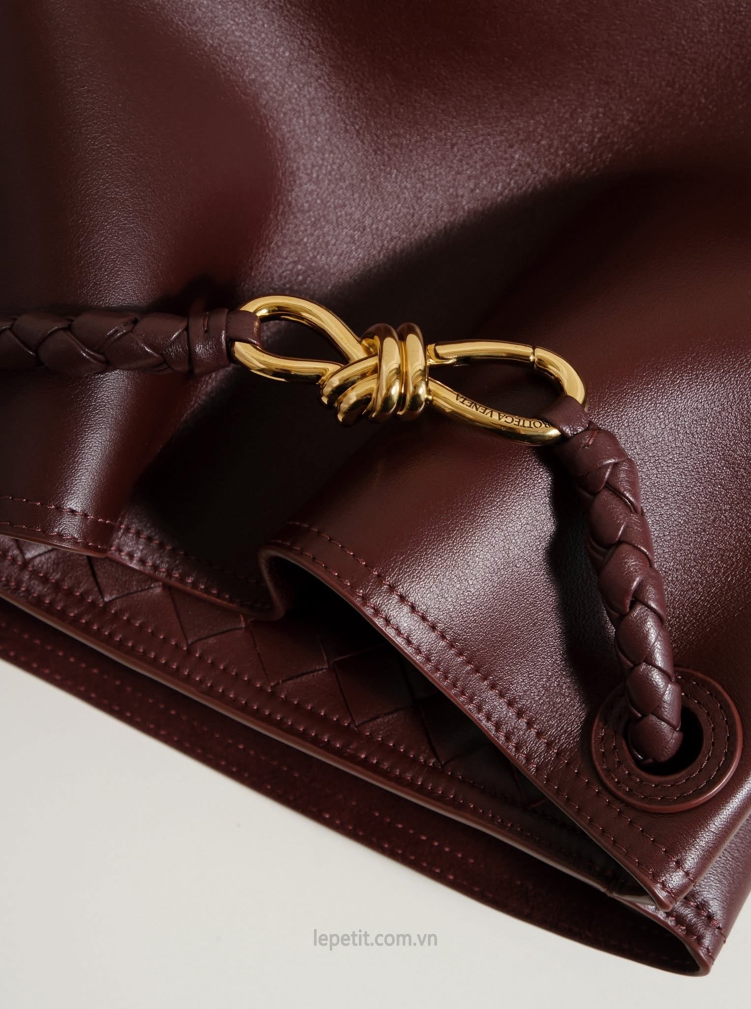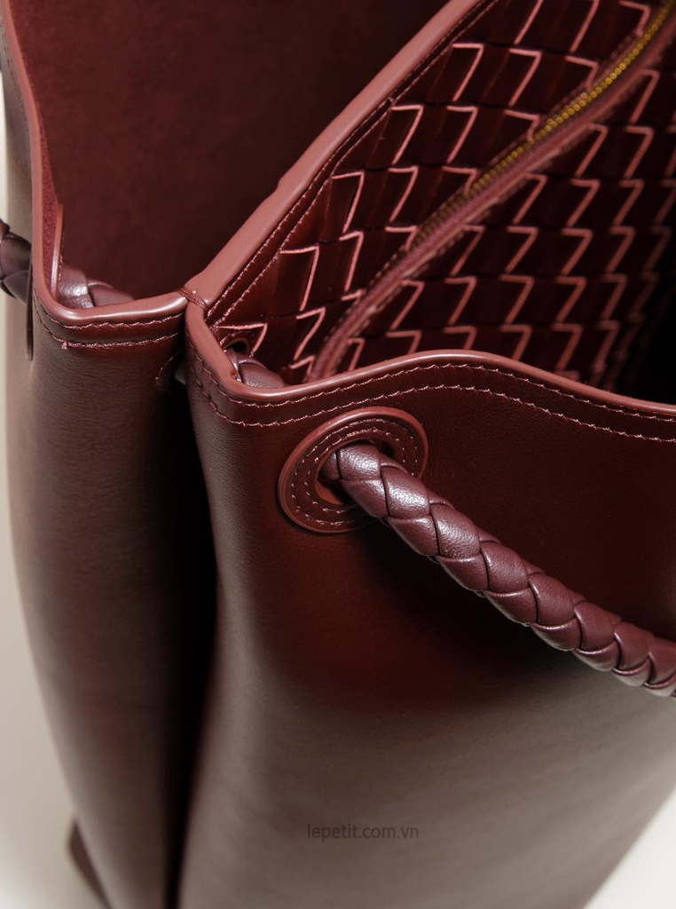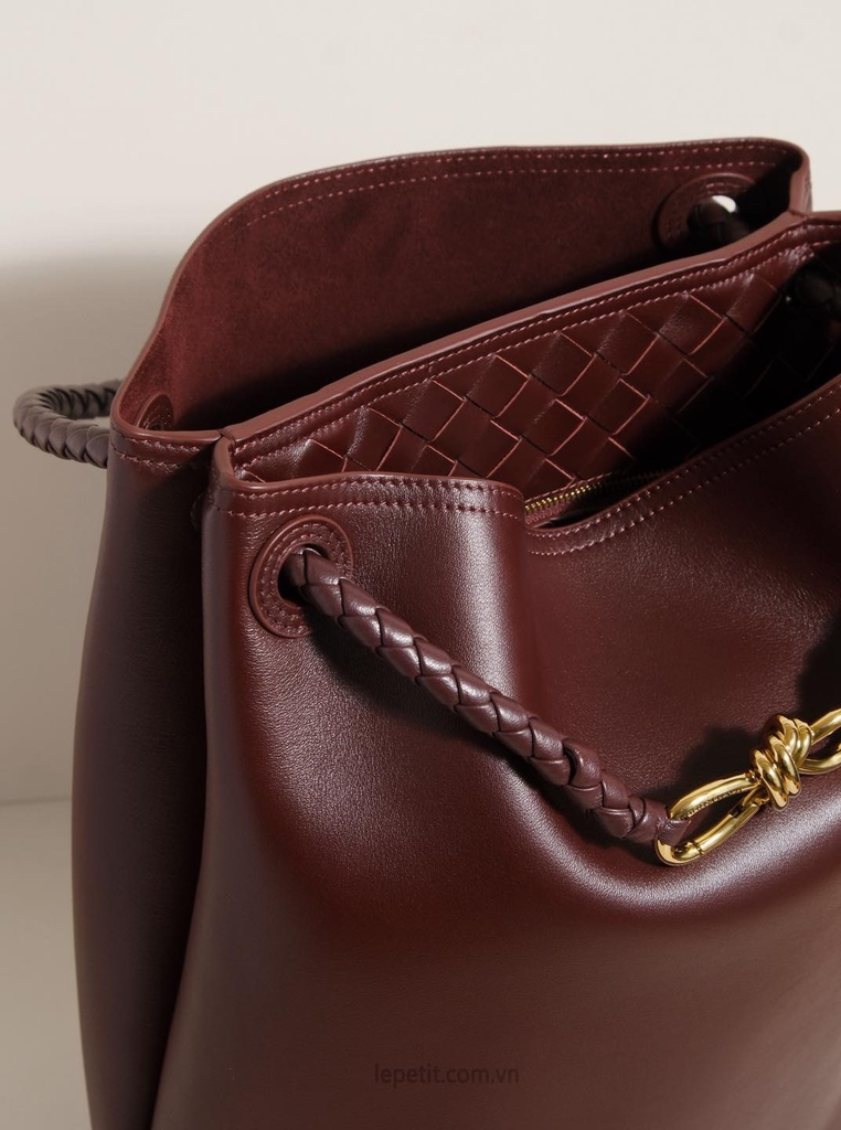 Dáng túi bucket rộng rãi, chất liệu da bê mềm mại & linh hoạt như vải, dấu ấn đặc trưng của dòng Andiamo được thể hiện qua lớp lót đan da Intrecciato ẩn hiện, quai đan và khoá kim loại màu gold, tất cả tạo nên một tổng thể vừa sang trọng vừa phóng khoáng.
