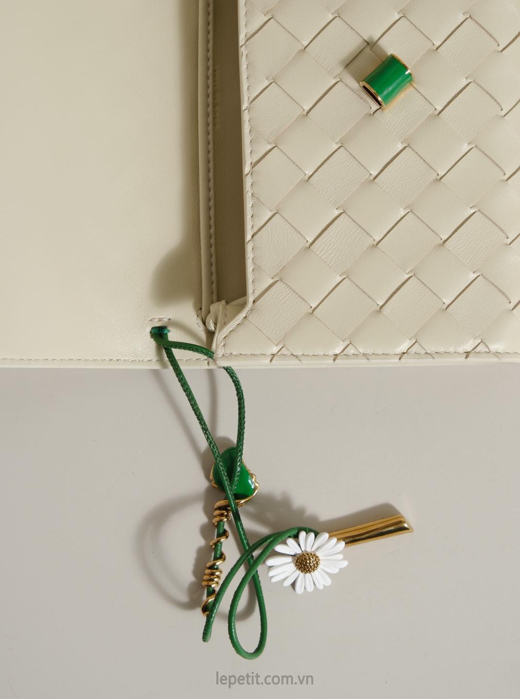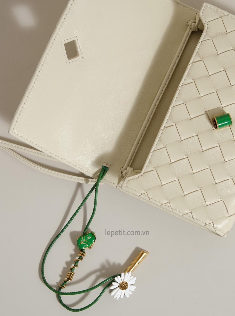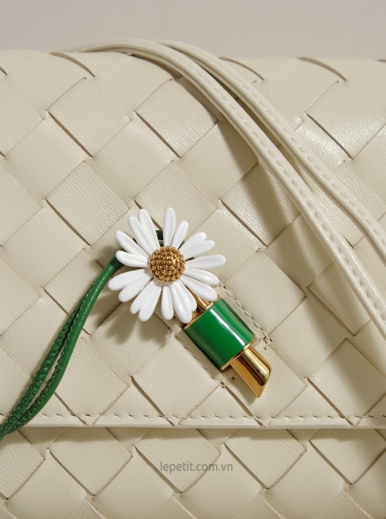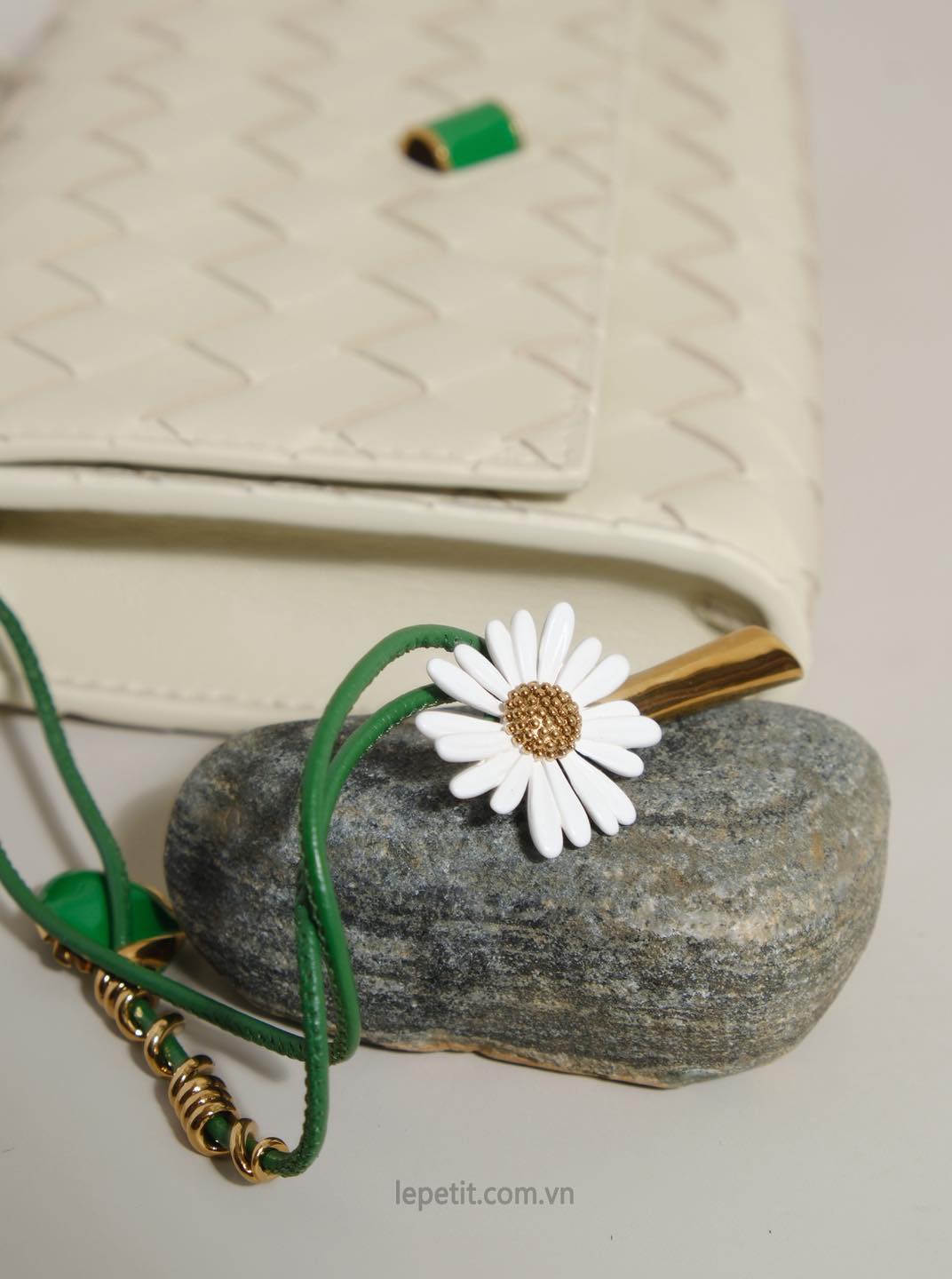 Andiamo Pouch nhỏ xinh để vừa điện thoại pro max, card holder, tai nghe & son, dây đeo điều chỉnh từ đeo vai sang đeo chéo hoặc có thể tháo rời & dùng như clucth. Andiamo gắn liền với phong cách tối giản & thanh lịch, nay thêm chút dịu dàng, ngọt ngào & thanh xuân của hoa cúc bằng kim loại tráng men tạo nên điểm nhấn trẻ trung cho các outfit dạo phố, hẹn hò.