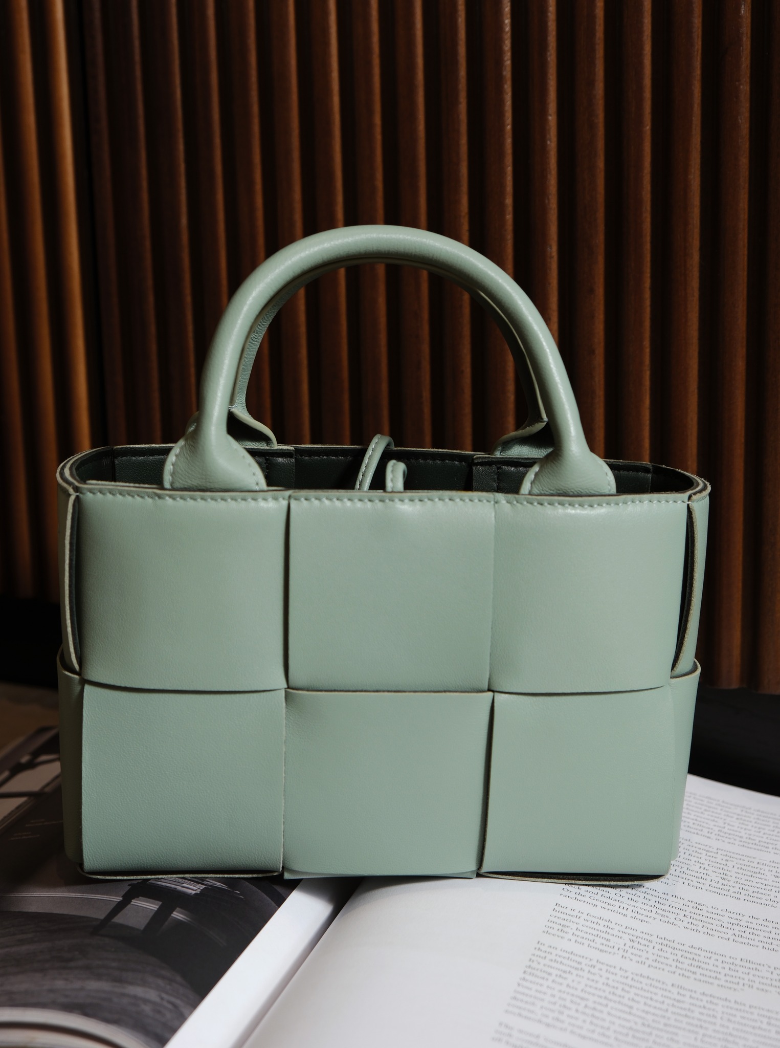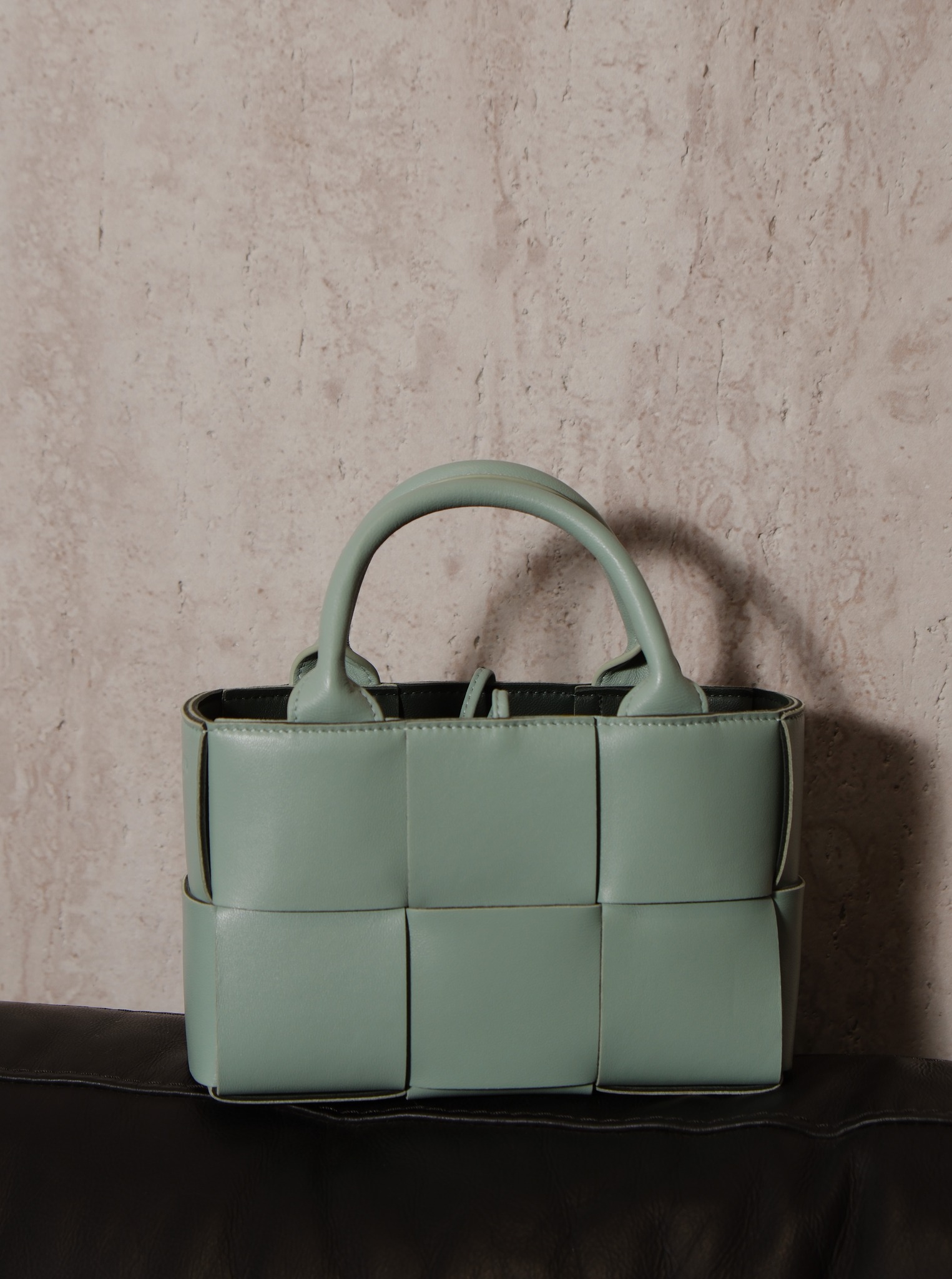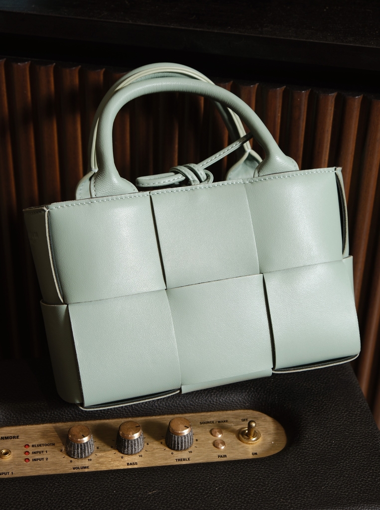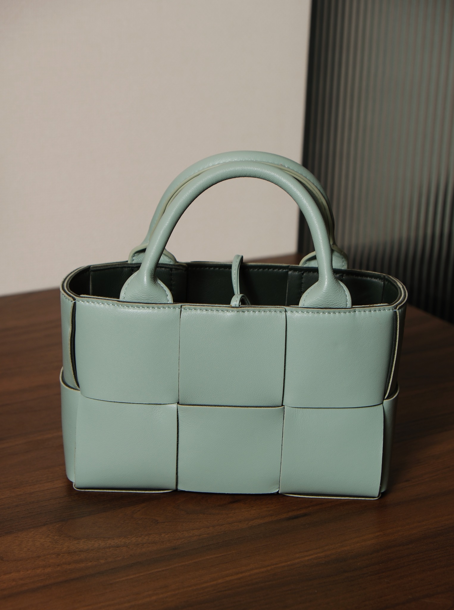 Arco - dòng túi thể hiện kiểu đan da bản lớn Intreccio đặc trưng của BV. Tối giản, hiện đại, kinh điển cùng lớp da dày tăng thêm sự bền bỉ khi sử dụng hằng ngày. Túi có thiết kế mở, form chữ nhật vuông vức thuận tiện cho việc để vào - lấy ra đồ đạc.