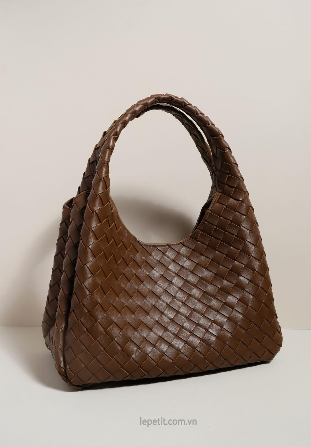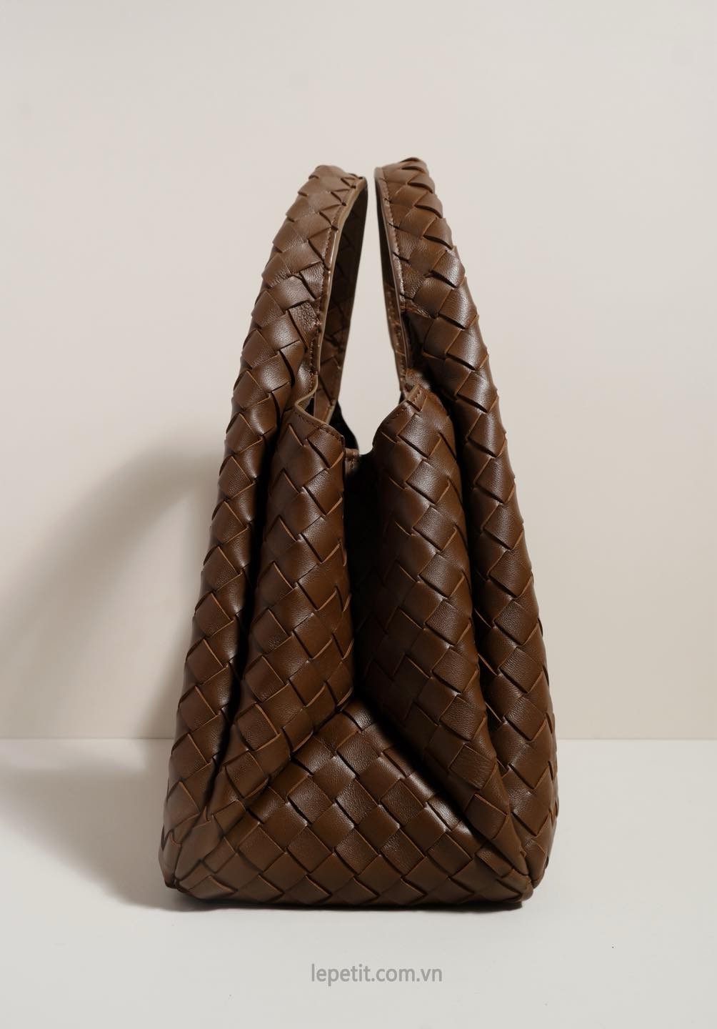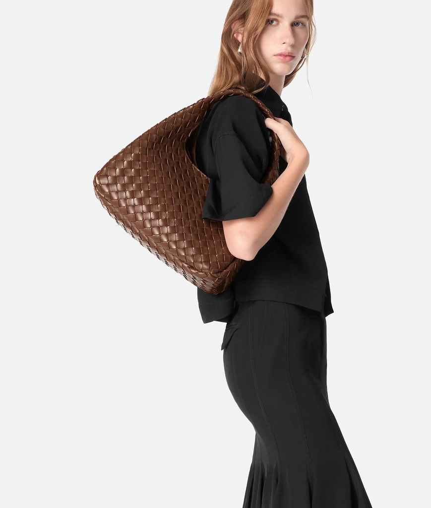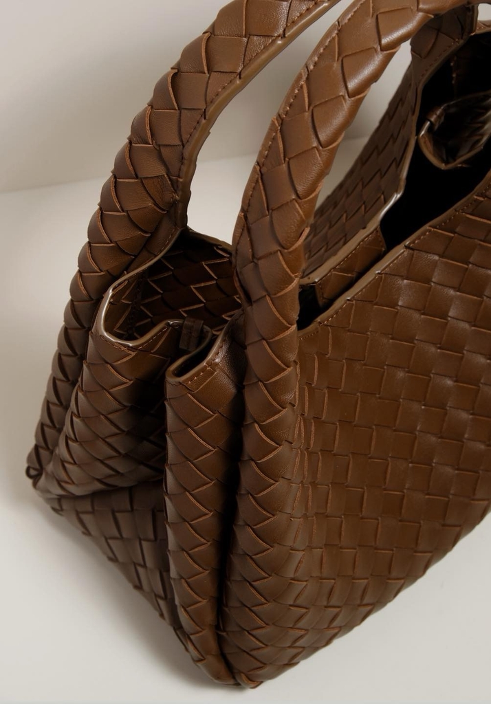 Toàn bộ túi được đan da Intrecciato, phom dáng uyển chuyển mở ra không gian bên trong rộng rãi, không lót nhằm phô diễn trọn vẹn tay nghề thủ công tinh xảo. Mang tính ứng dụng cao cùng sự kế thừa di sản, Campana là một thiết kế thanh lịch, tinh tế và bền vững theo thời gian.