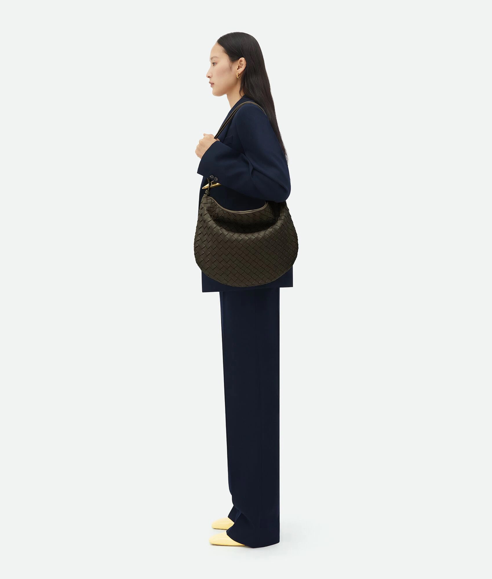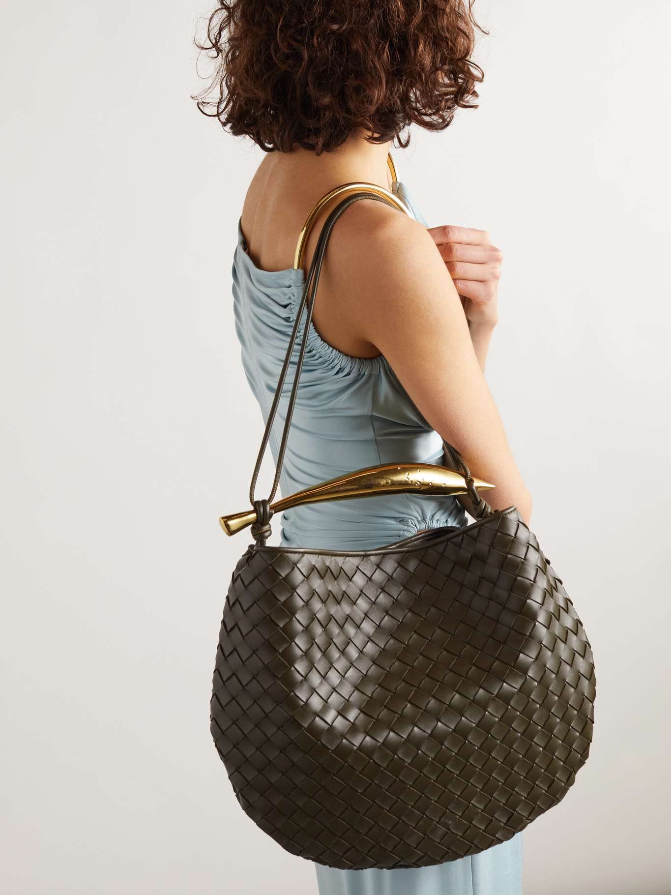 Sardine sở hữu dáng bán nguyệt, toàn bộ thân túi thể hiện kiểu đan da Intrecciato đặc trưng của BV. Quai cầm hình cá bằng kim loại được điêu khắc hoạ tiết thủ công, mỗi chiếc đều hoàn toàn khác biệt.