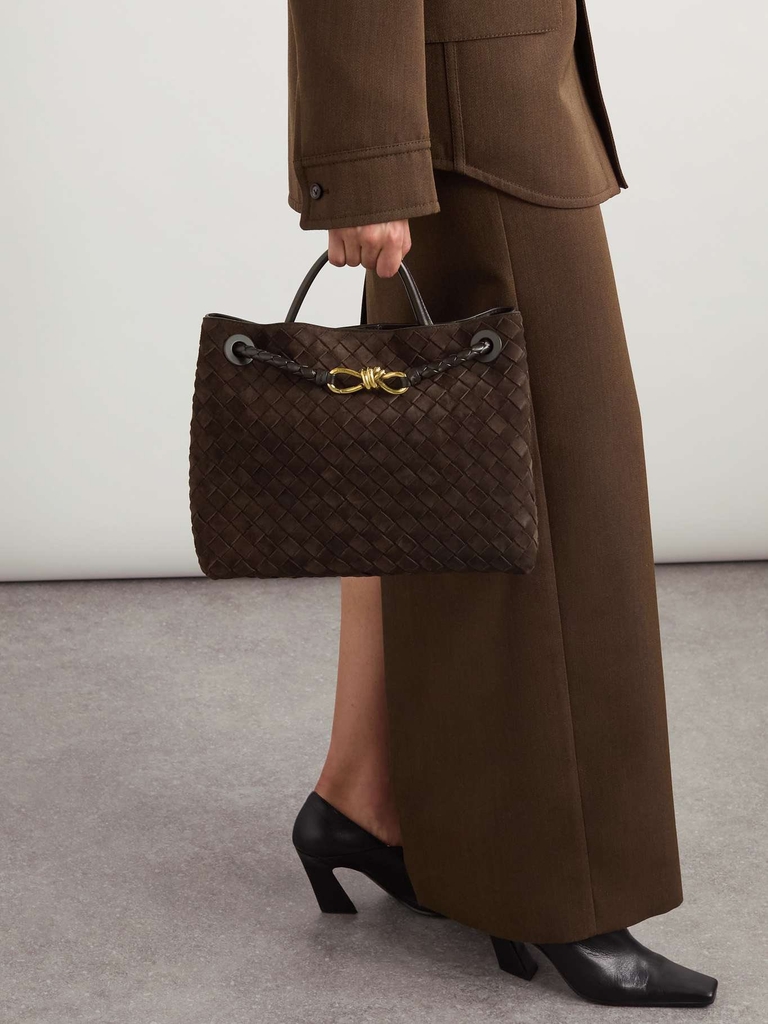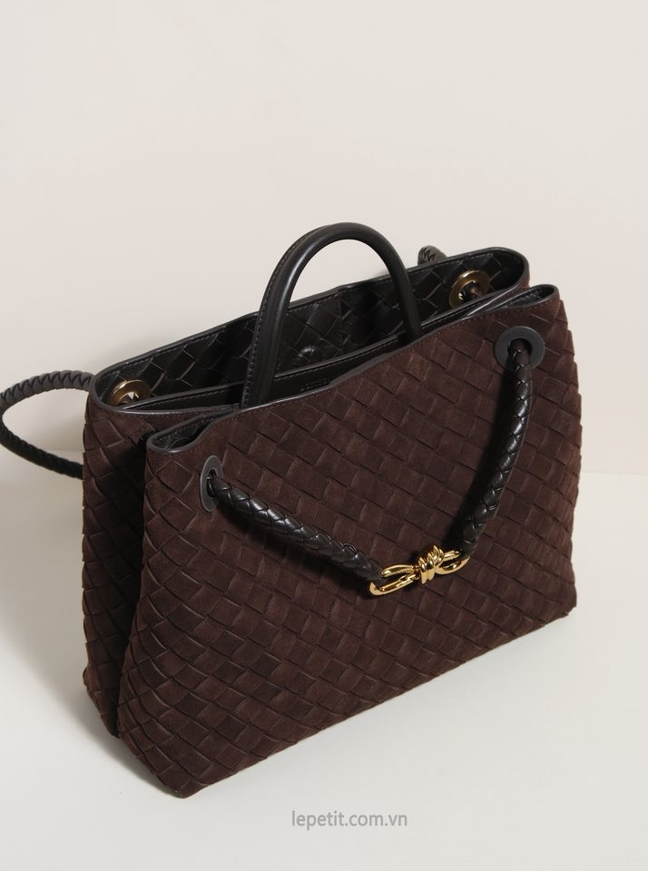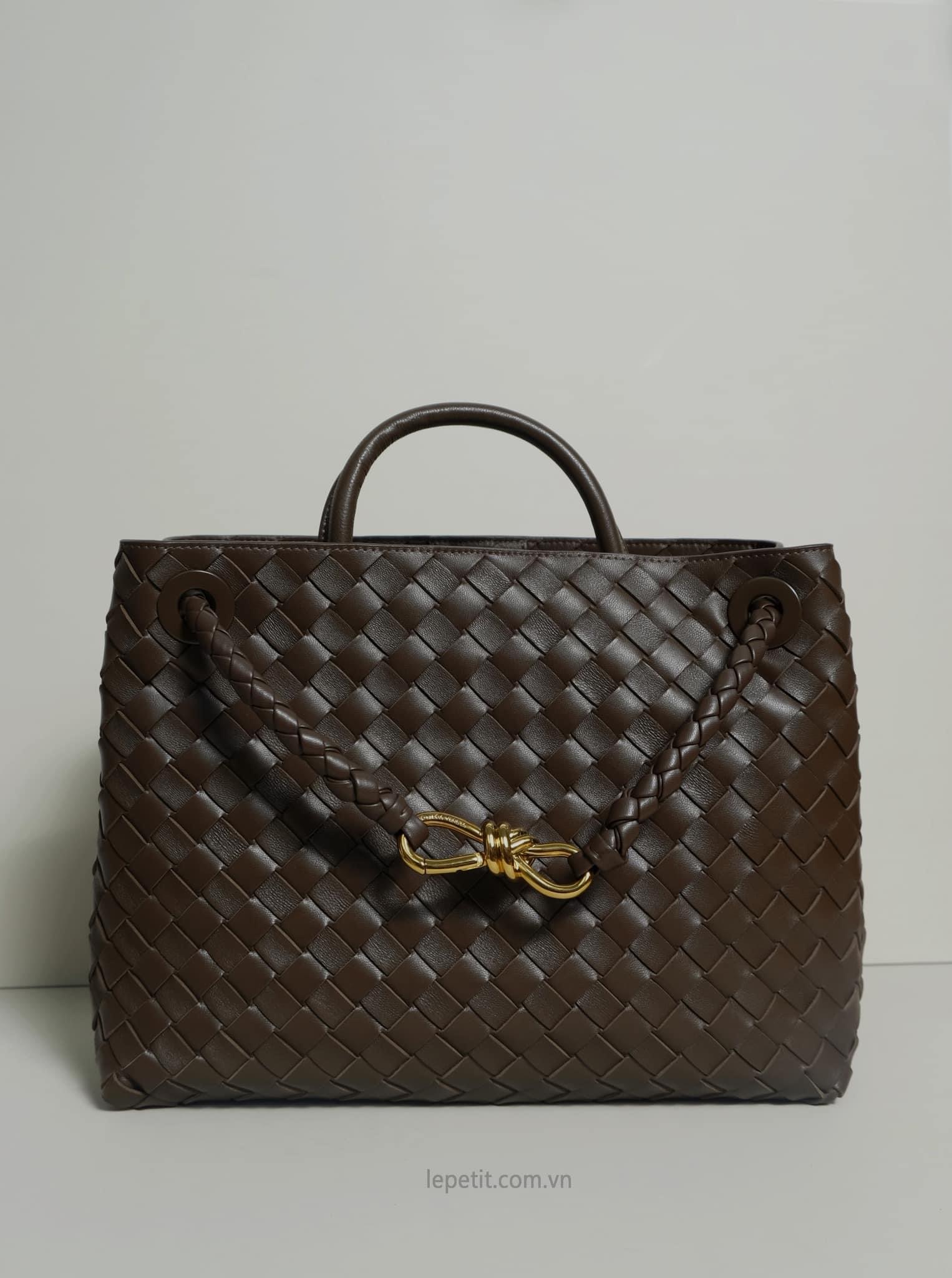 Cái tên Andiamo có nghĩa là "Đi thôi" trong tiếng Ý, thể hiện tinh thần tôn vinh những chuyến đi. Với hình dáng vượt thời gian cùng kỹ thuật đan da thủ công Intrecciato, BV đã tạo nên chiếc túi Andiamo thanh lịch và đẳng cấp, có thể mang đi làm, dạo phố hay đi chơi.