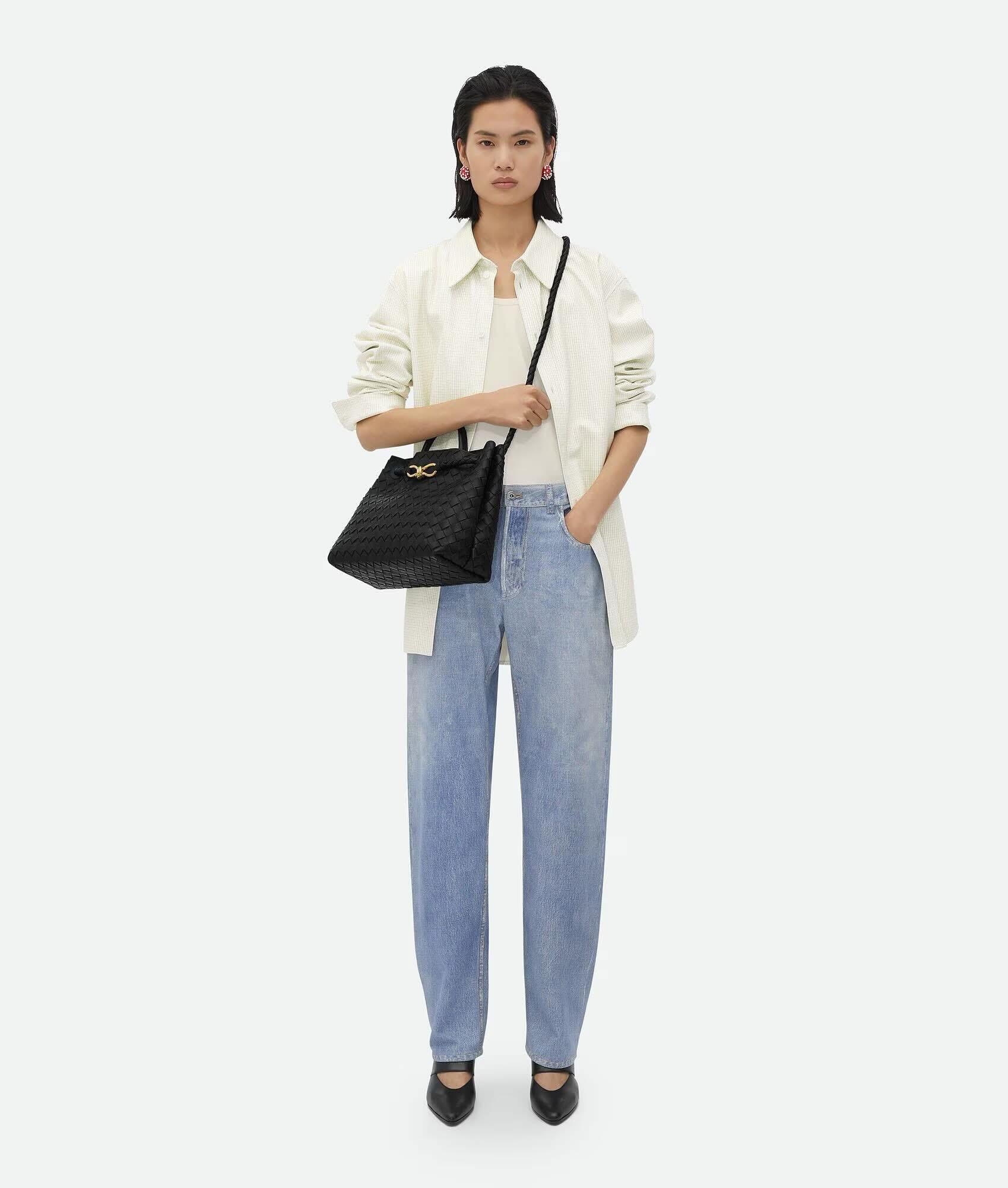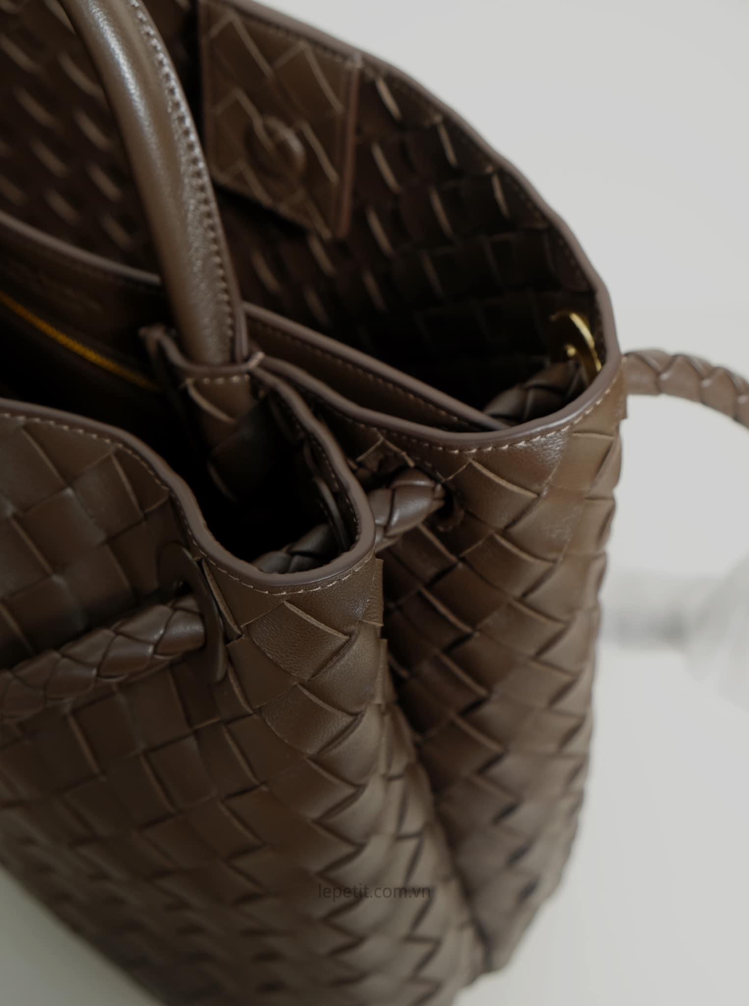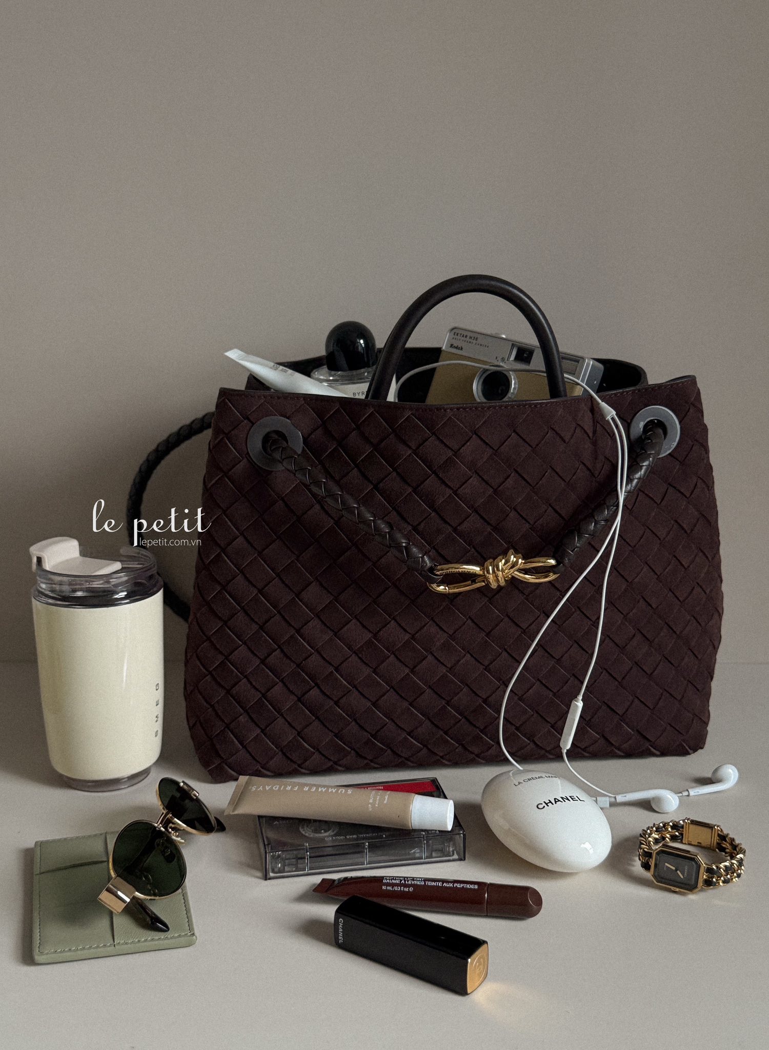 Cái tên Andiamo có nghĩa là "Đi thôi" trong tiếng Ý, thể hiện tinh thần tôn vinh những chuyến đi. Với hình dáng vượt thời gian cùng kỹ thuật đan da thủ công Intrecciato, BV đã tạo nên chiếc túi Andiamo thanh lịch và đẳng cấp, có thể mang đi làm, dạo phố hay đi chơi.