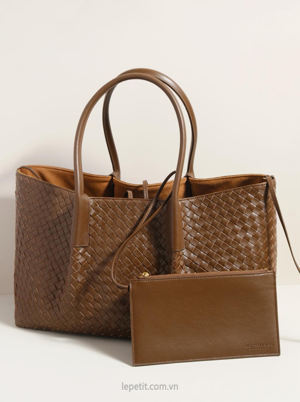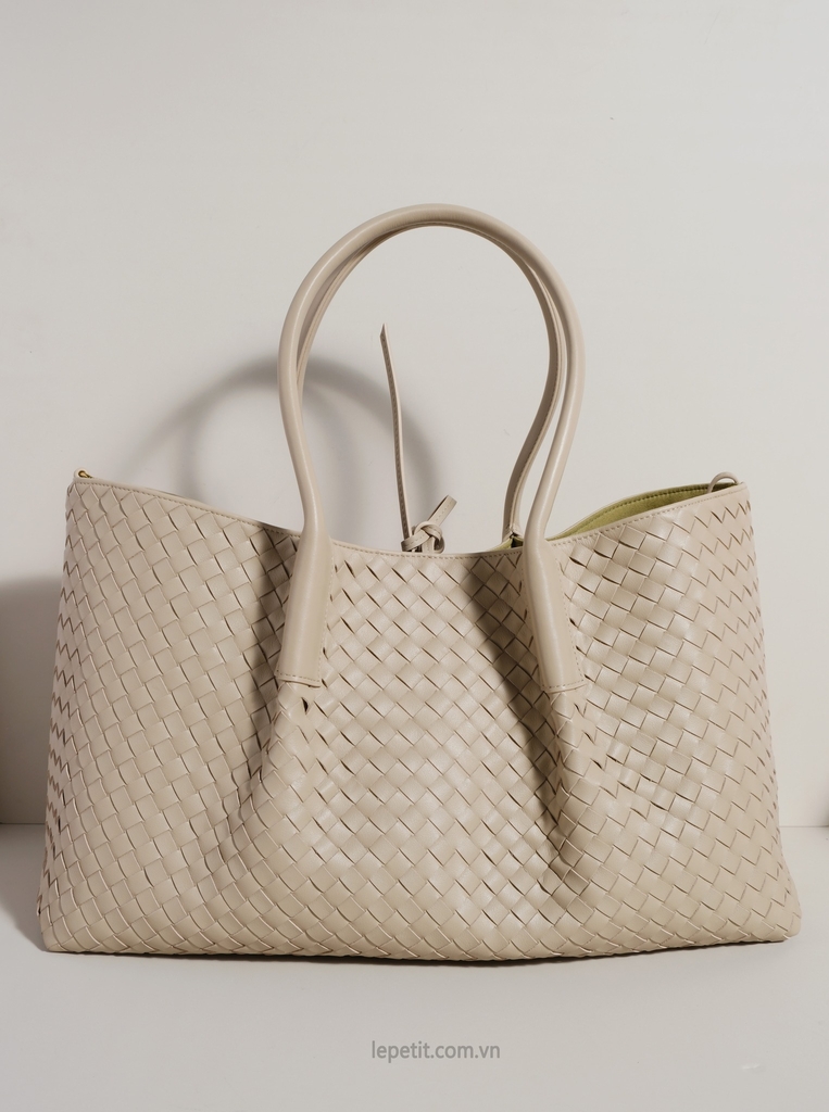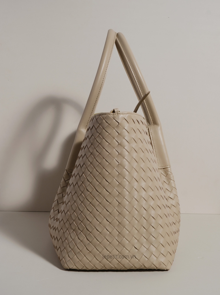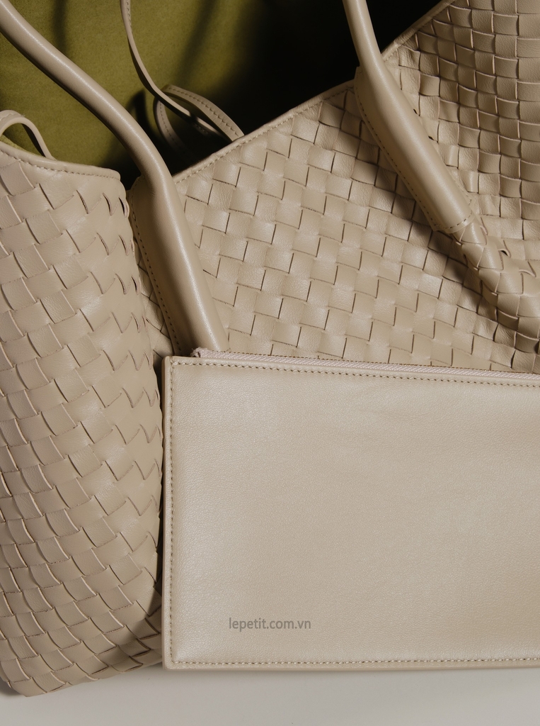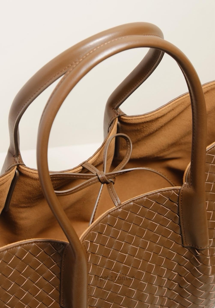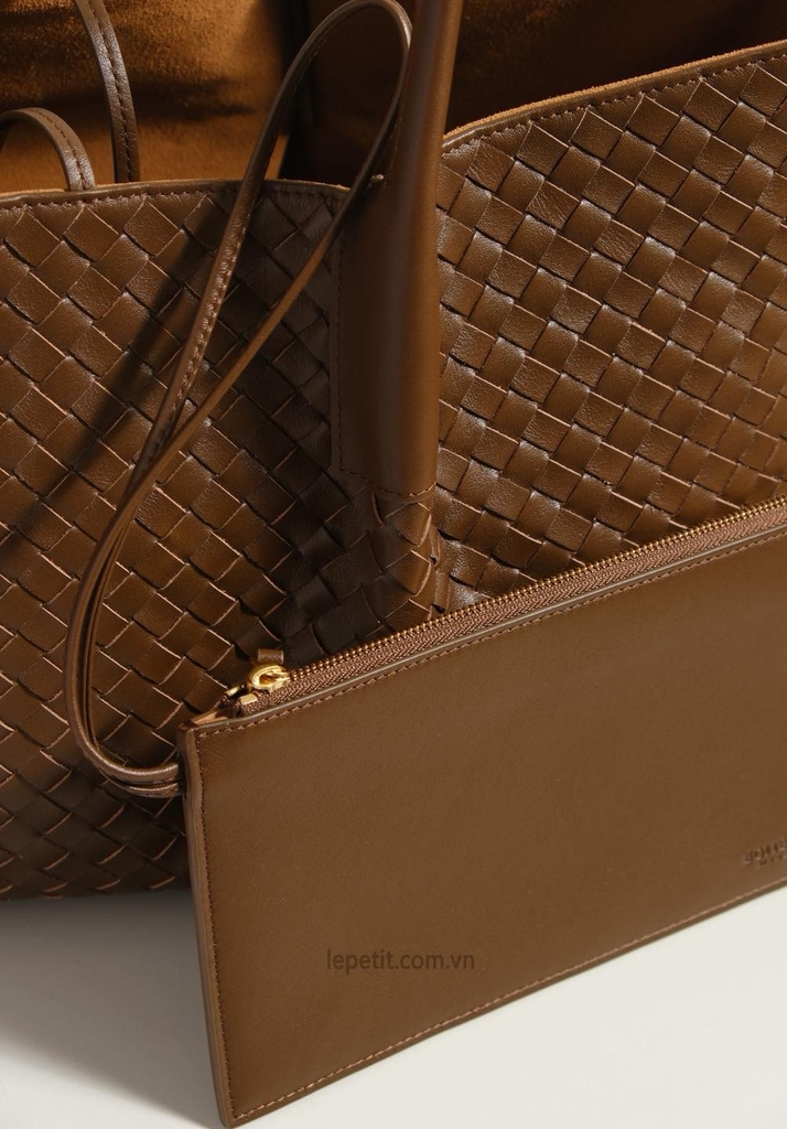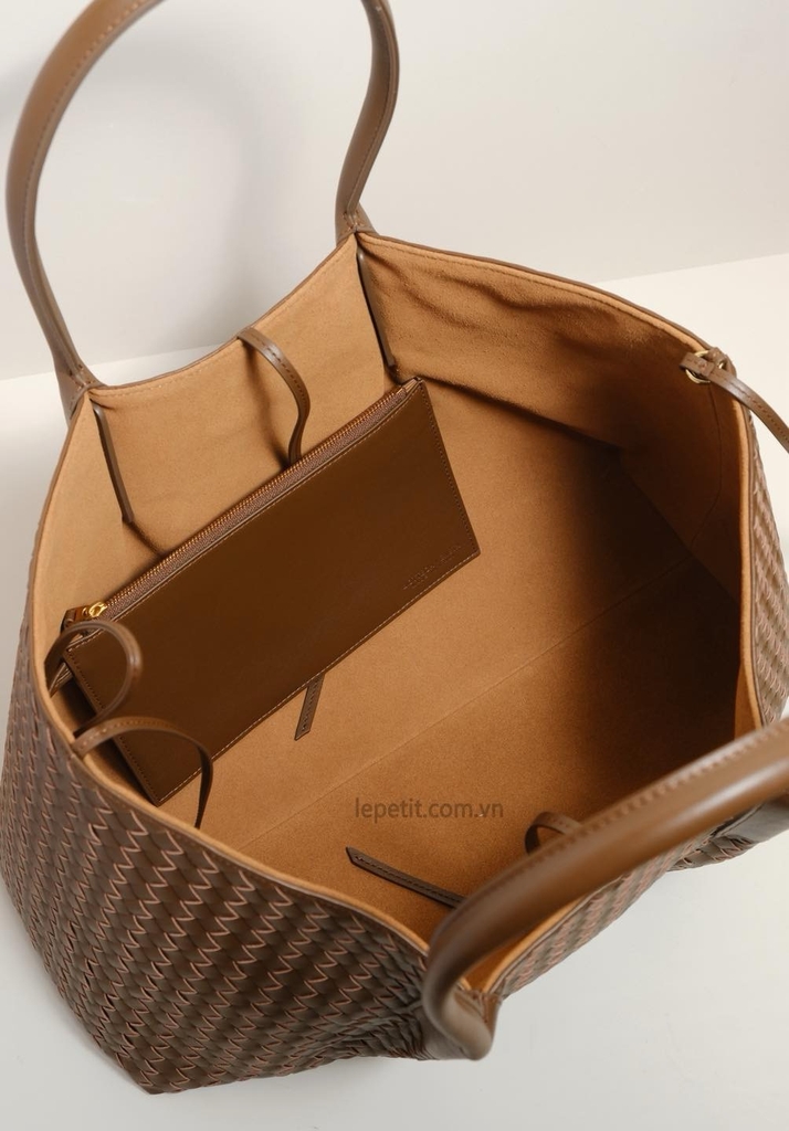 Chiếc túi tote Pinacoteca là một ví dụ nổi bật về kiểu đan da intrecciato - biểu tượng của tay nghề thủ công tinh xảo và vẻ đẹp vượt thời gian. Phom dáng túi mềm mại & linh hoạt, có thể thay đổi từ dáng chữ nhật sang dáng bucket nhờ dây buộc. Đặc biệt, túi có thể lộn ngược để sử dụng cả 2 mặt - mặt da đan hoặc mặt da lộn trơn. Kích thước lớn để được laptop 16”, đủ sức mang theo mọi vật dụng cần thiết mà không làm mất đi sự thanh lịch.