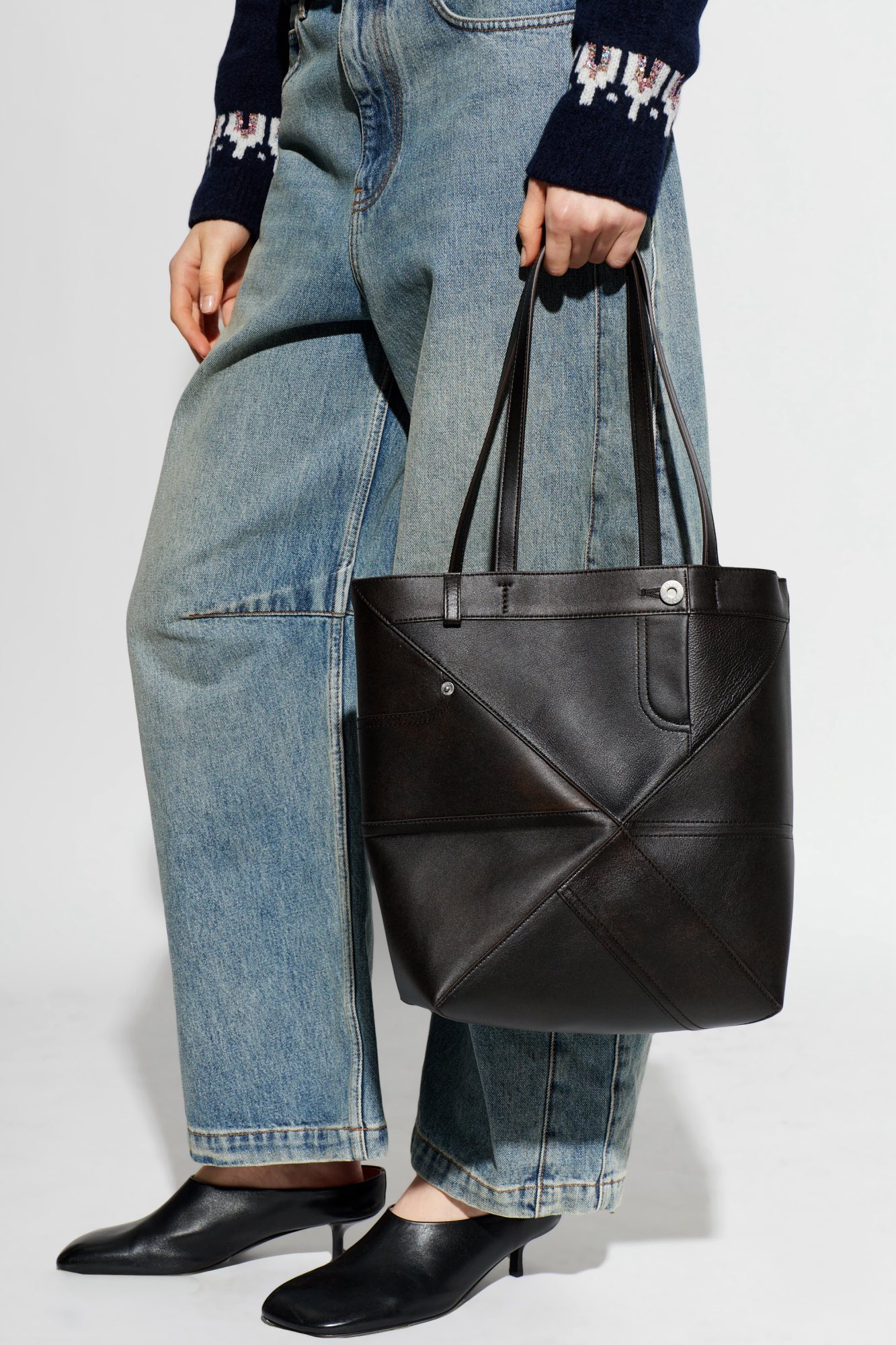 Panta là phiên bản mới được trình làng trong bộ sưu tập mùa xuân hè 2026. Vẫn dựa trên phom dáng quen thuộc của Puzzle Fold Tote, Panta có thêm 2 ngăn pocket ở mặt trước và mặt sau, các nút kim loại màu bạc và đai lưng ở miệng túi được lấy cảm hứng từ thiết kế quần jeans.